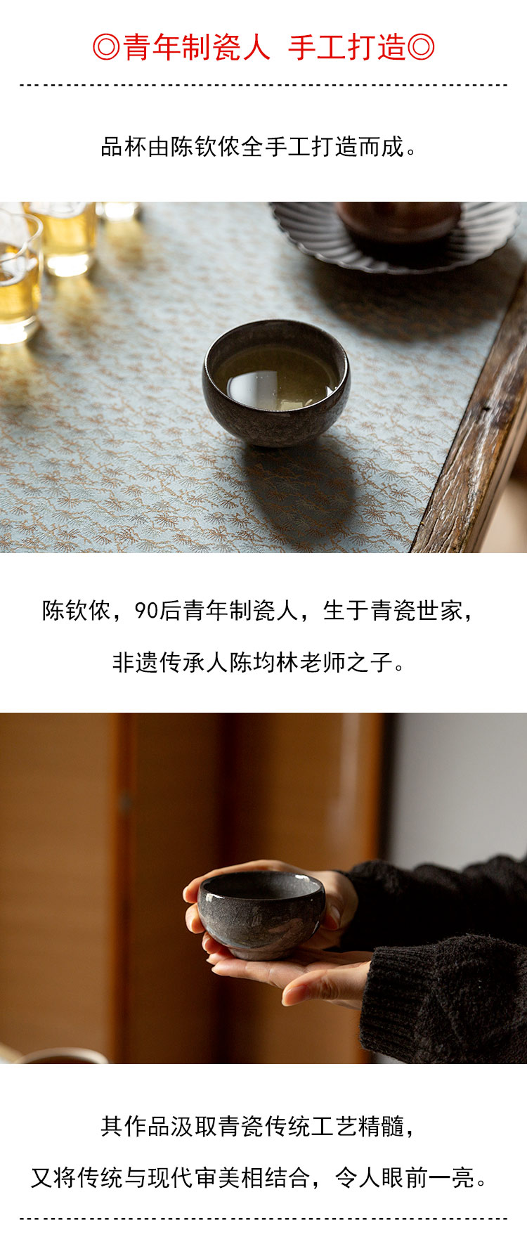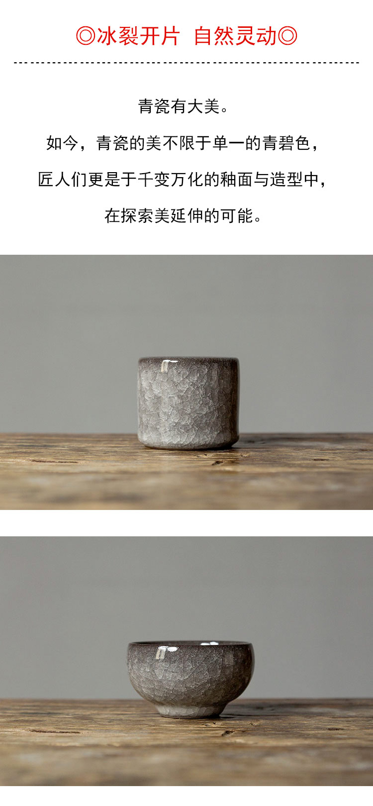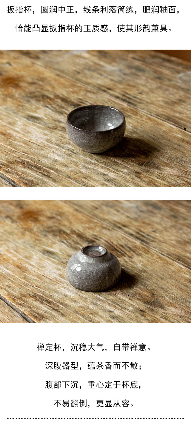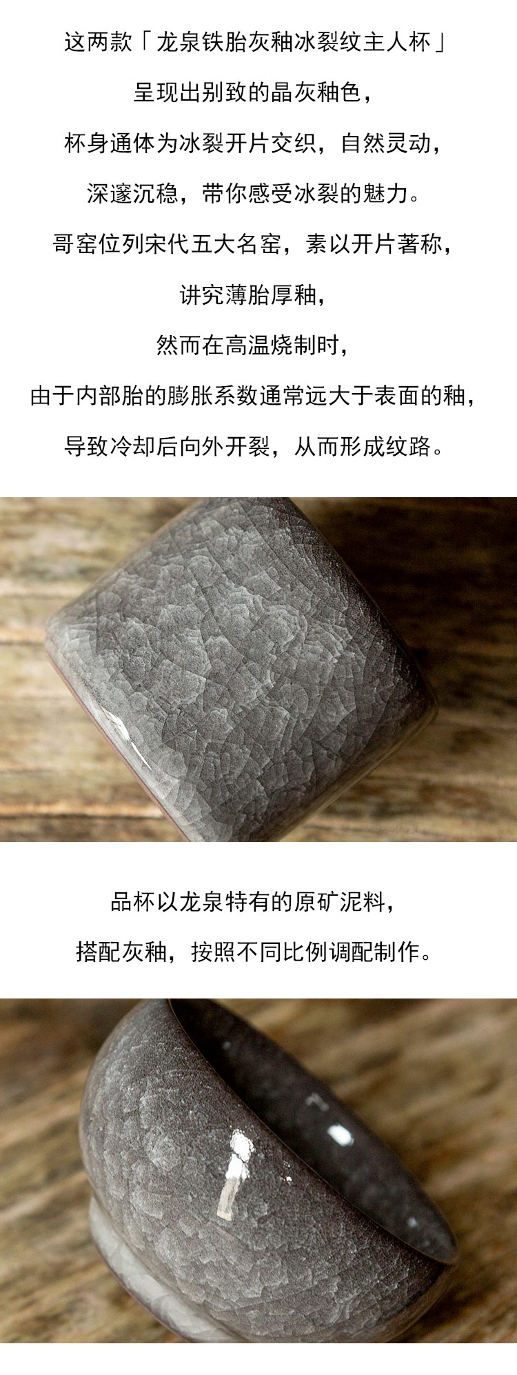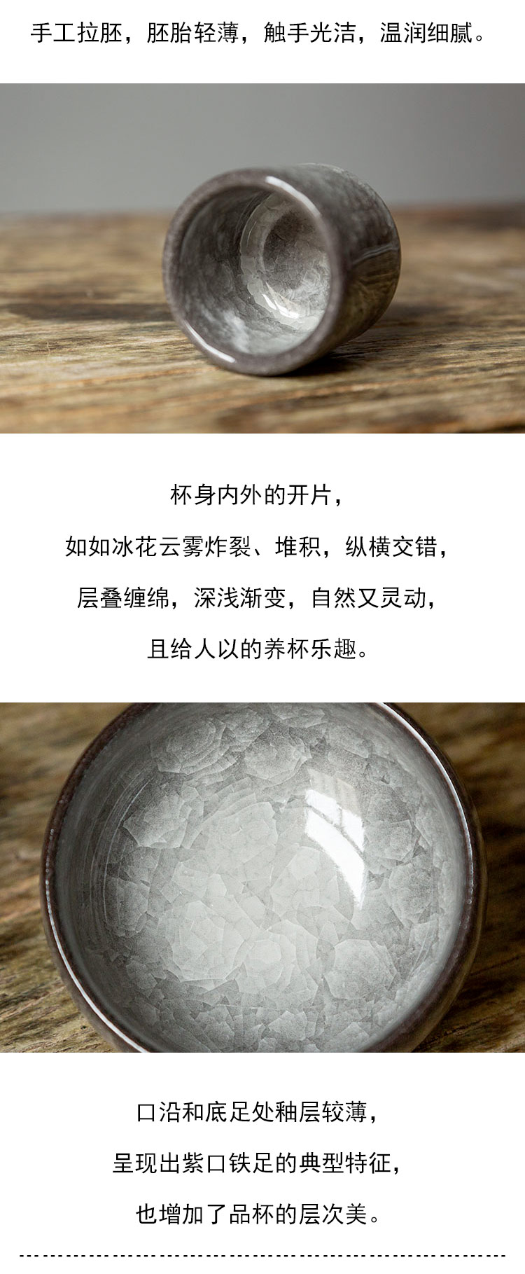 茶香记 龙泉铁胎灰釉冰裂纹主人杯100ml大气沉稳开片灵动茶杯品杯