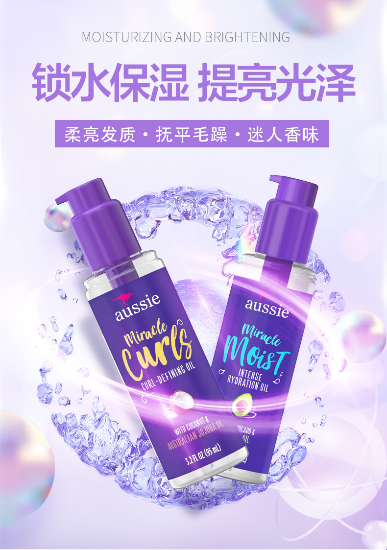 【保税直邮 义乌海关】澳丝AUSSIE袋鼠奇迹椰子油卷发超强保湿抚平毛躁提亮光泽精华油修护护发精油