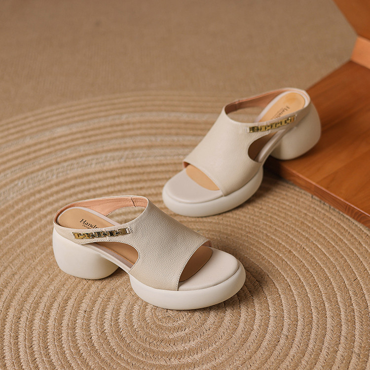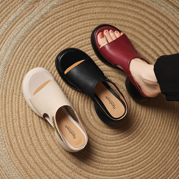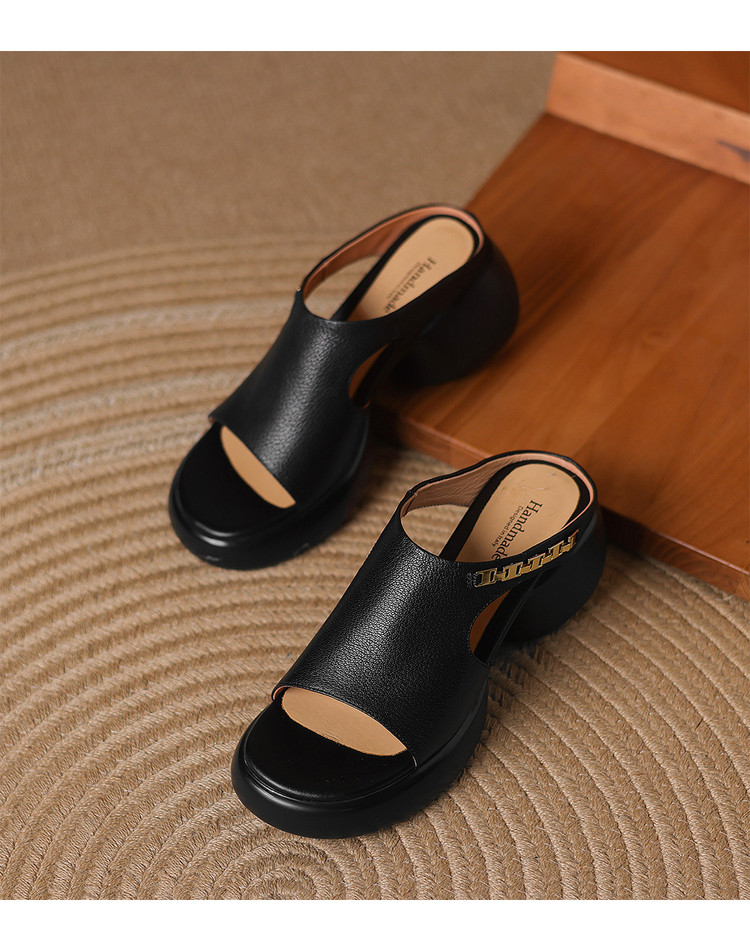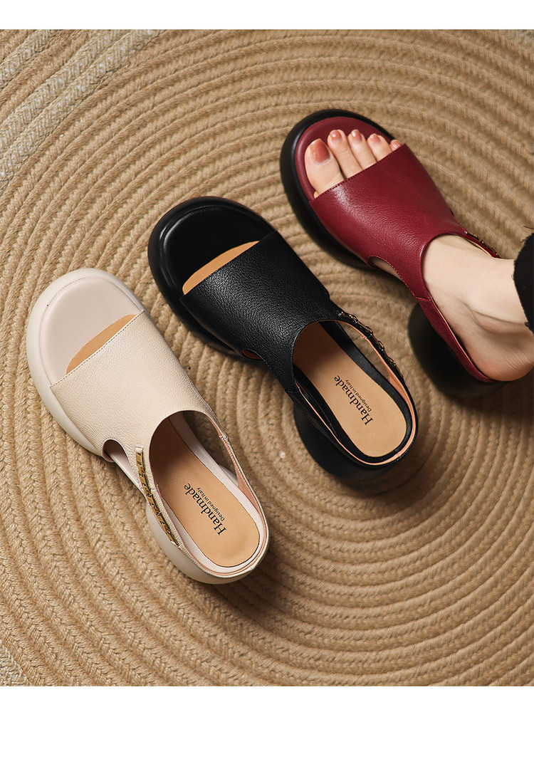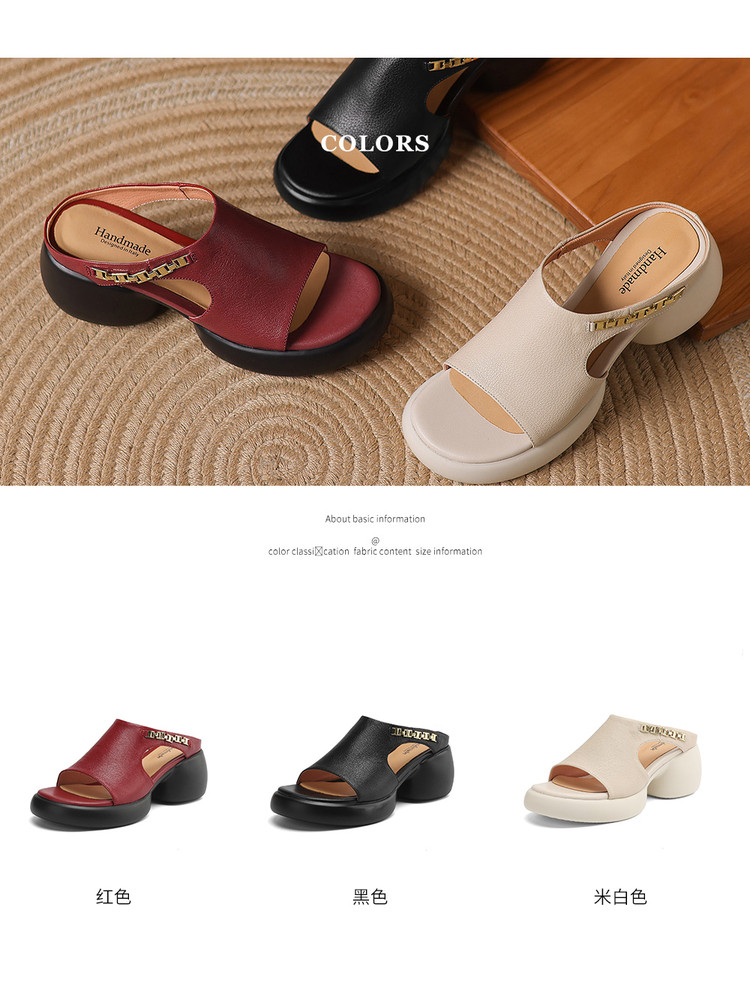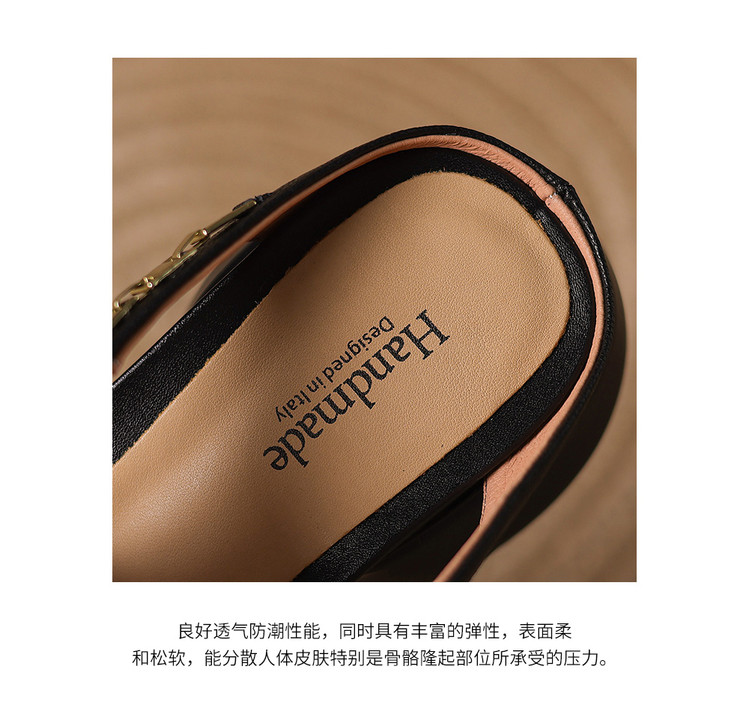 【预售5天】超美自留!超软舒适真皮厚底包头半拖鞋女新款夏镂空凉鞋粗跟高跟凉拖LD&7379