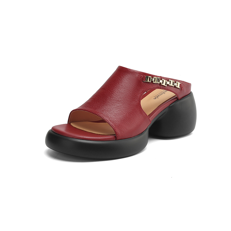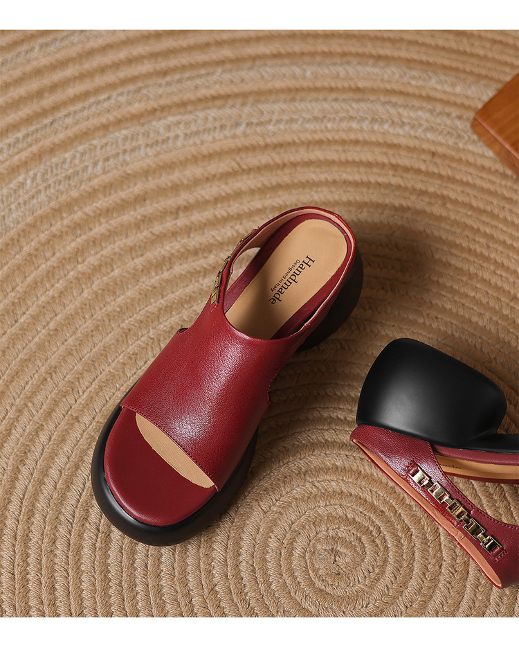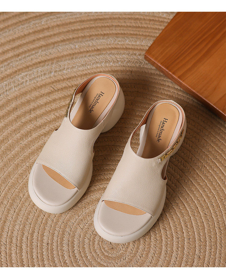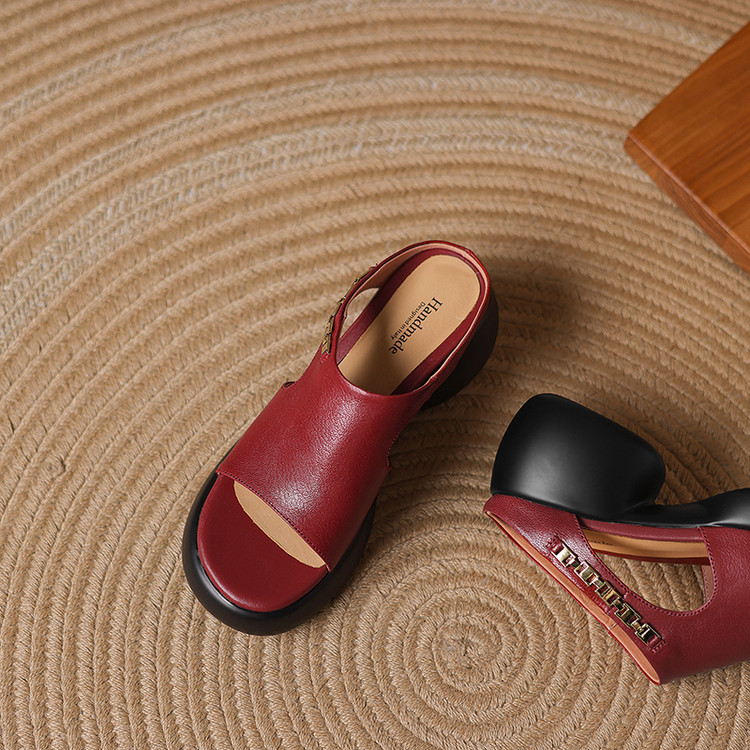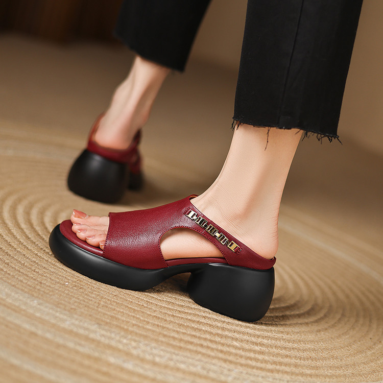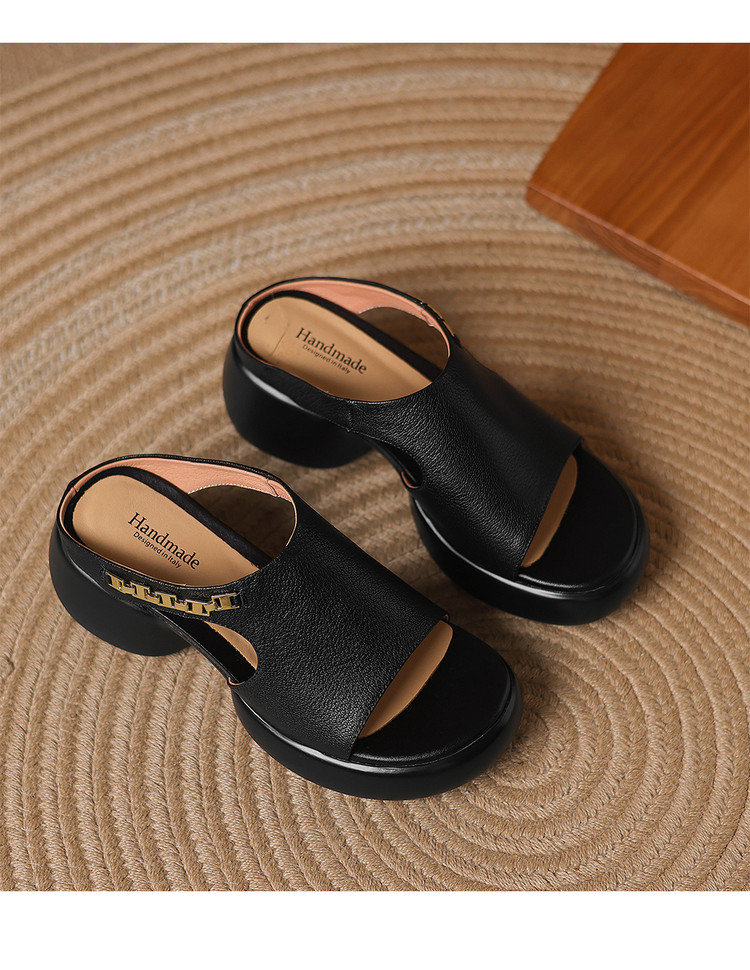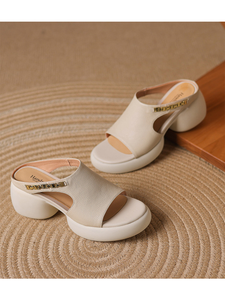 【预售5天】超美自留!超软舒适真皮厚底包头半拖鞋女新款夏镂空凉鞋粗跟高跟凉拖LD&7379