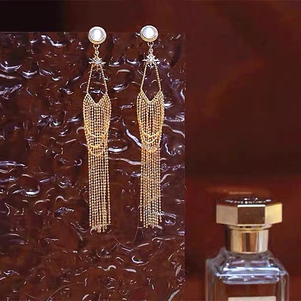 星光碎落 不规则高级感瀑布灵动流苏耳环设计感小众长款耳钉耳环