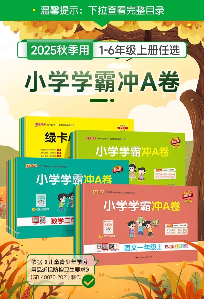 2025秋季pass绿卡图书小学学霸冲a卷上册测试卷全套人教版单元卷