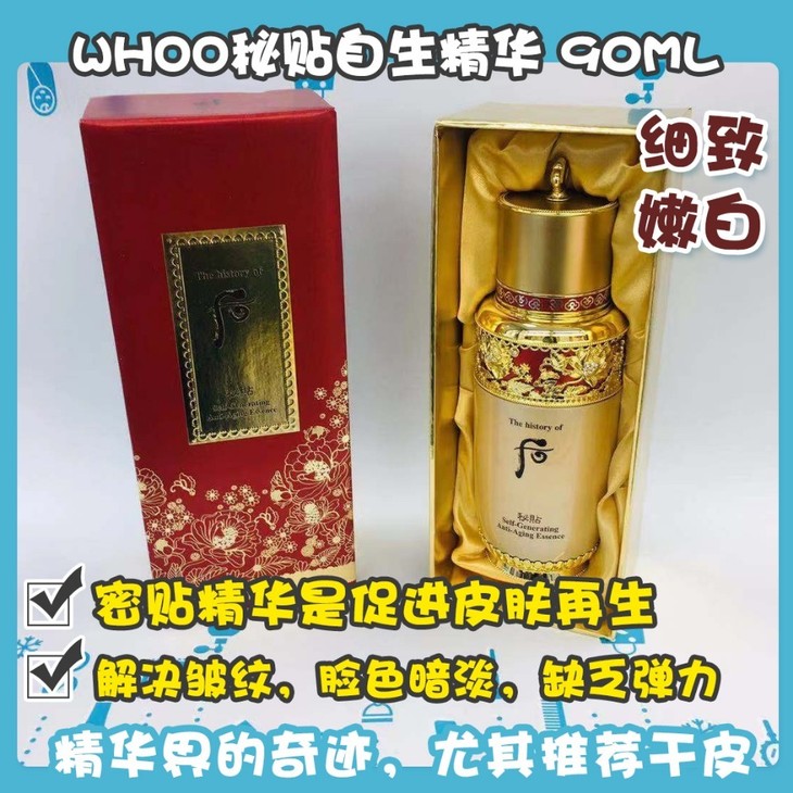 WHOO秘贴自生精华 90ML#限量版👍限量版啊啊👻,容量增加了1️⃣倍,买到赚到‼️‼️密贴精华是促进皮肤再生解决皮肤各种问题的代表精华哦💆,可以一次解决皱纹,脸色暗淡,缺乏弹力〽,保湿💦等问题。达到皮肤细致嫩白✨,祛痘消炎的效果✅。真的很牛逼😱,精华界的奇迹,尤其推荐干皮,无限回购款🉐。