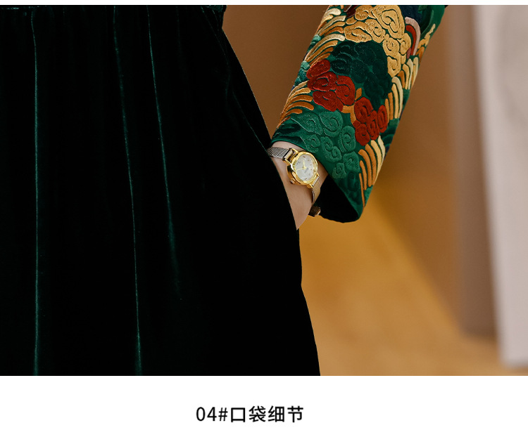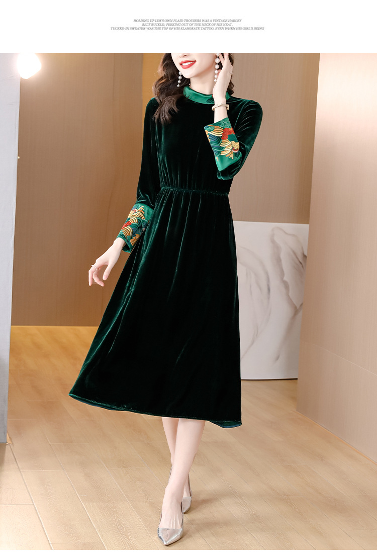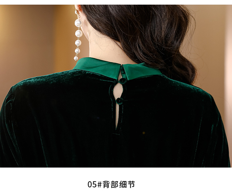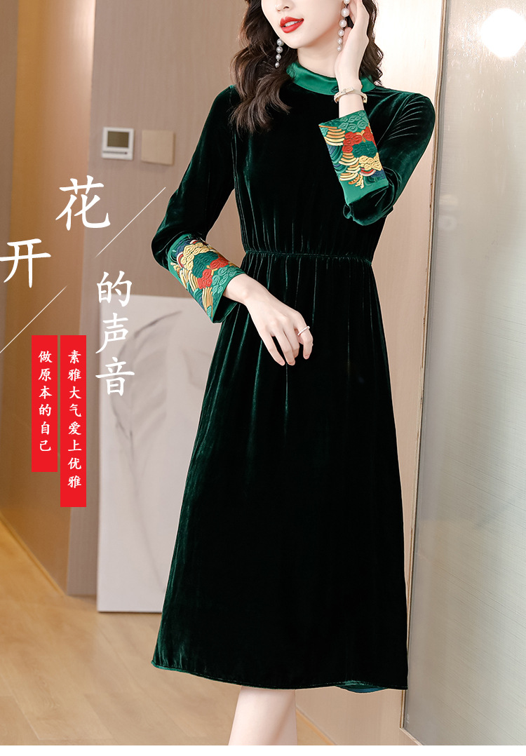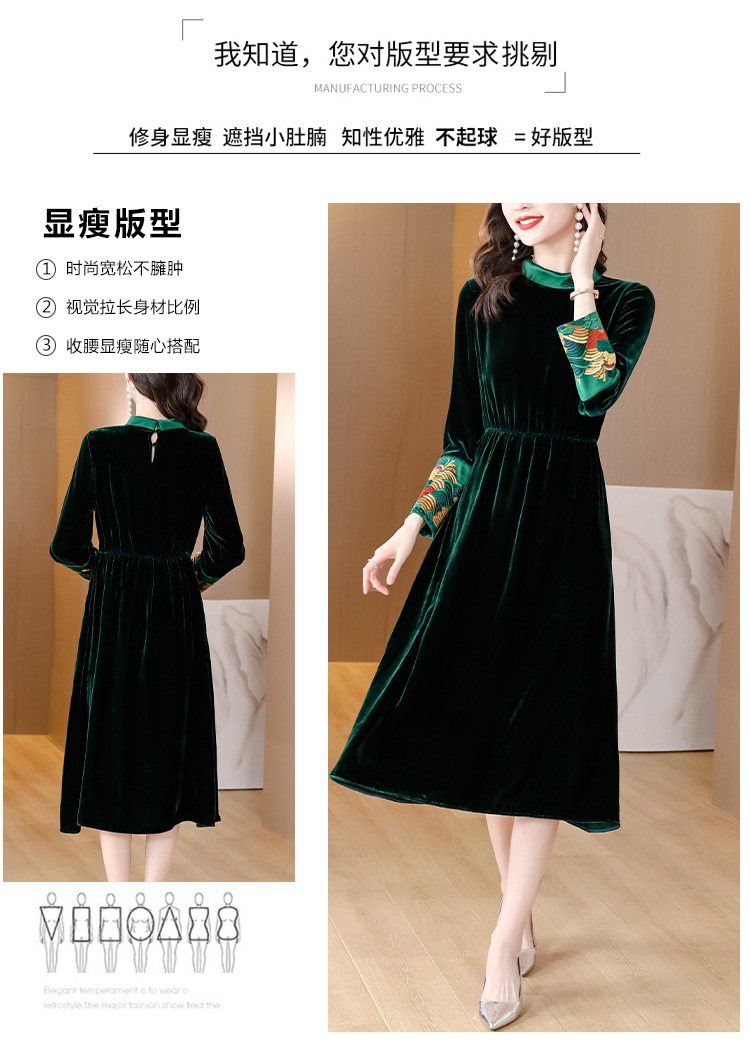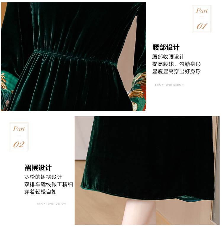 【AHM】2022秋季新款设计师真丝丝绒连衣裙时尚气质优雅阔太太中长A字裙