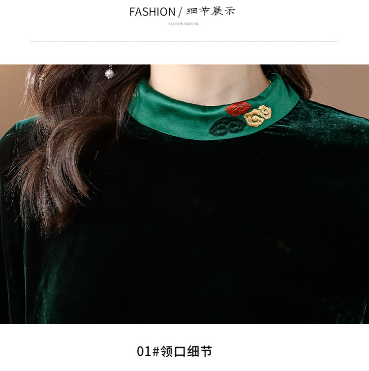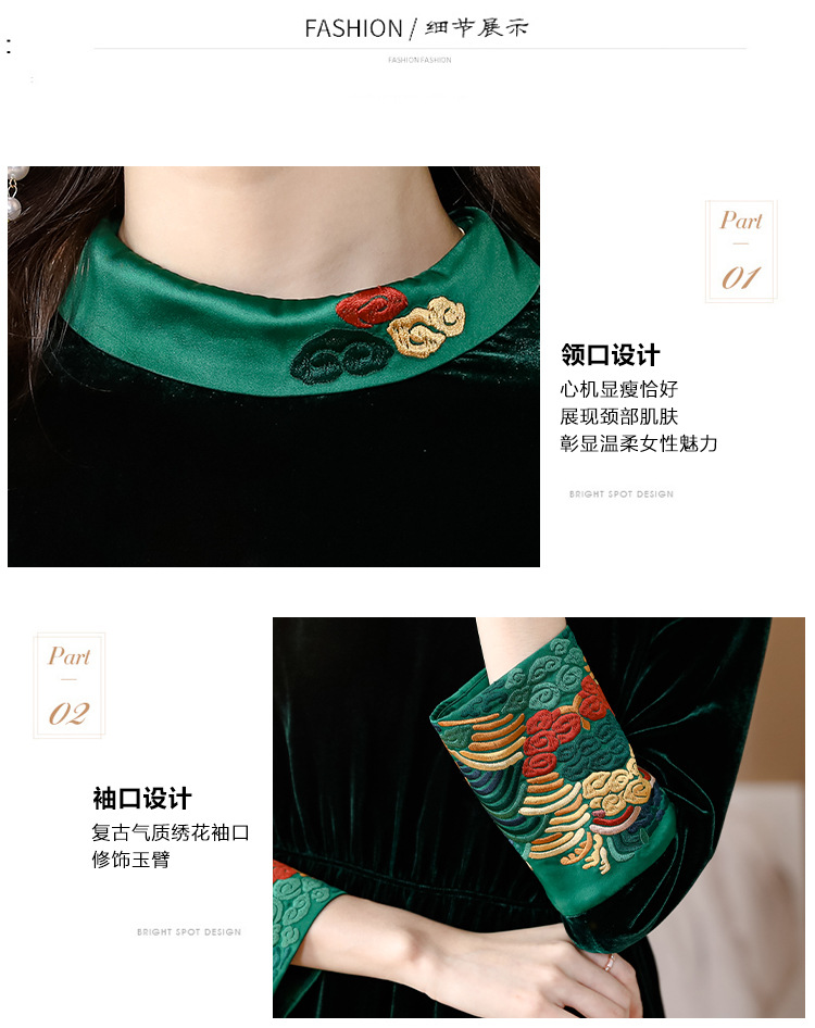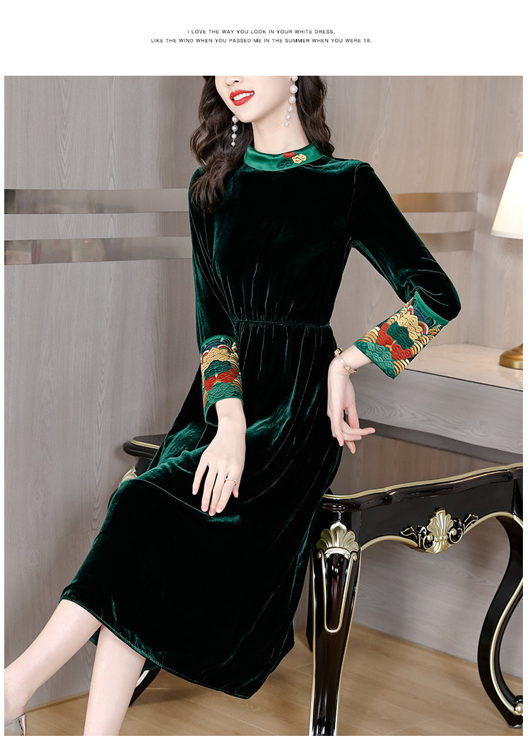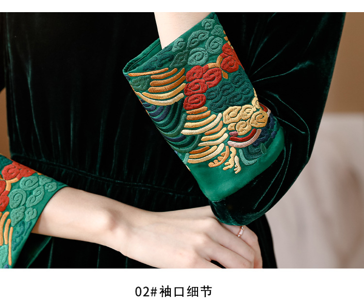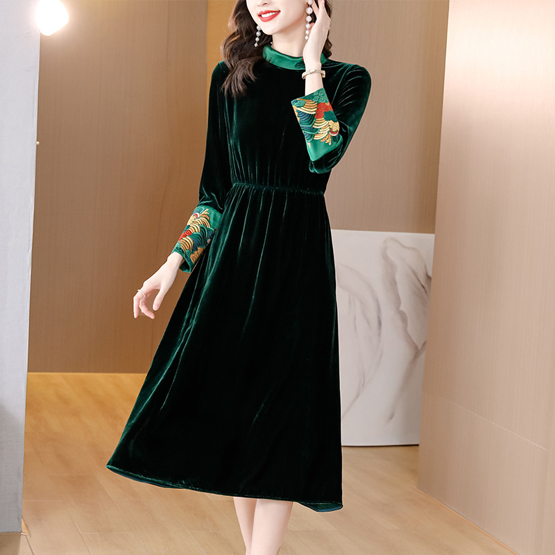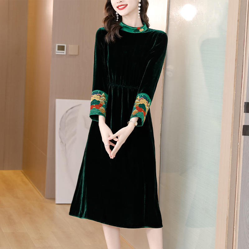 【AHM】2022秋季新款设计师真丝丝绒连衣裙时尚气质优雅阔太太中长A字裙