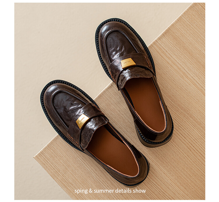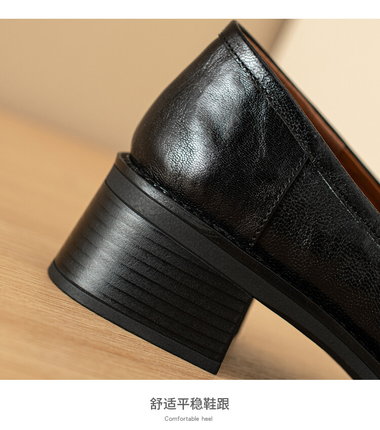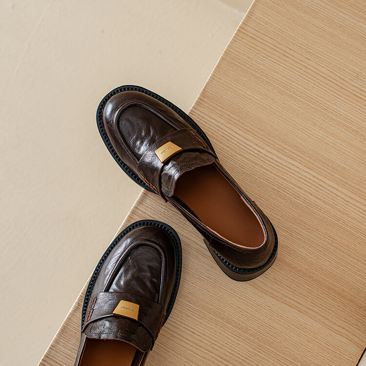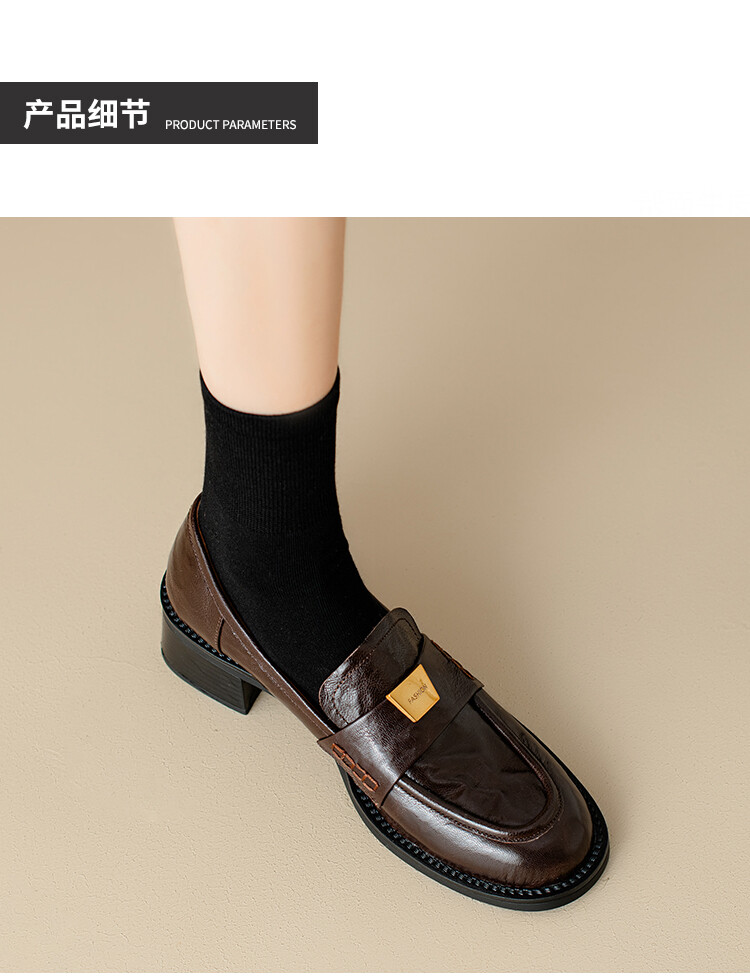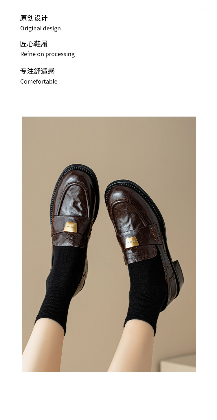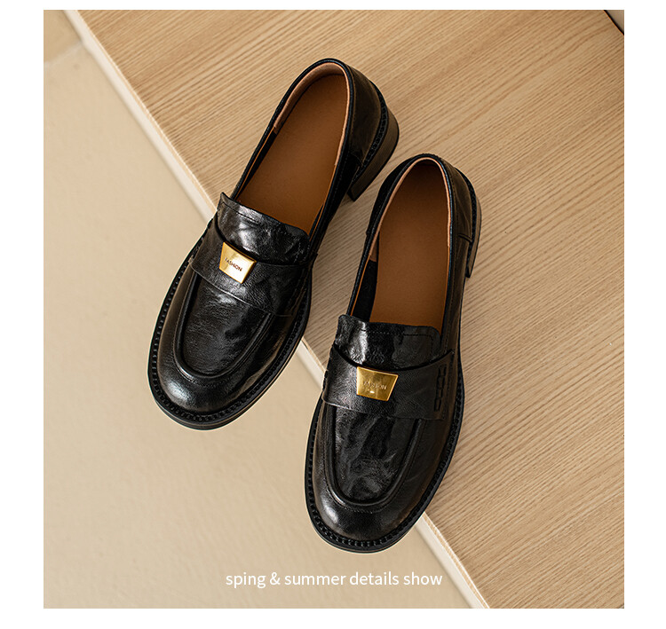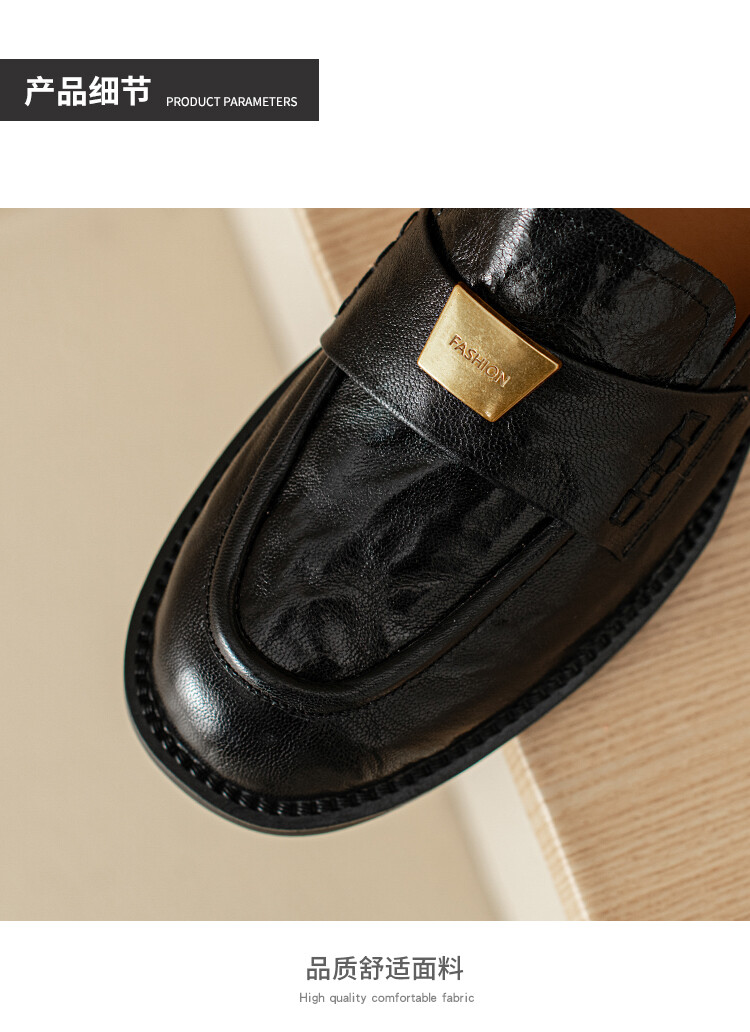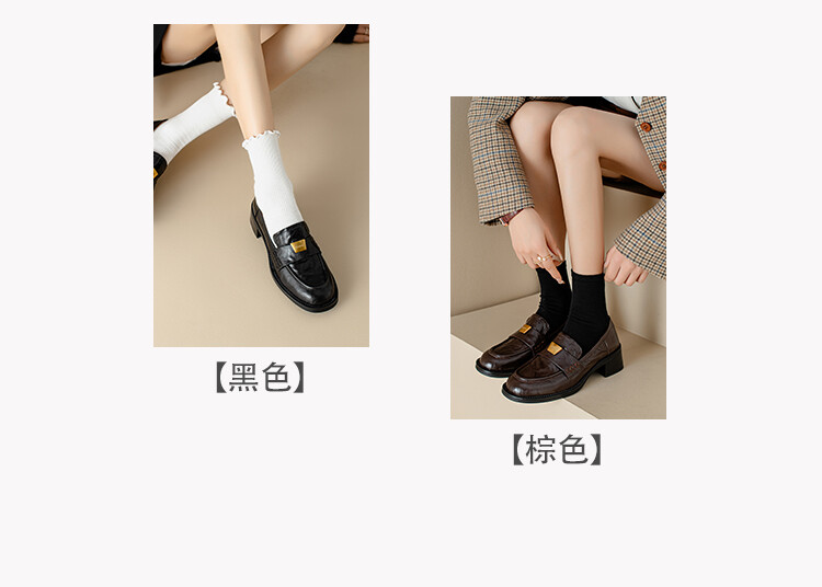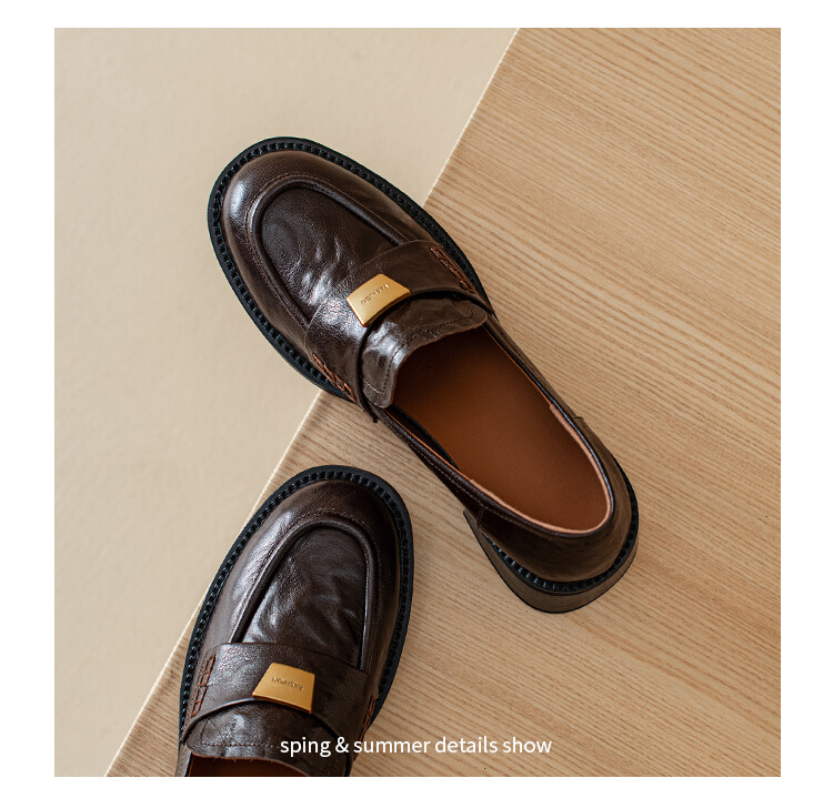 【预售5天】复古粗跟圆头乐福鞋女春秋新款手抓纹羊皮一脚蹬单鞋英伦风小皮鞋NJMK&K836