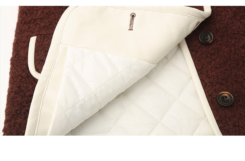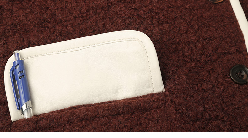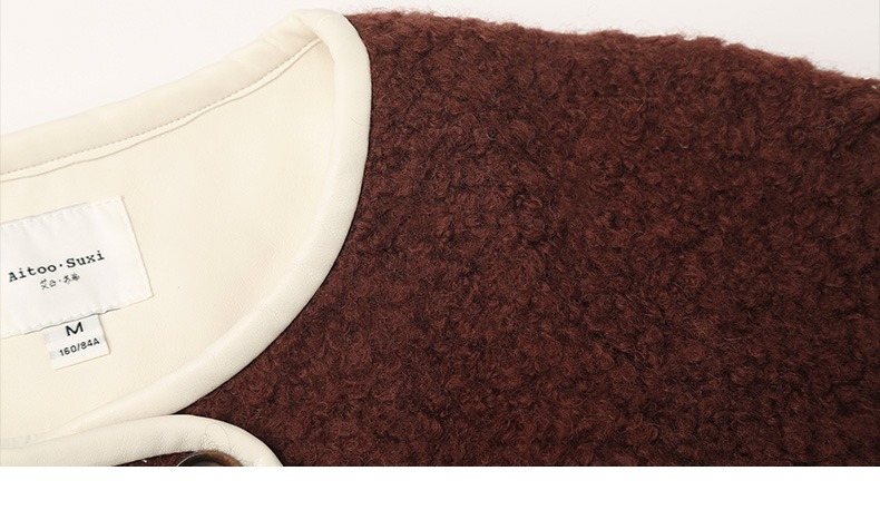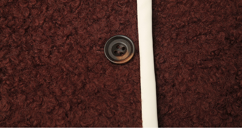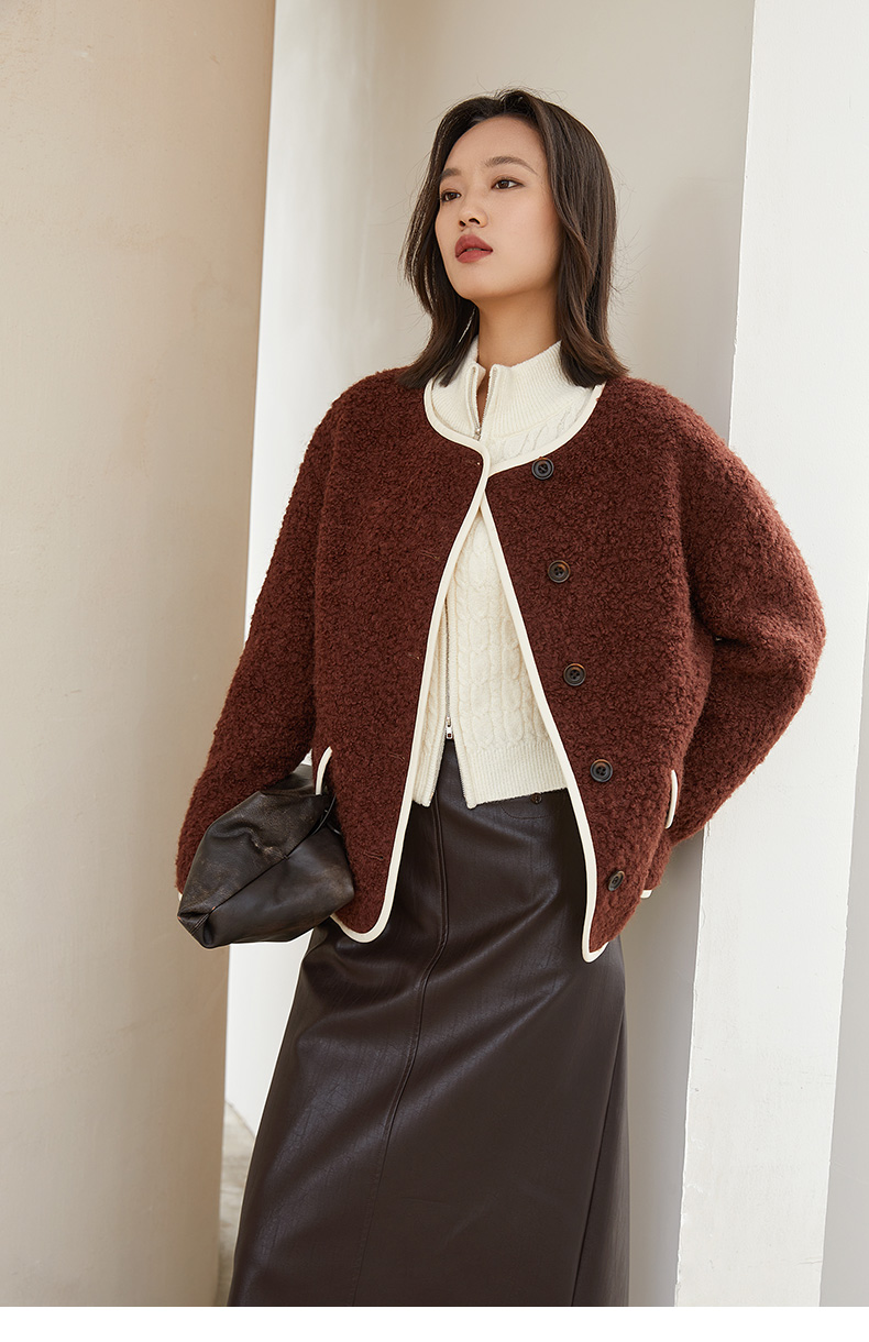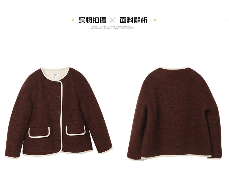 复古深咖色肌理感短款外套 圆领米白包边单排扣双口袋宽松休闲秋冬温柔气质通勤上衣