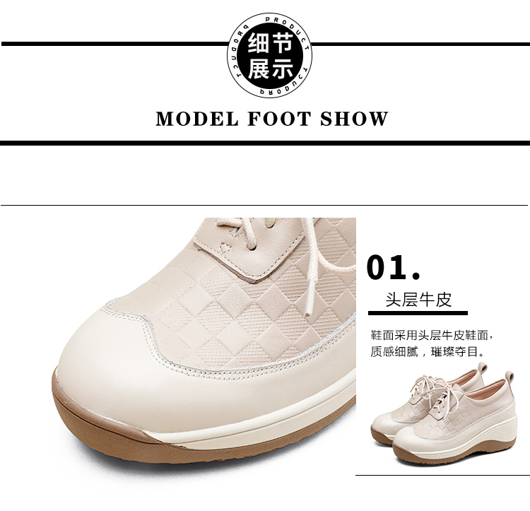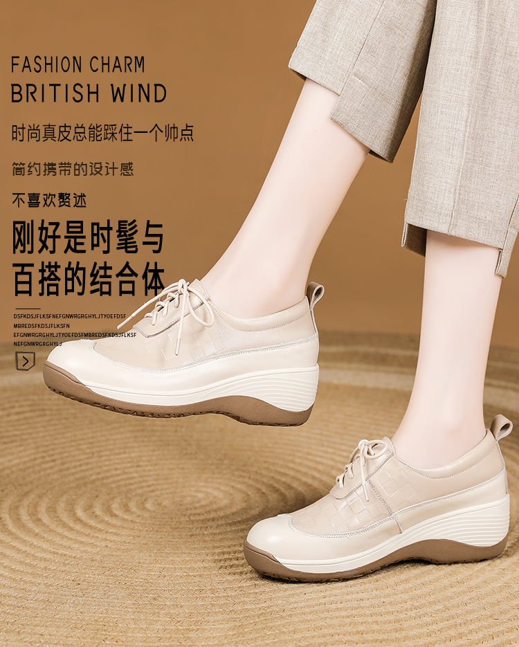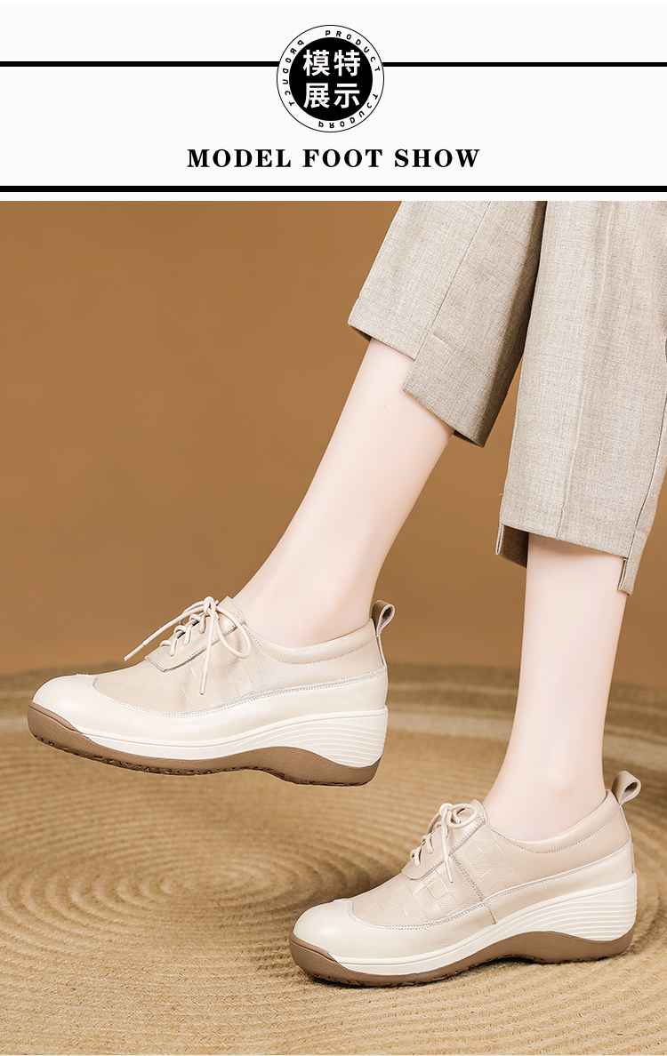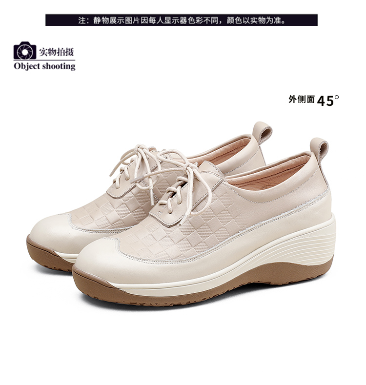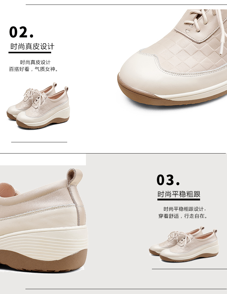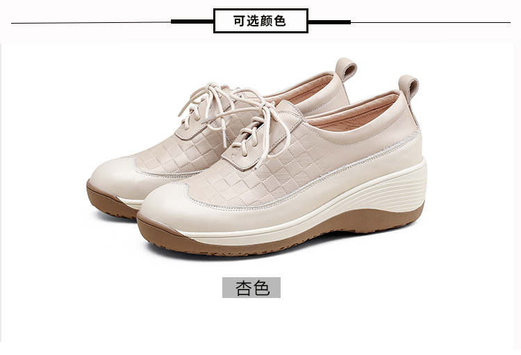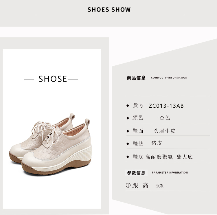 厚底真皮休闲妈妈鞋,新款系带压花舒适气质高帮鞋BZ-13AB