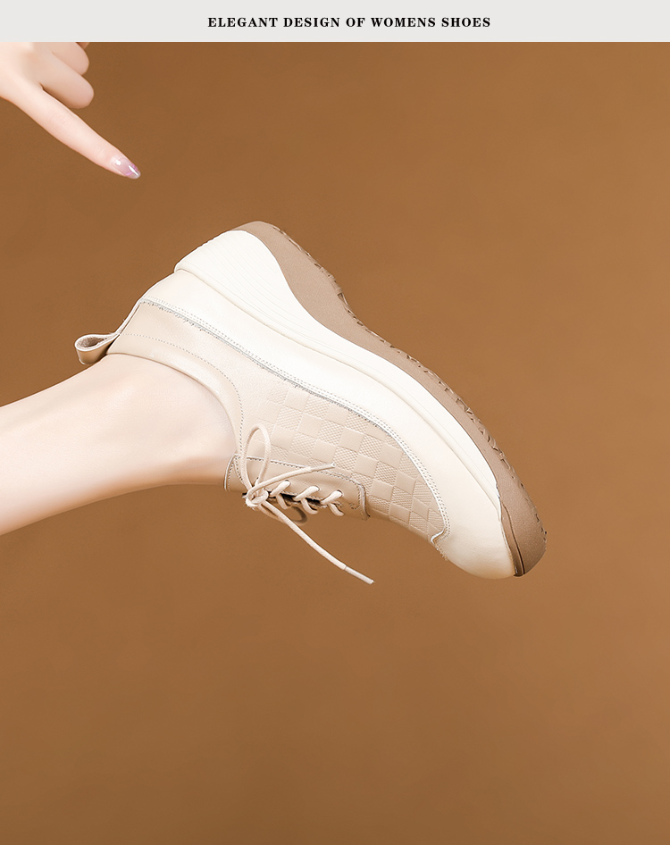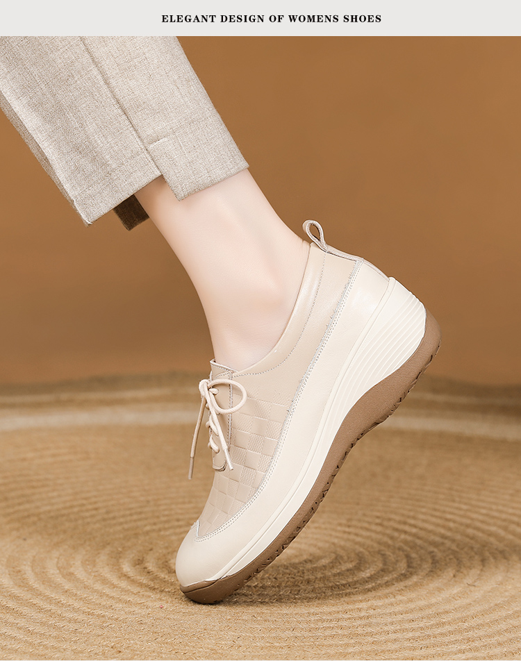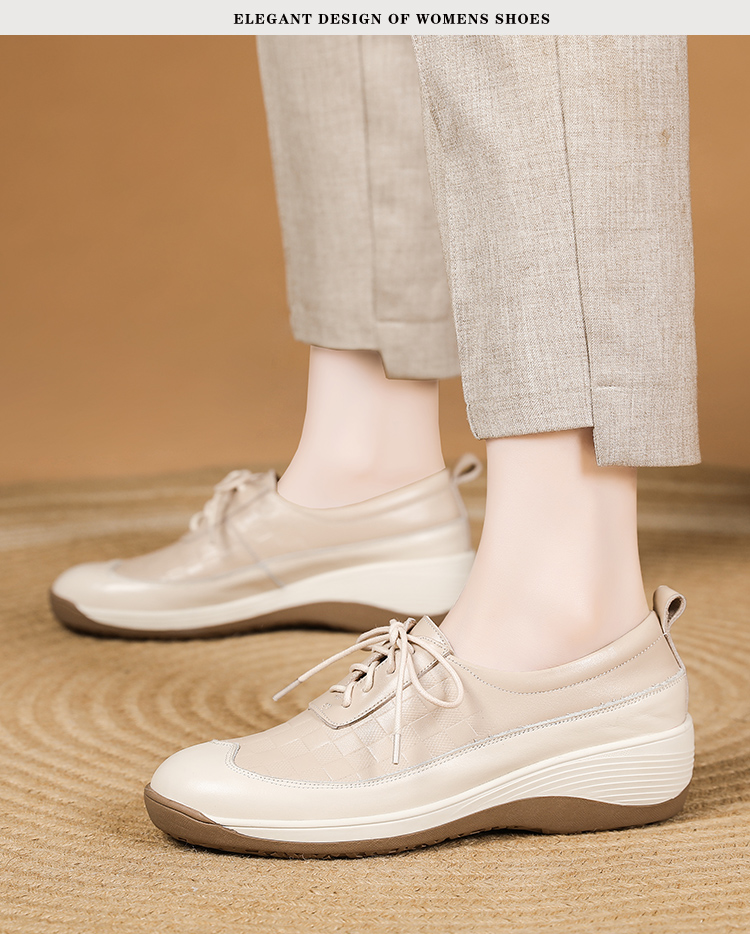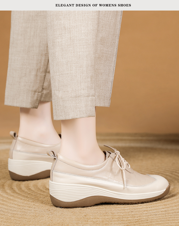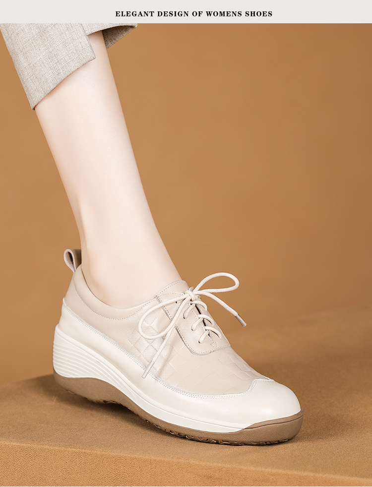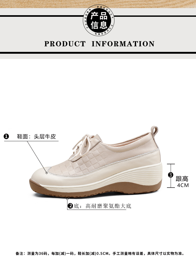 厚底真皮休闲妈妈鞋,新款系带压花舒适气质高帮鞋BZ-13AB