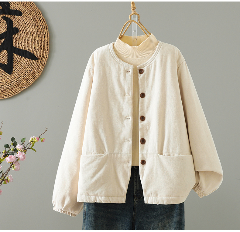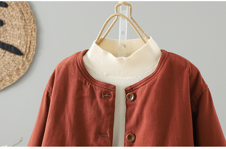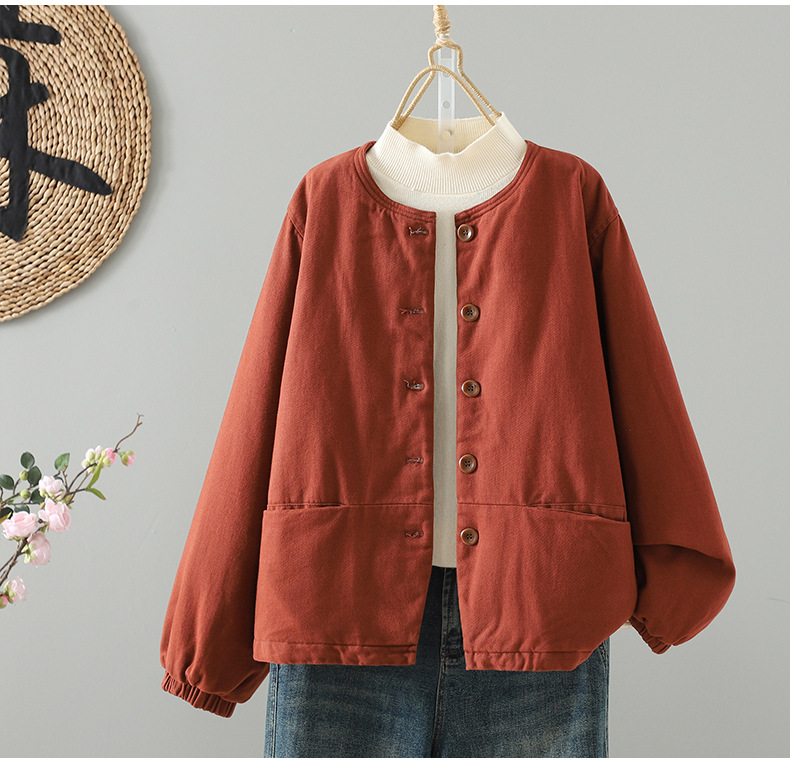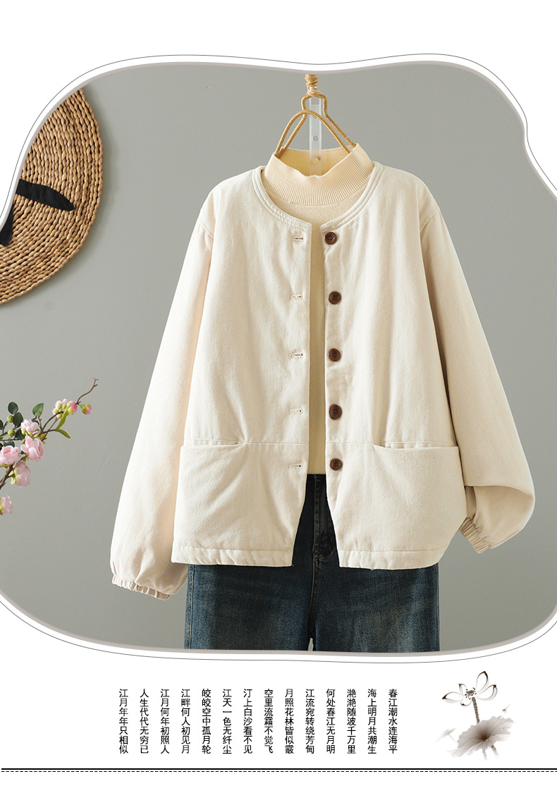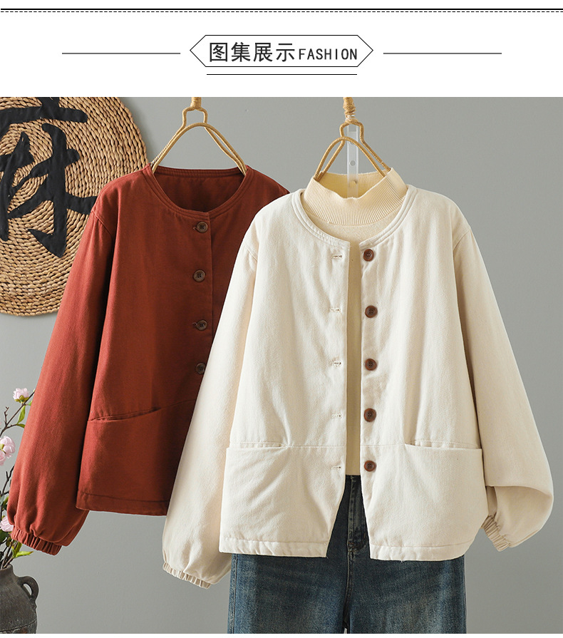 百媚生 文艺复古加厚外套女圆领单排扣夹棉棉袄保暖外套 B117
