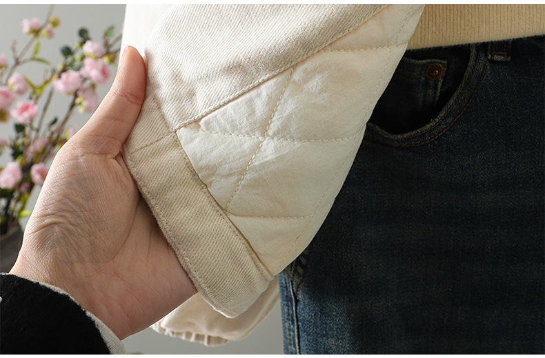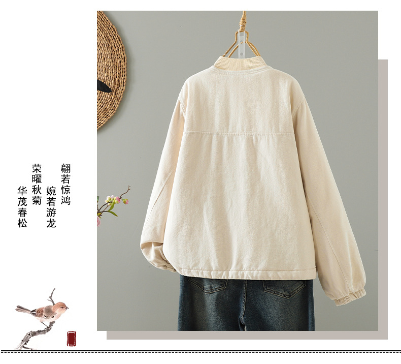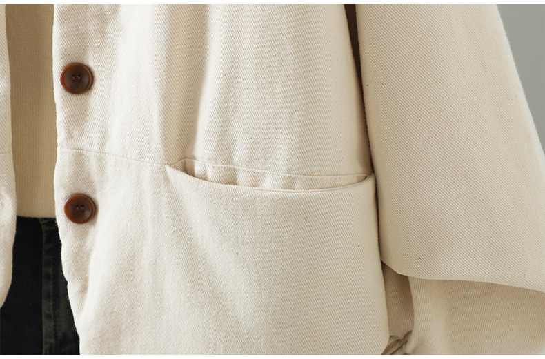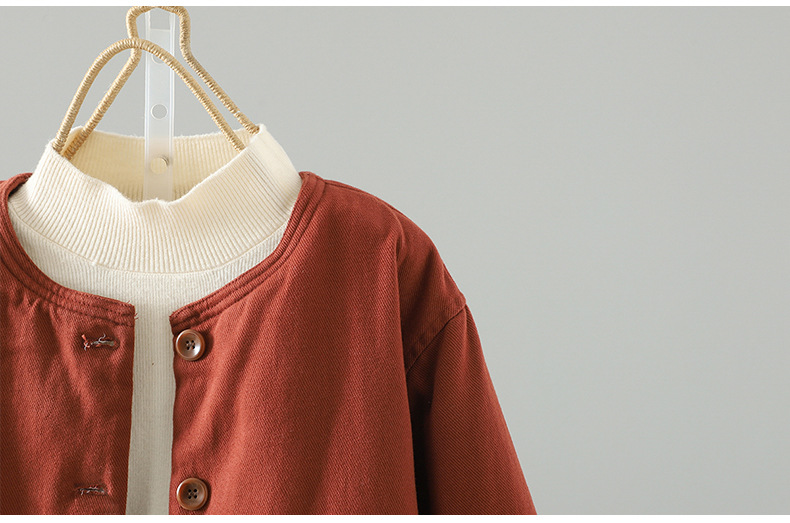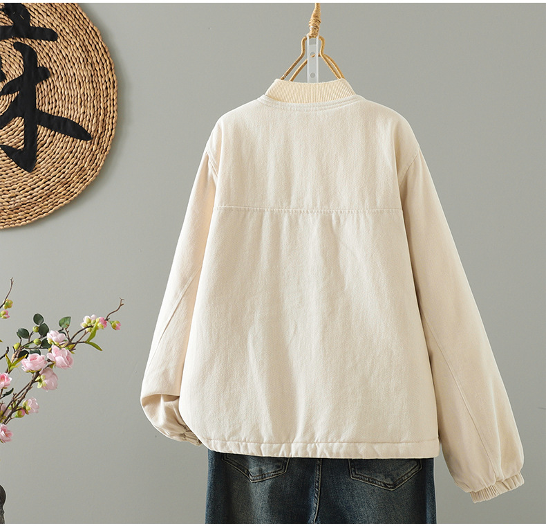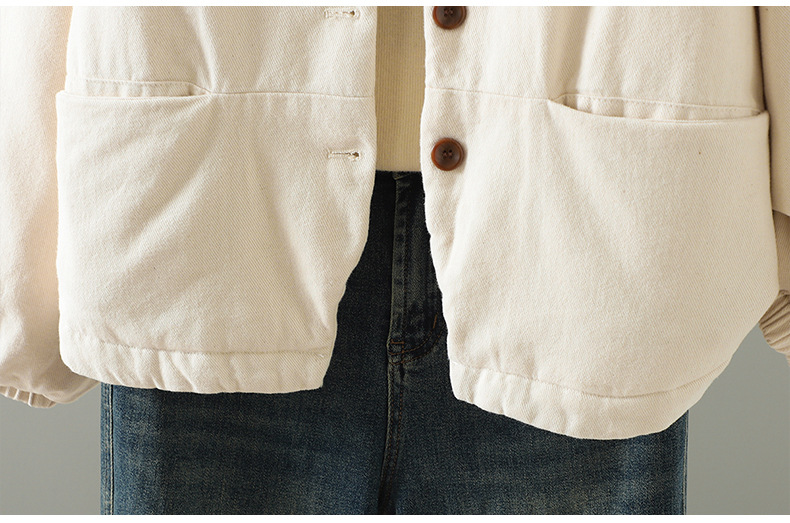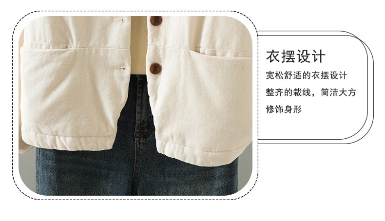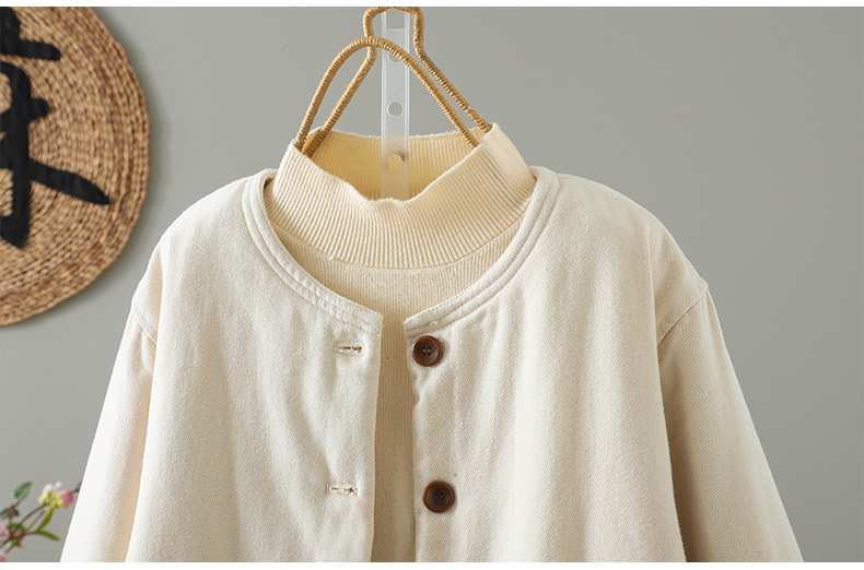 百媚生 文艺复古加厚外套女圆领单排扣夹棉棉袄保暖外套 B117