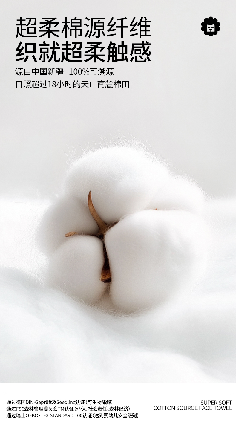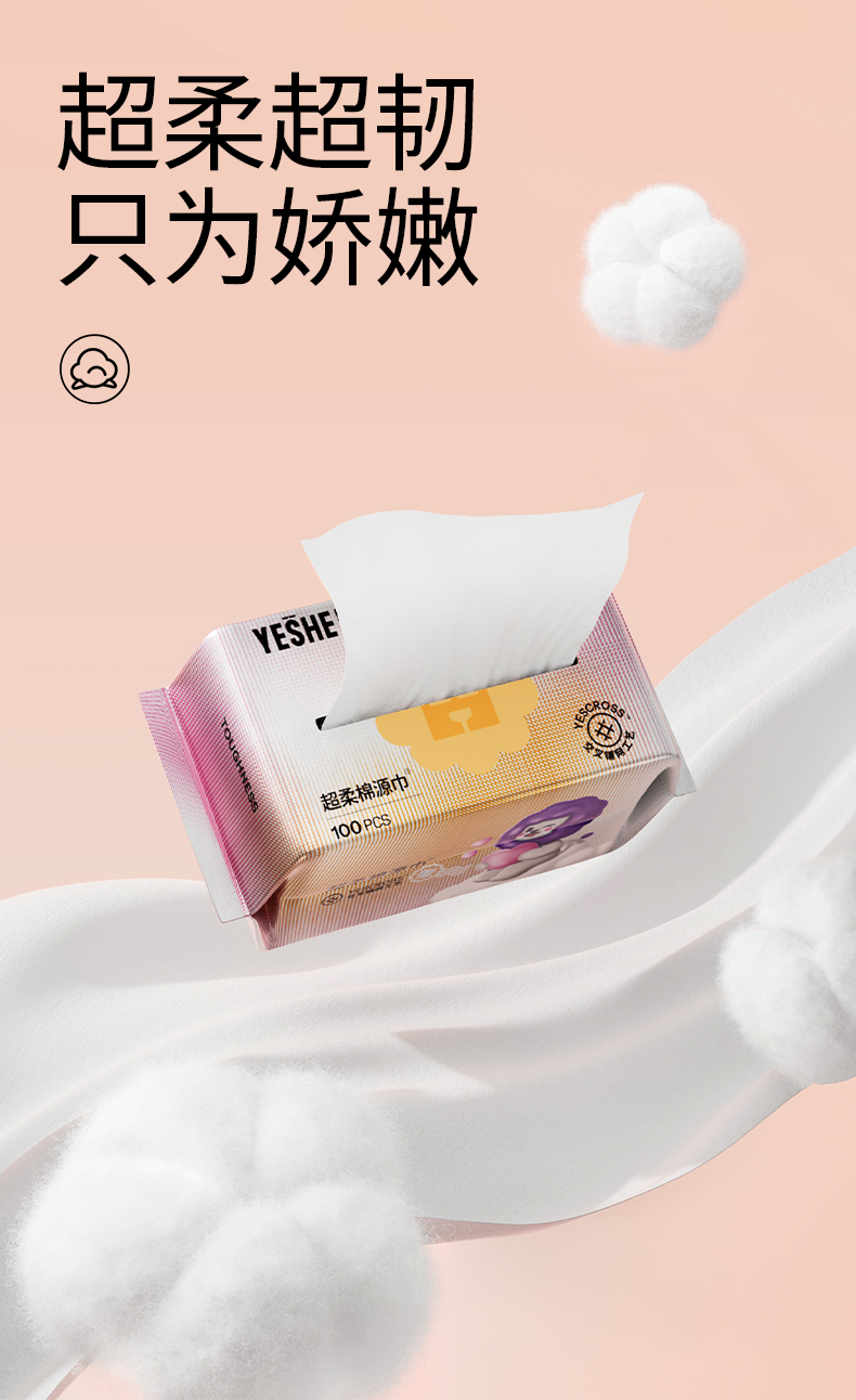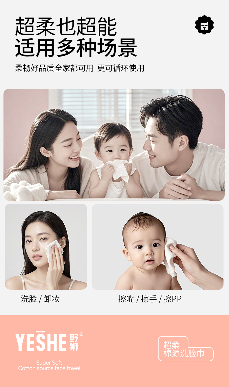 YS 100%真棉超柔棉柔巾洗脸巾 150*200mm 非粘胶纤维 无强酸强碱工艺 无二硫化碳 无石油提取物制的植物纤维