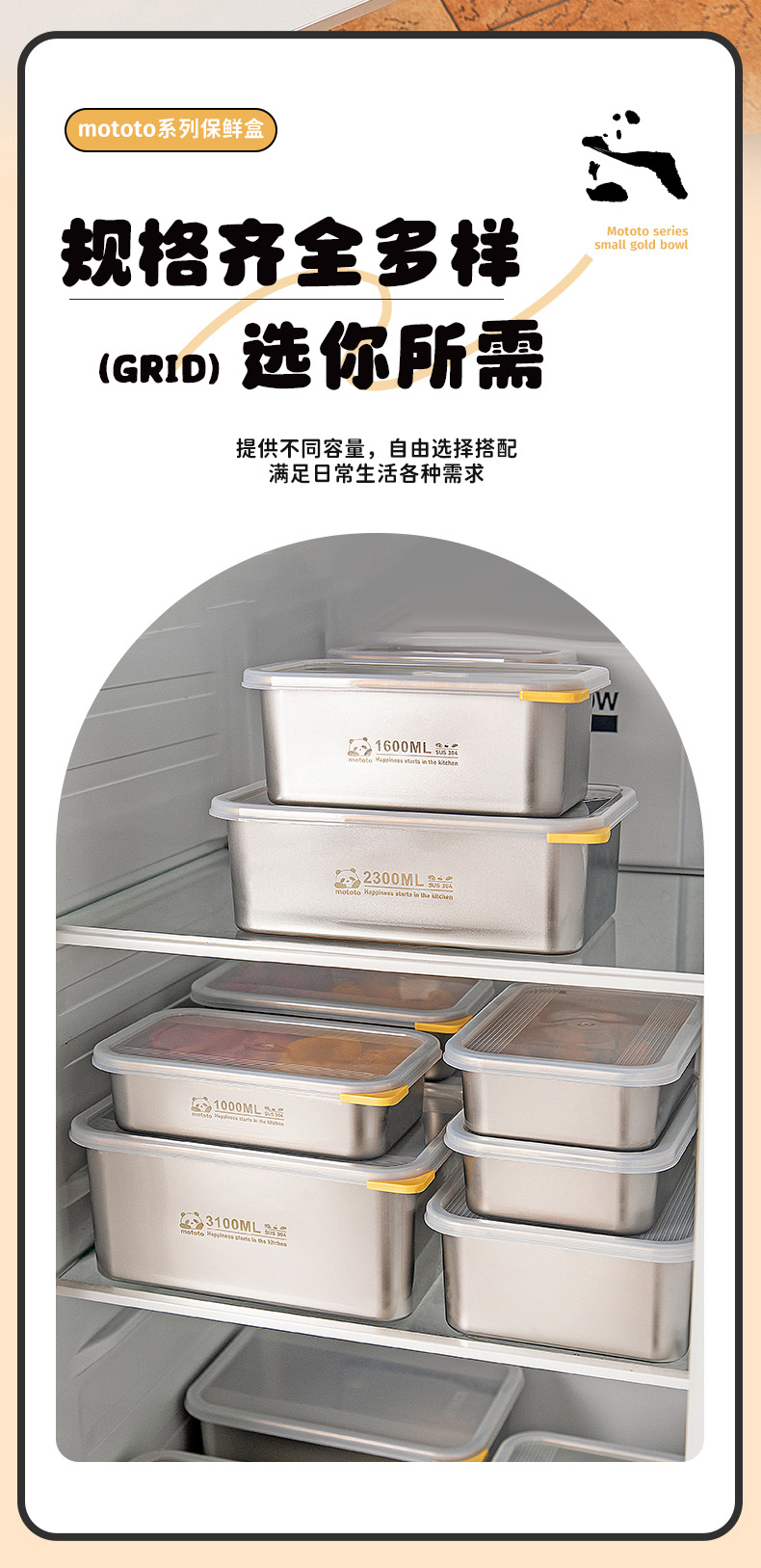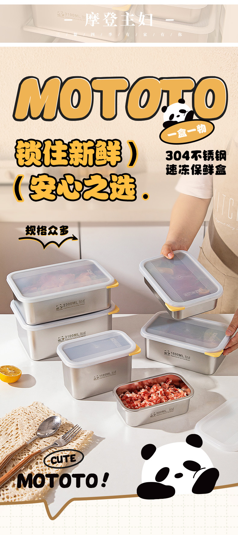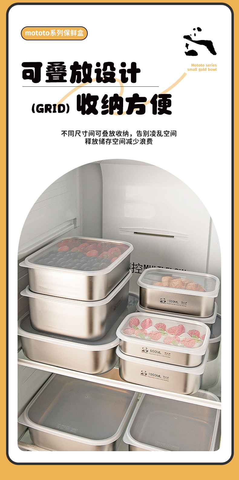 摩登主妇不锈钢保鲜盒食品级冷冻分装盒饭盒冰箱收纳盒水果便当盒