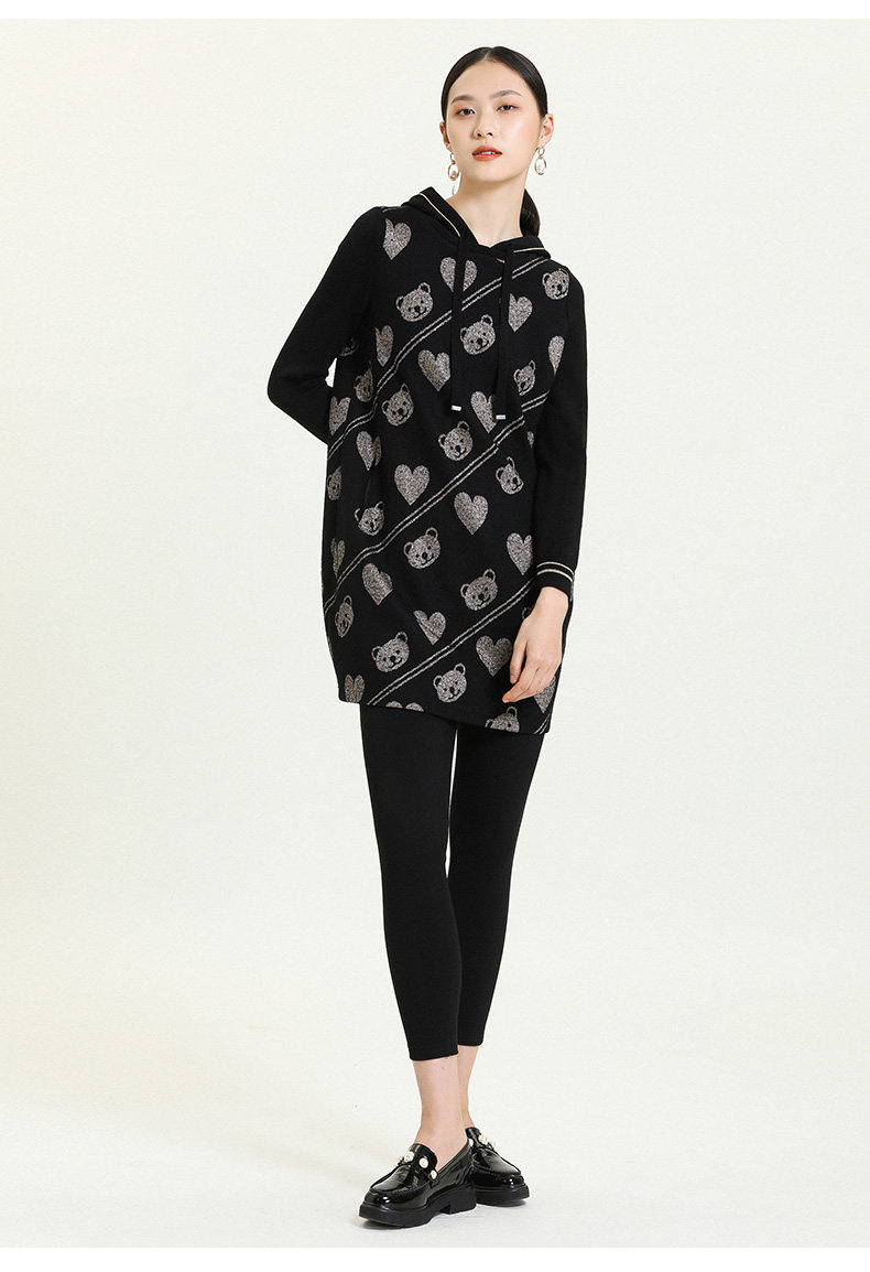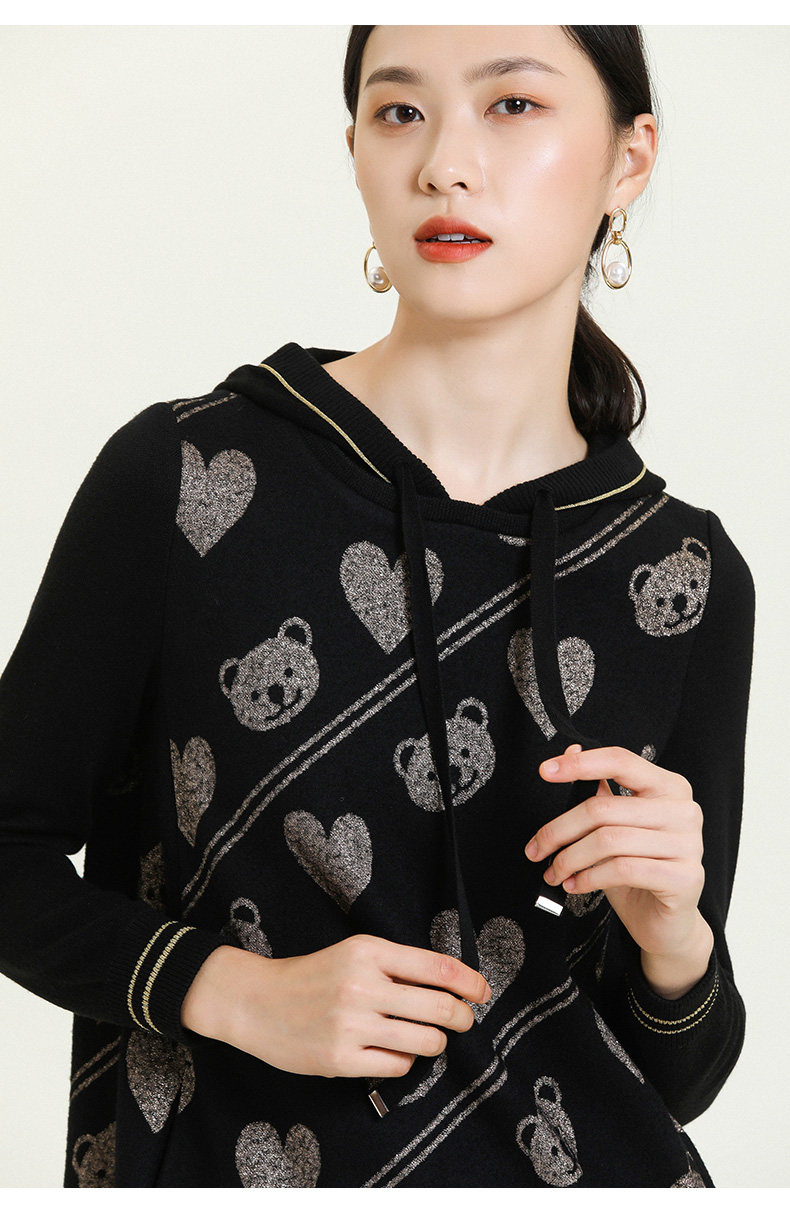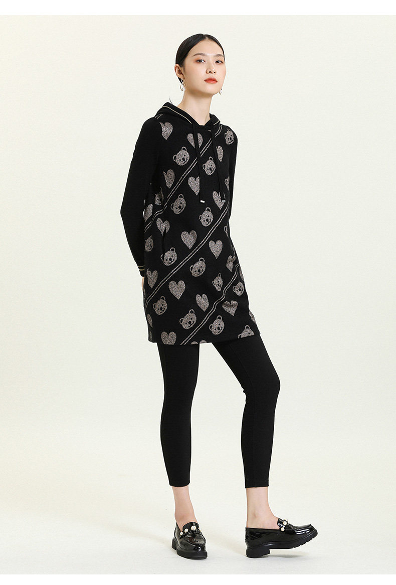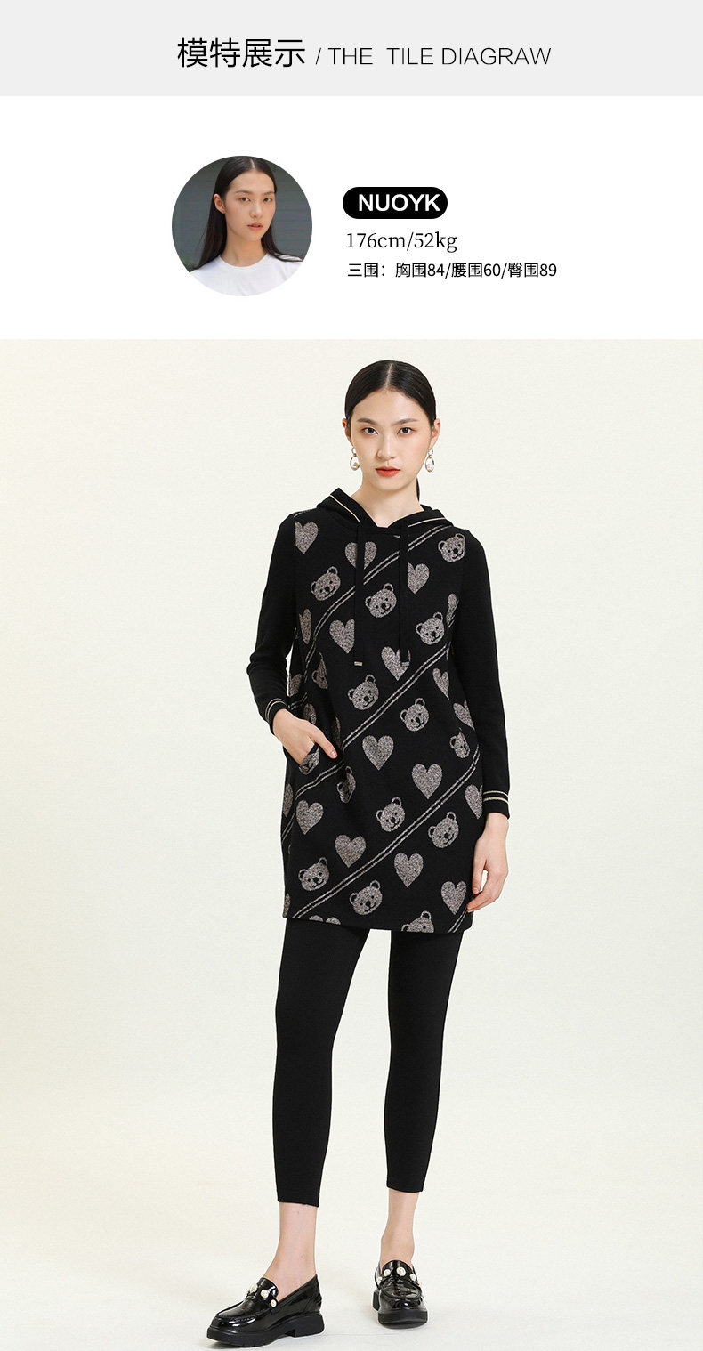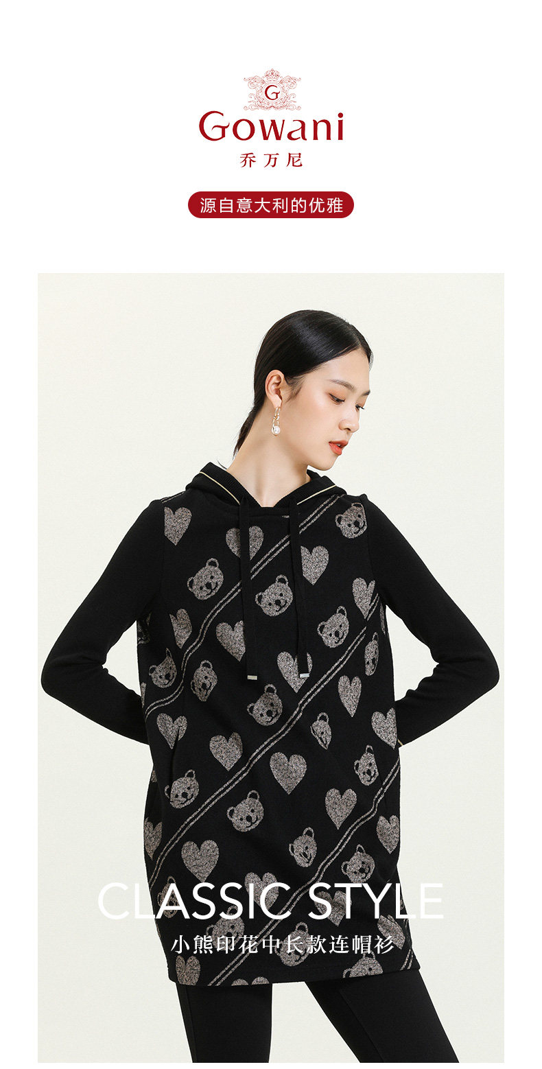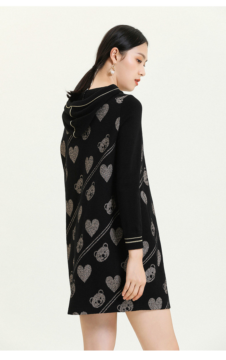 乔万尼秋冬新款重磅羊毛保暖时尚减龄休闲舒适气质款连帽连衣裙ES4E340