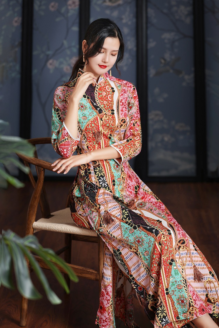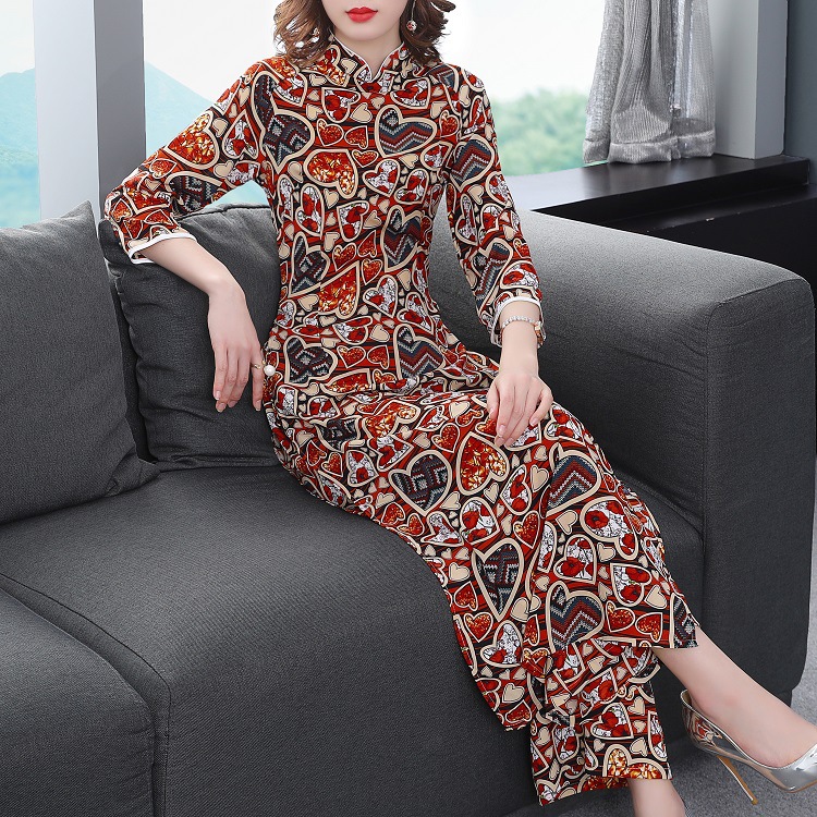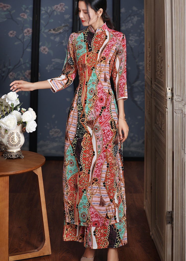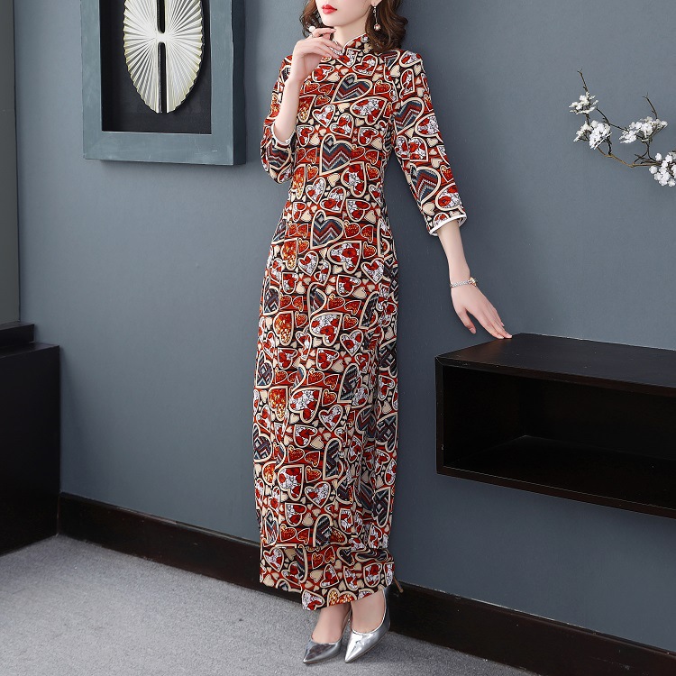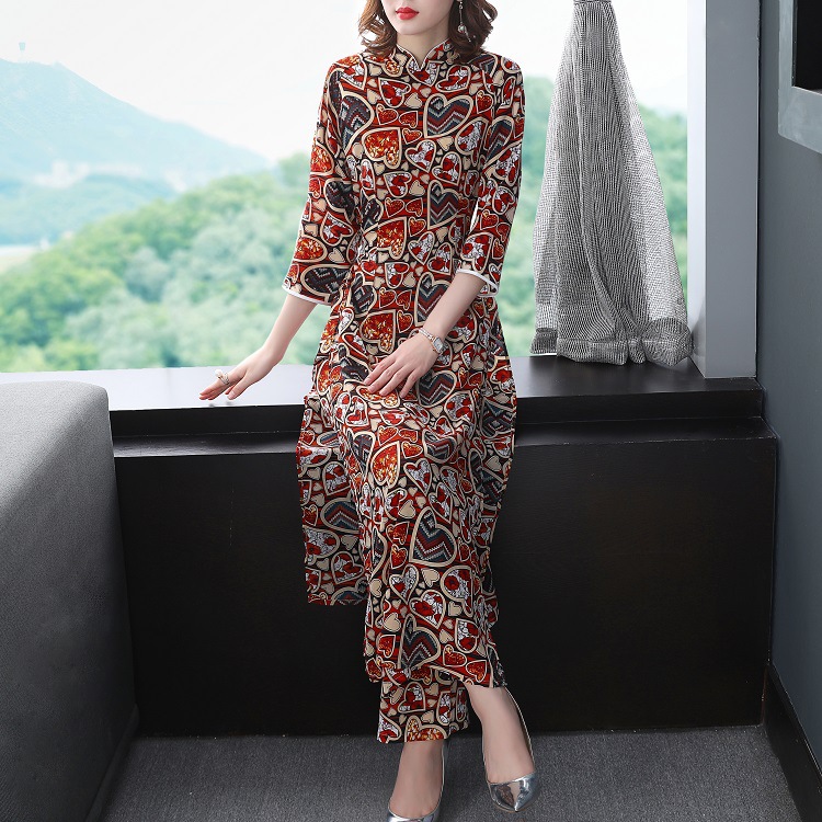 RFG-9606D新款名媛气质旗袍上衣阔腿裤洋气时髦时尚两件套