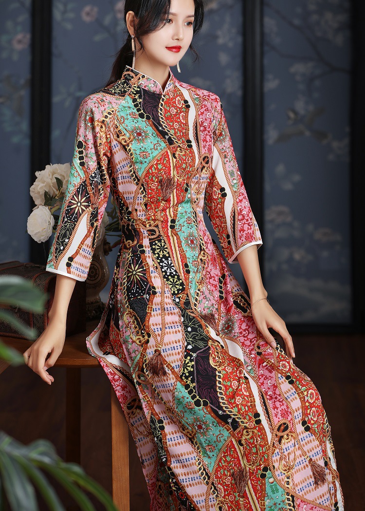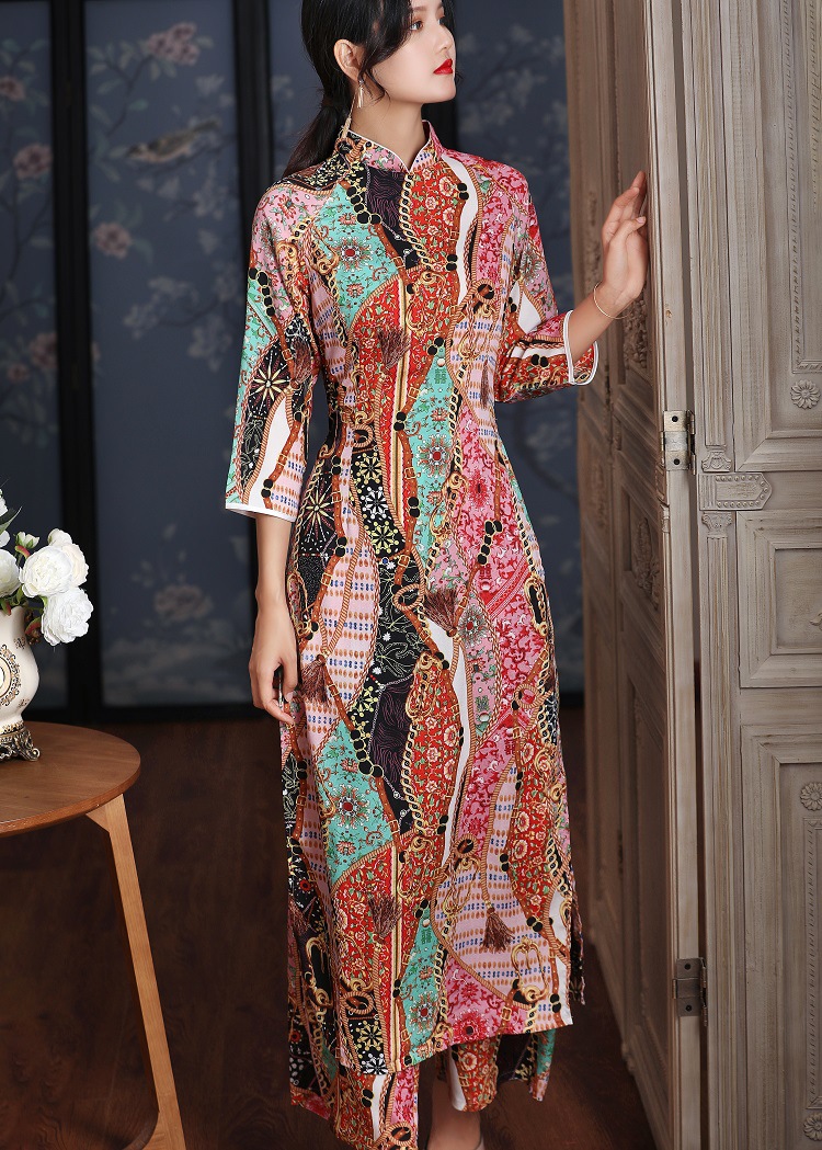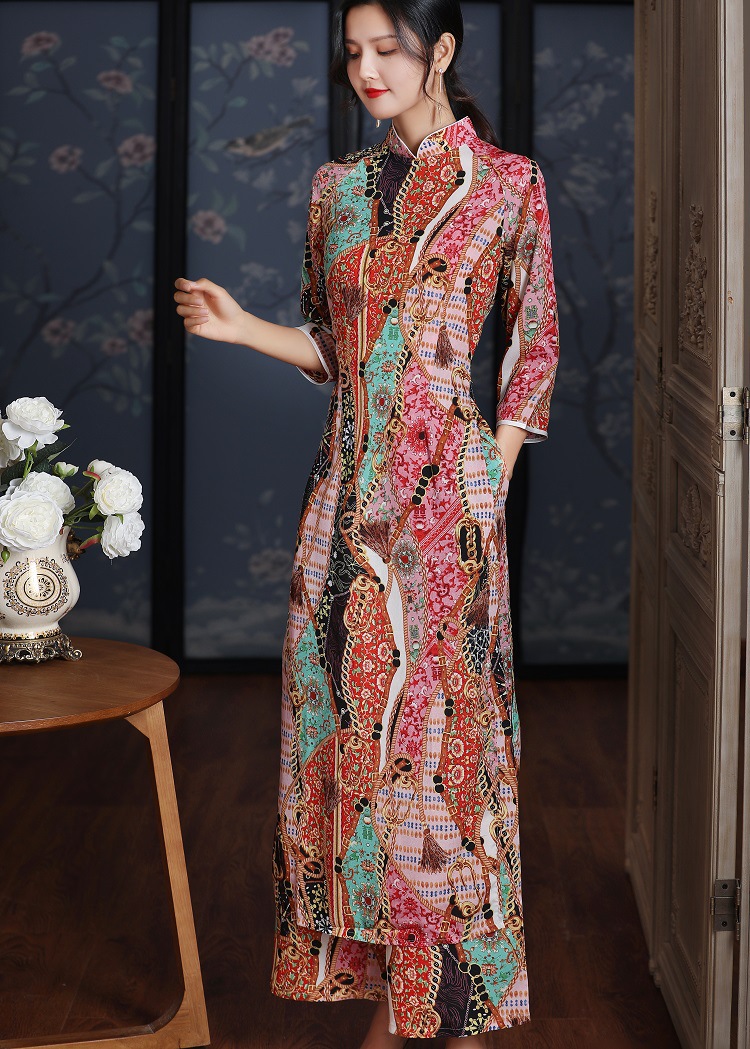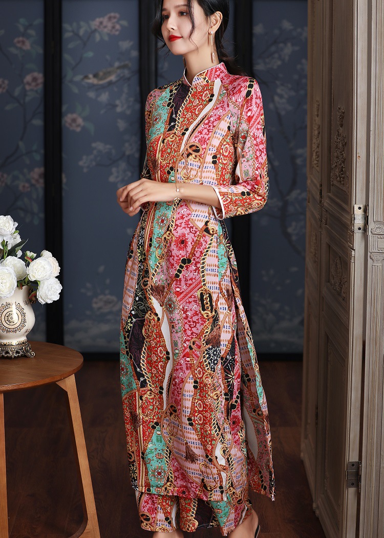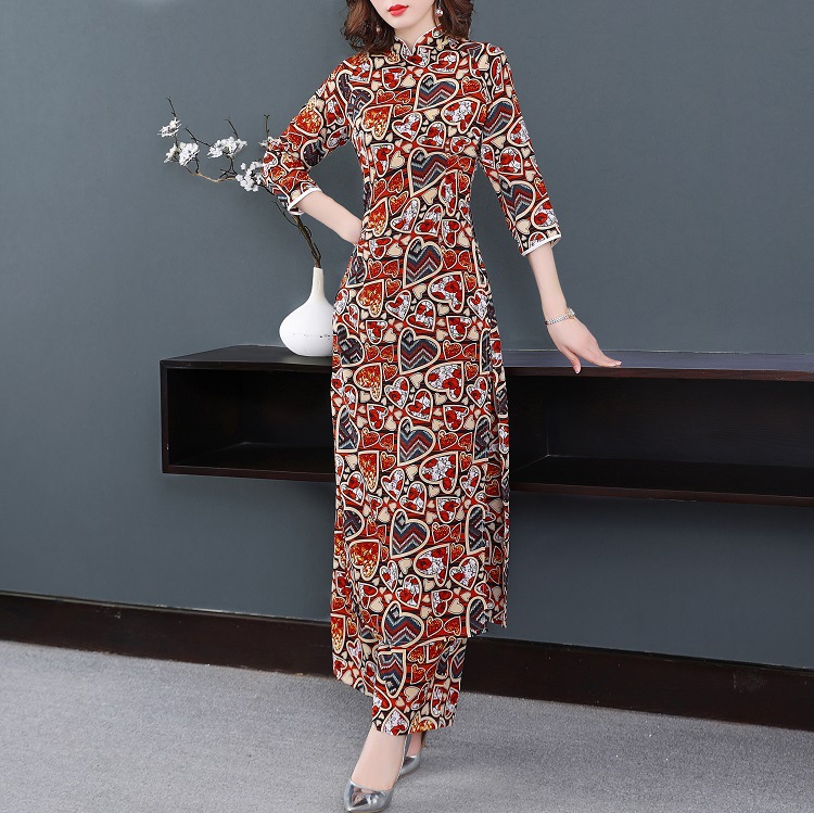RFG-9606D新款名媛气质旗袍上衣阔腿裤洋气时髦时尚两件套
