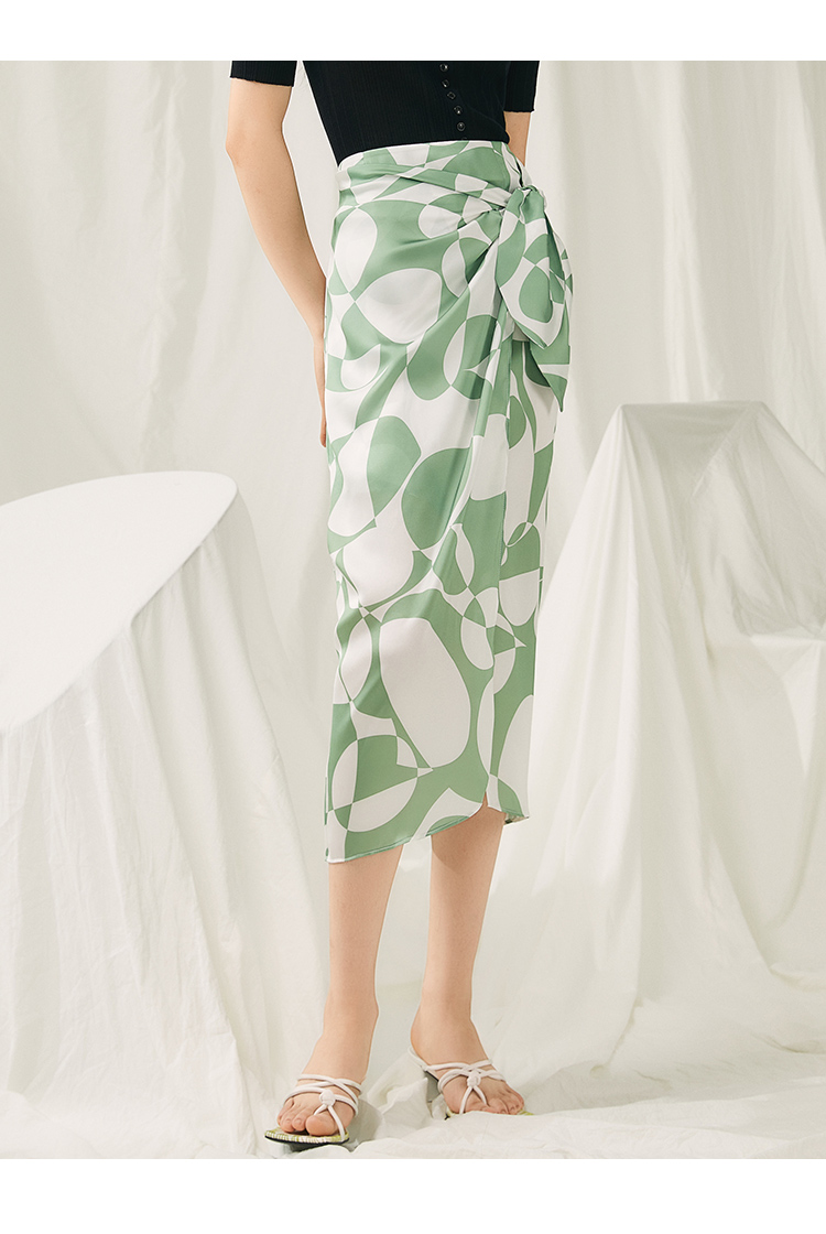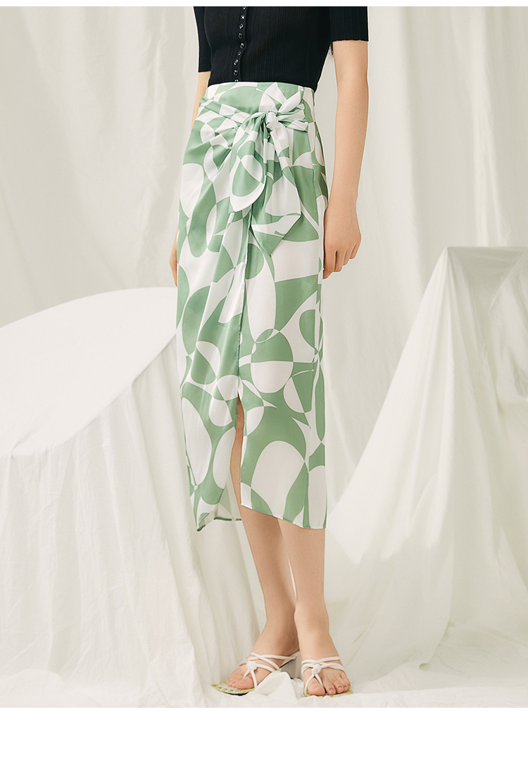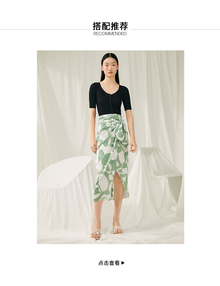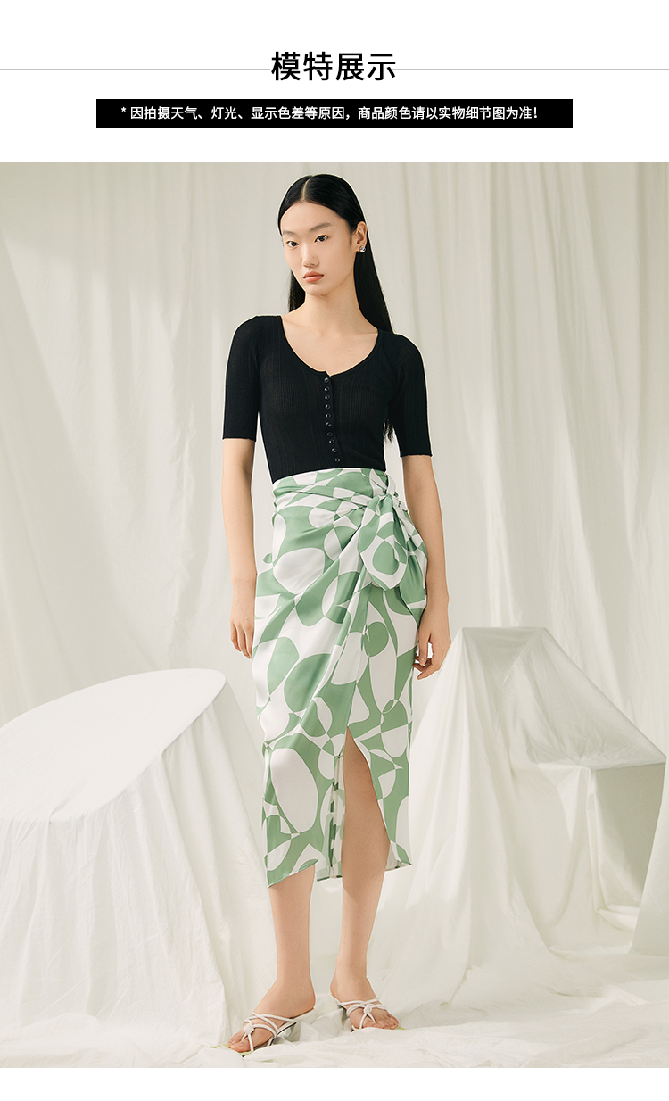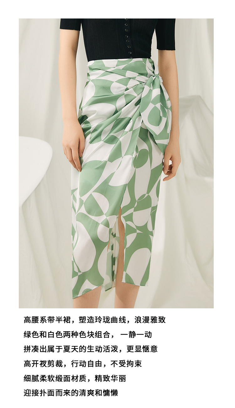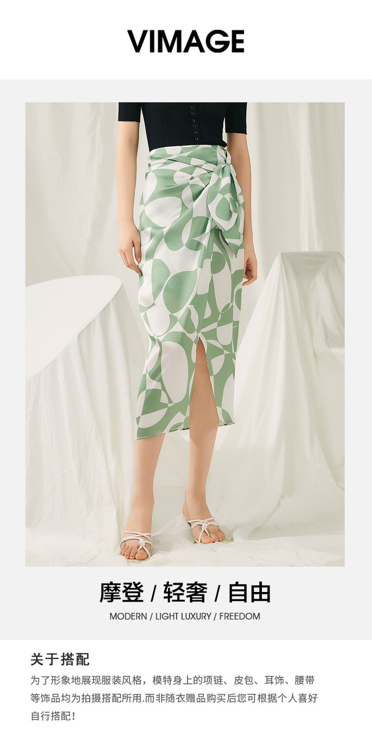 VIMAGE纬漫纪夏季新款大方裙摆开叉印花半身裙V1906526