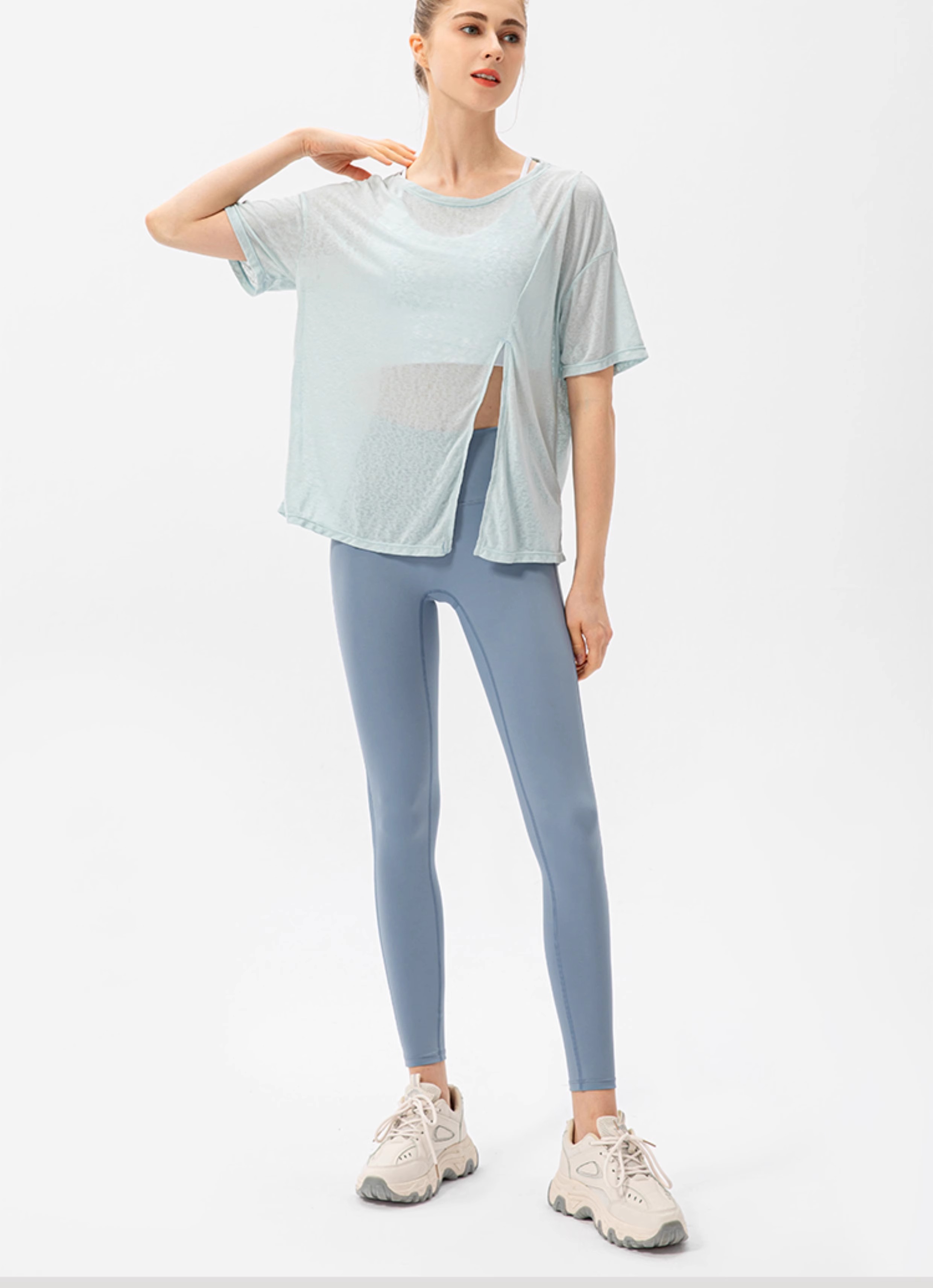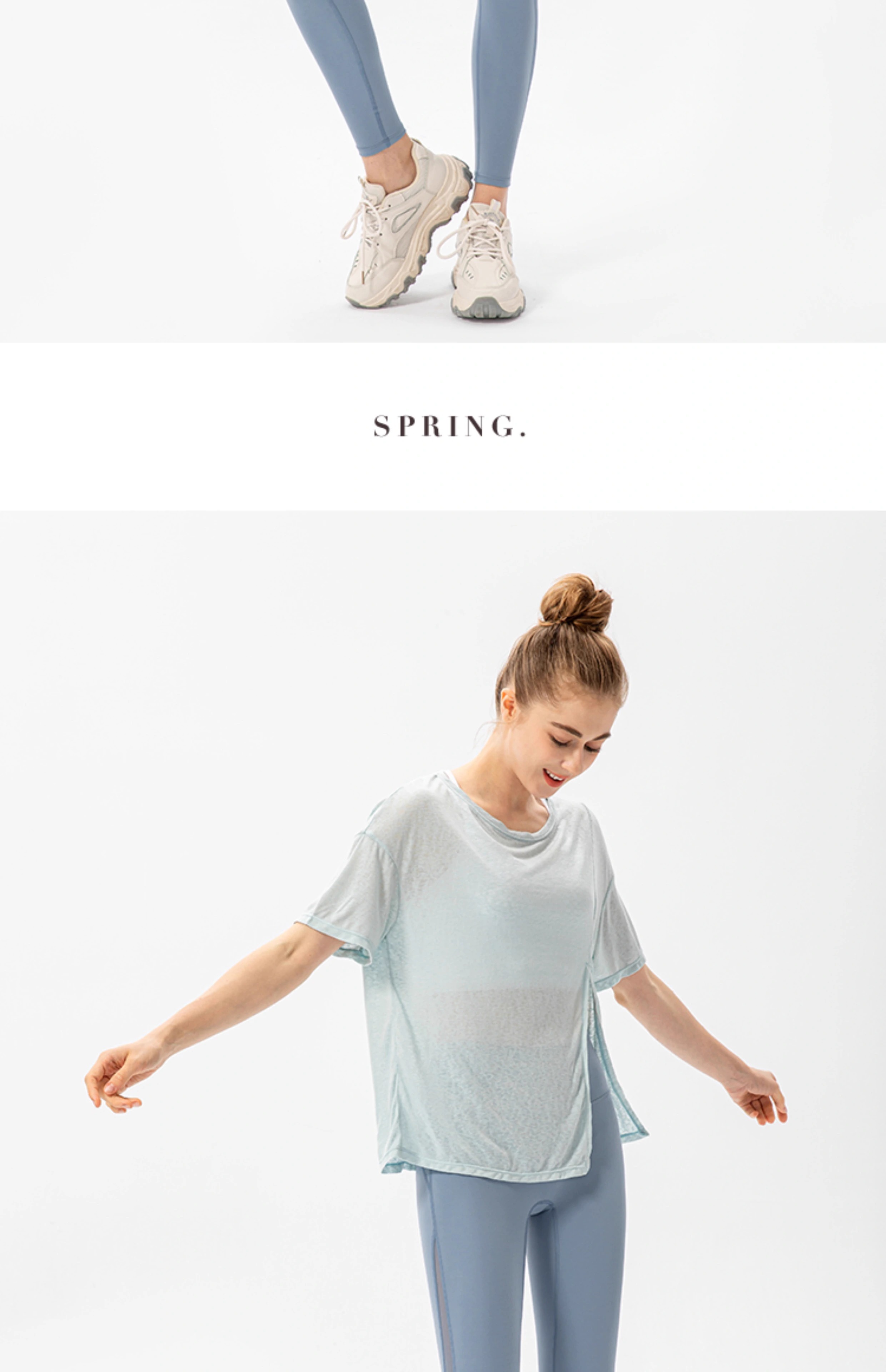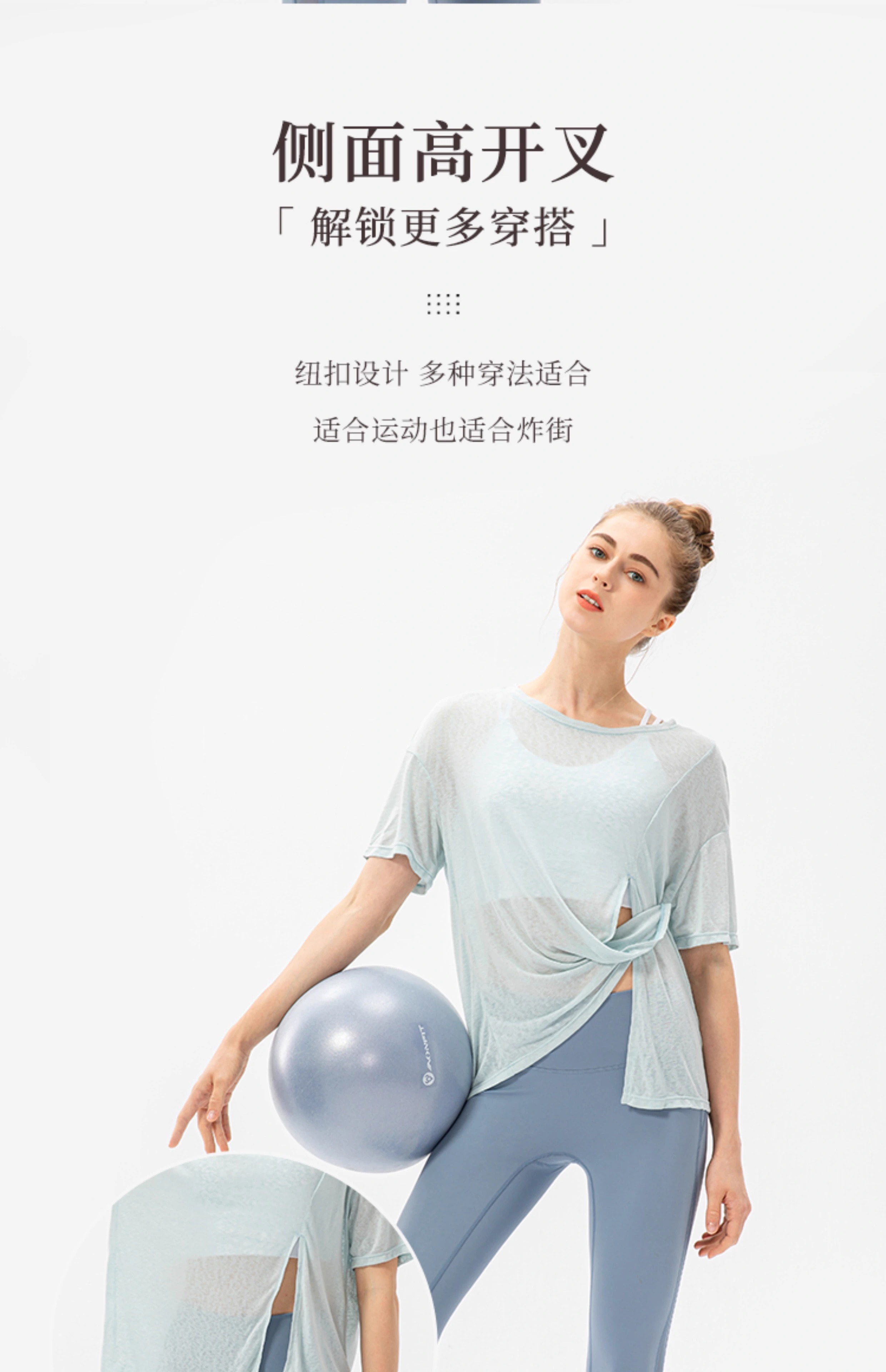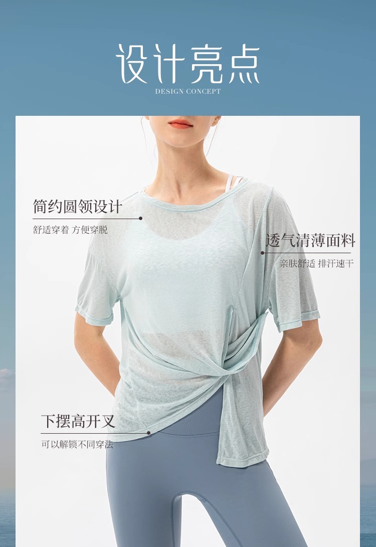 跃牌【欲动春风】系列 新款女开叉运动罩衫速干跑步圆领T恤户外健身瑜伽短袖22223