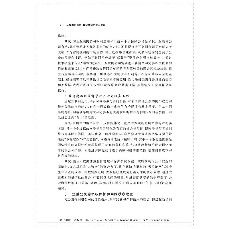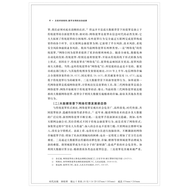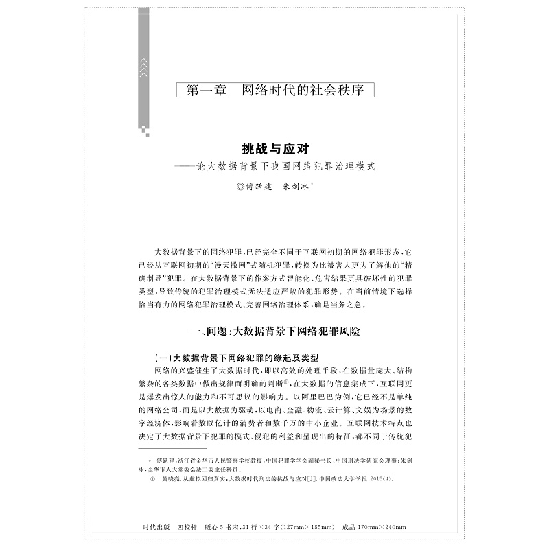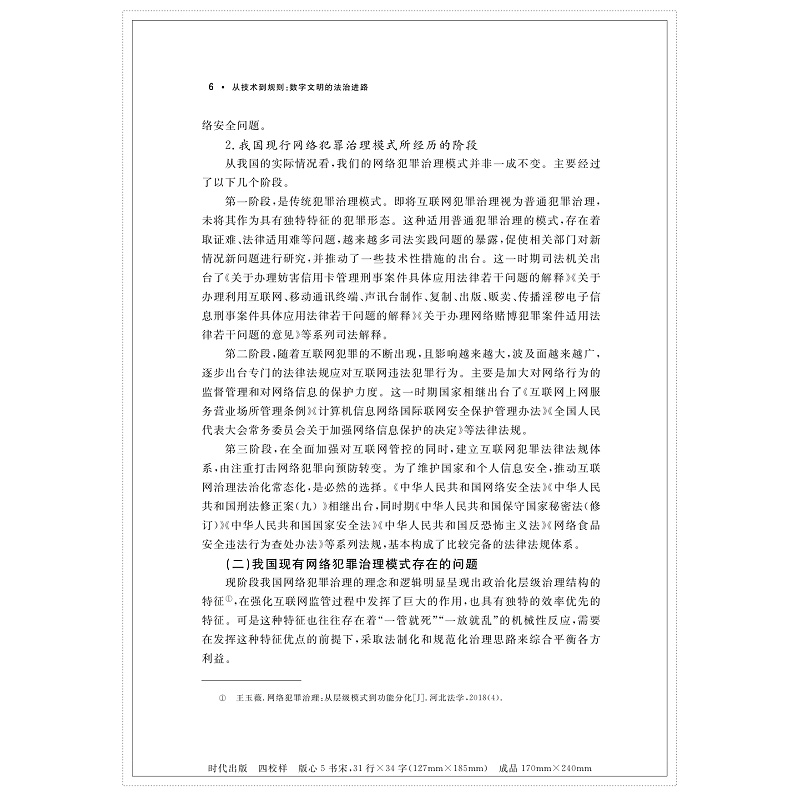 本书为2018互联网法律大会的理论成果。本书分为四个部分。 “网络时代的社会秩序”围绕互联网、大数据、人工智能技术的兴起,探究网络犯罪的治理模式、政府的功能转型等社会治理问题;“网络时代的数据保护”围绕大数据在具体领域使用的法律困境、公民个人信息保护现状,对我国相关法律体系进行反思并提出完善建议;“网络犯罪的证明与证据”针对网络犯罪特点,探讨网络犯罪证明难题的新思路与新方法 ;“网络服务提供者的刑事责任”就网络平台对于自身义务的边界、相关罪名的适用完善提出完善建议。