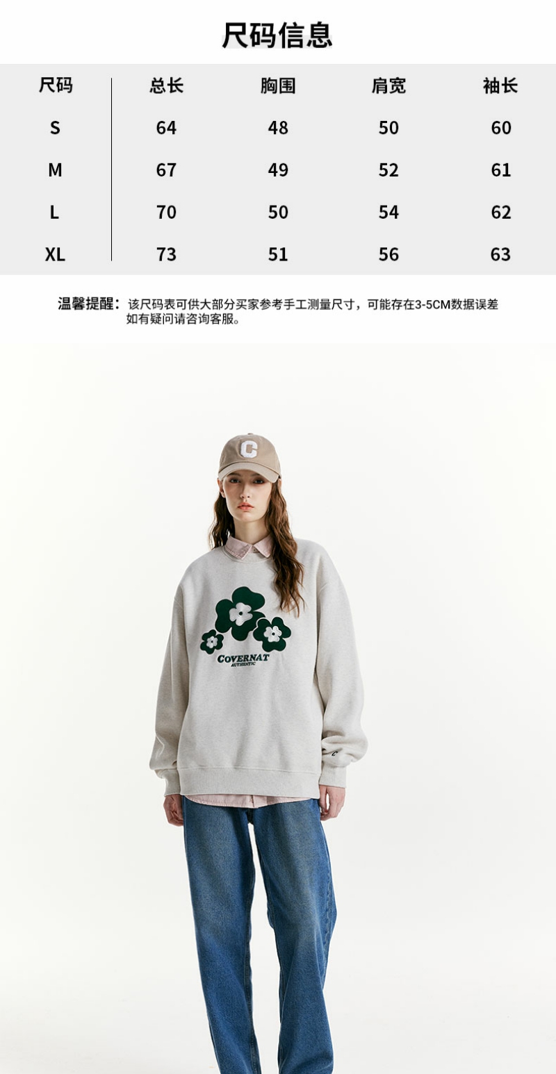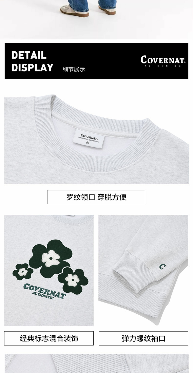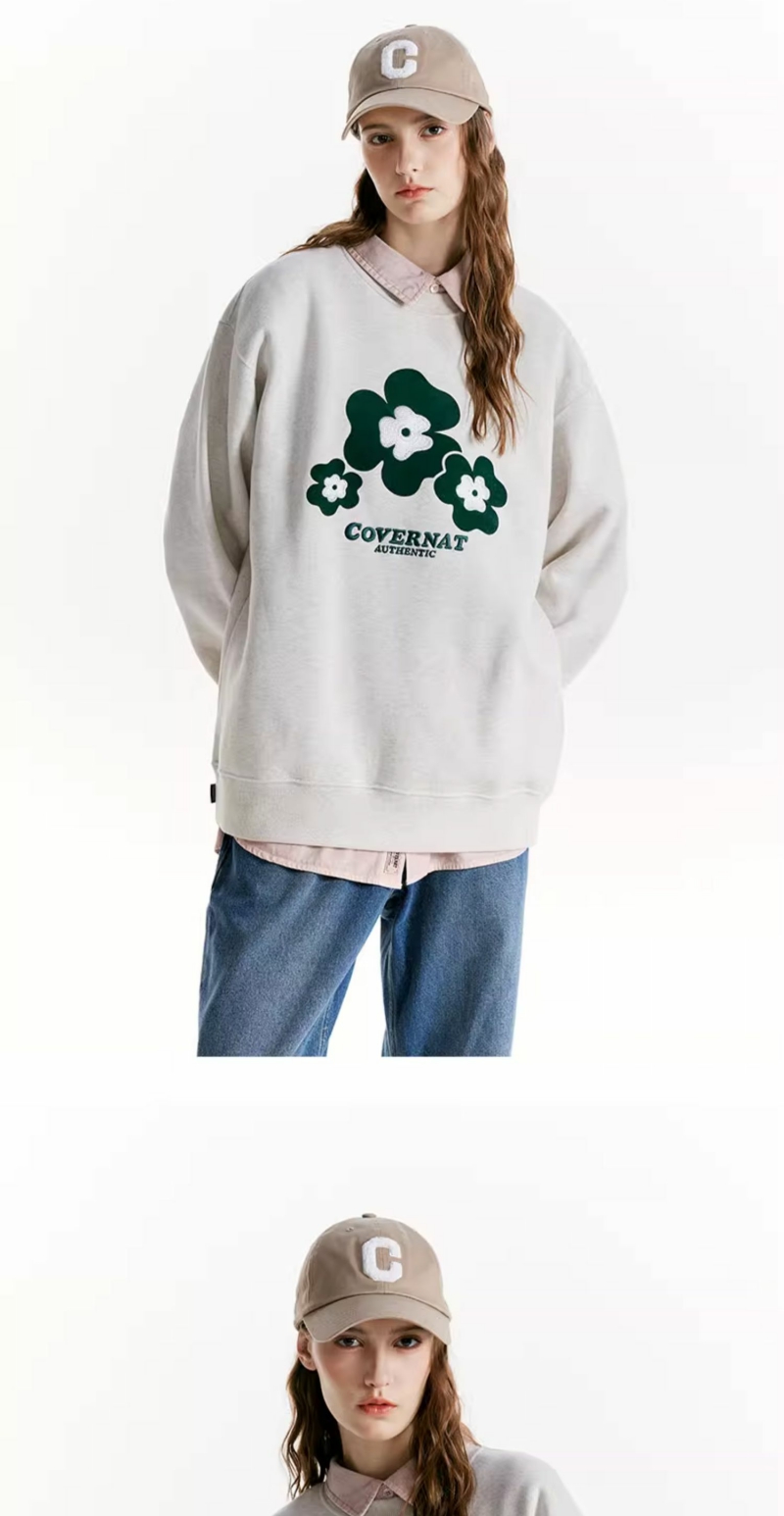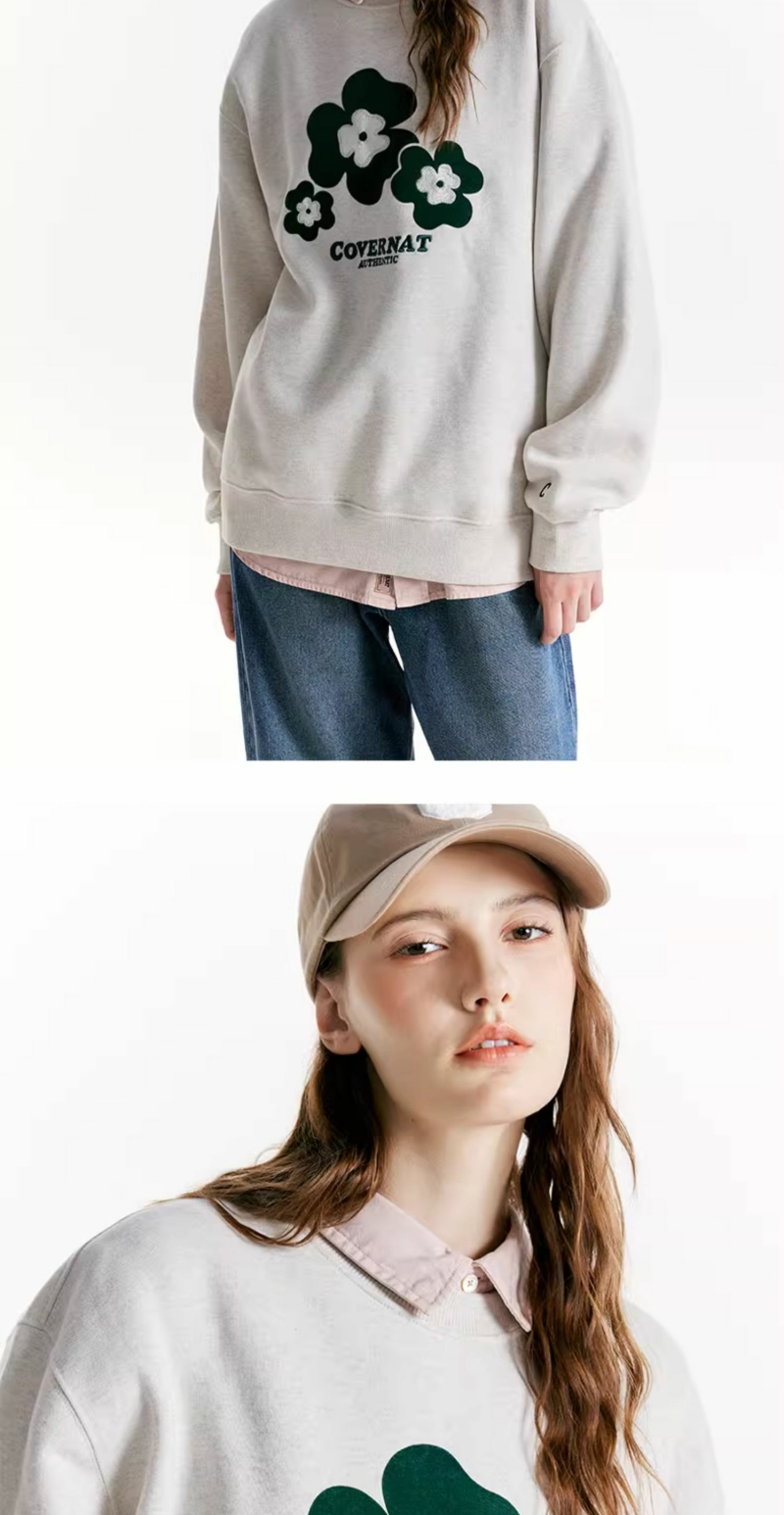 【国庆狂欢】Covernat韩国潮牌套头加绒三叶草标宽松高街情侣卫衣穿搭24秋冬CO2203CR17