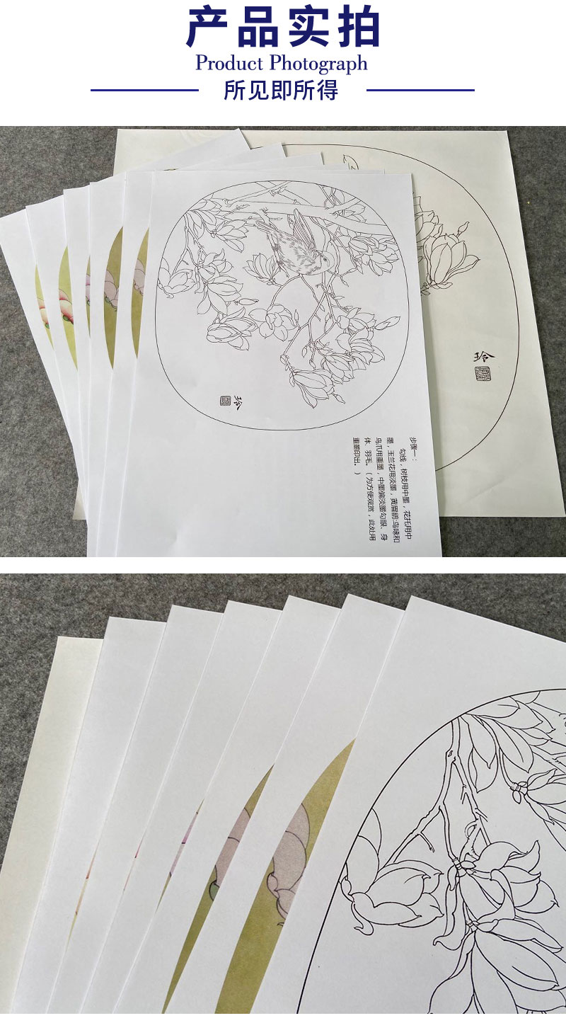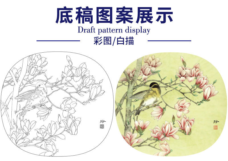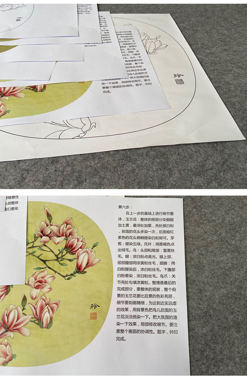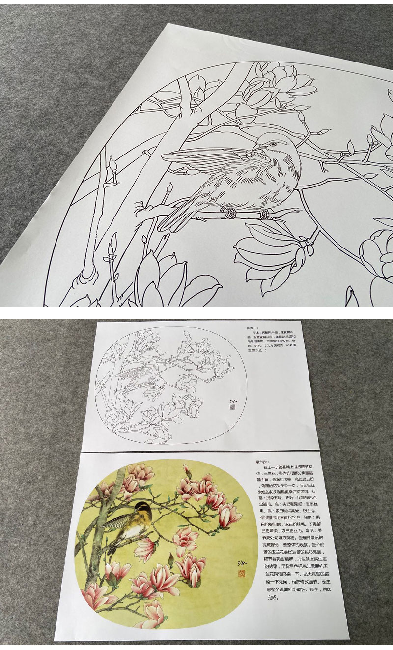 【有步骤、大彩图】郑玲玲工笔画白描底稿小品《黄眉玉兰图》初学者临摹花鸟线稿ZL64