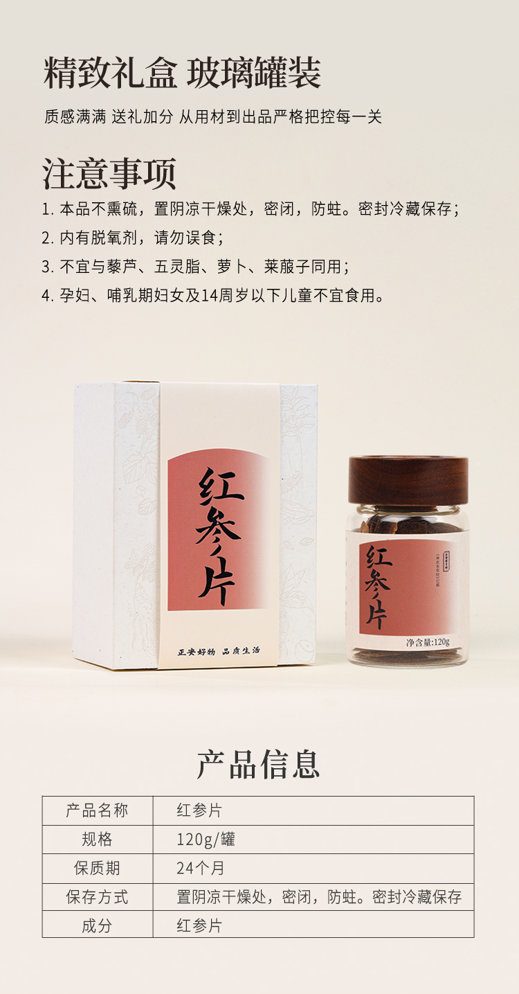 正安 长白朝鲜族县红参片 帮助阳气扎根 给自己充充气 家庭泡水煲汤常备 六年种植冬季采挖 原参蒸制片大耐泡优质原材 120g/盒