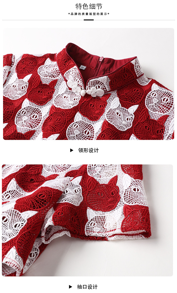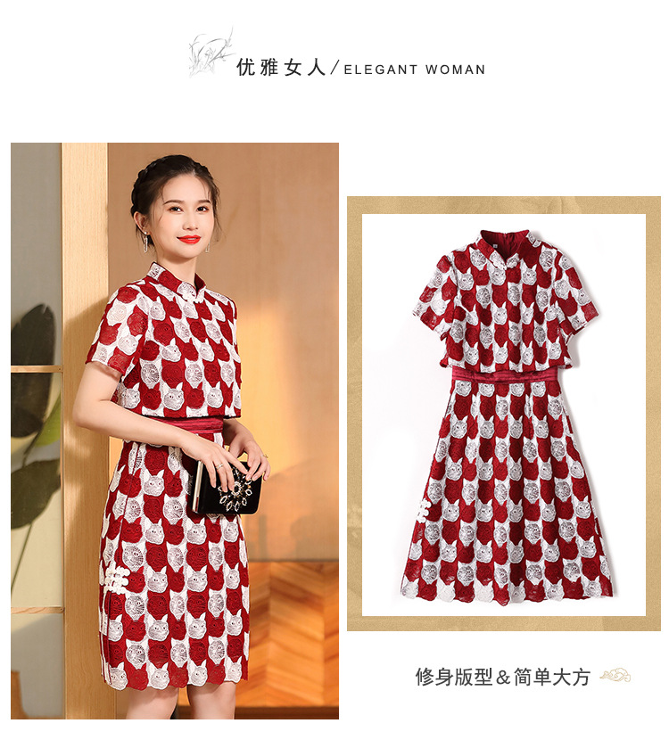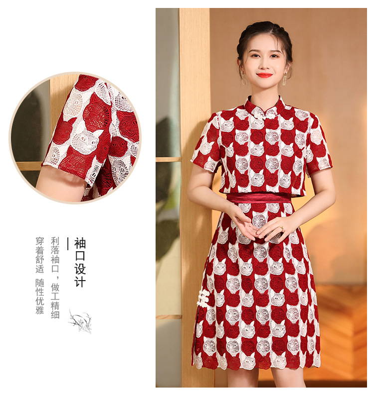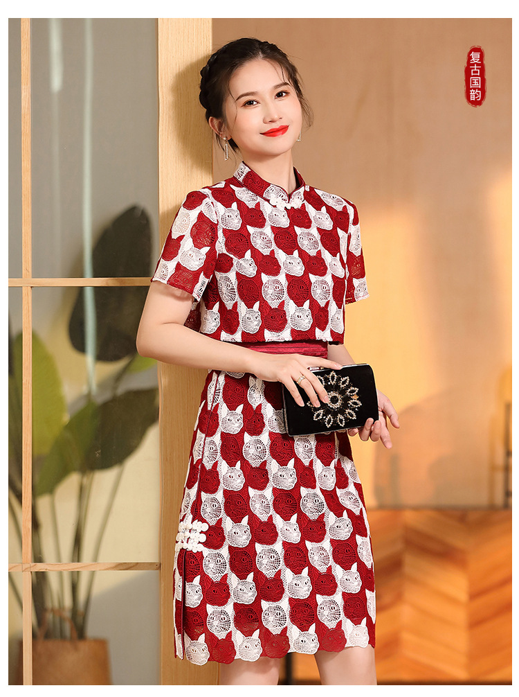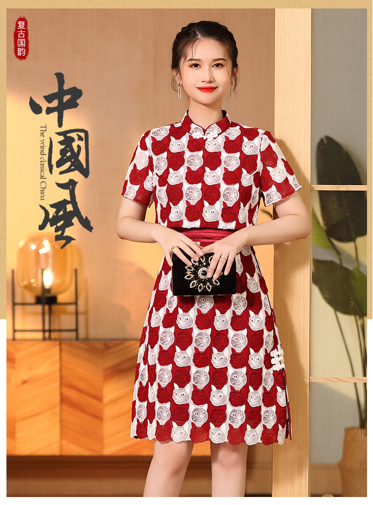 AYK-QF-220331鸿运喵针织拼接立领a字改良旗袍连衣裙夏季时尚精品短袖国风女装