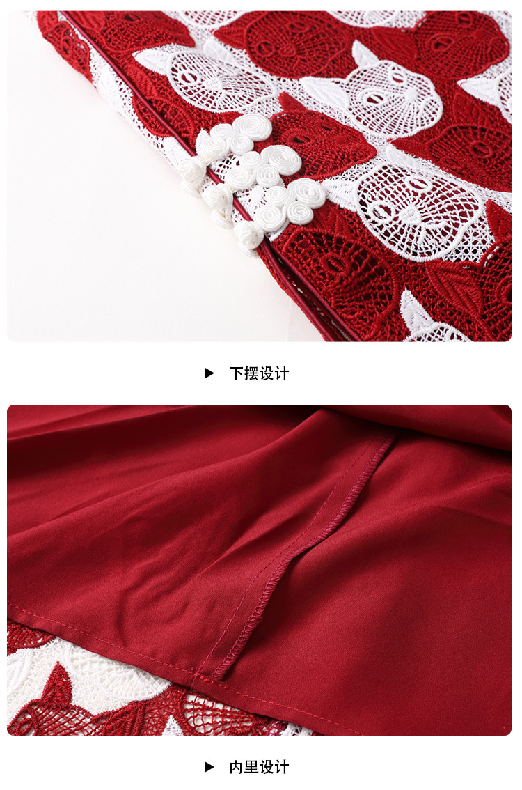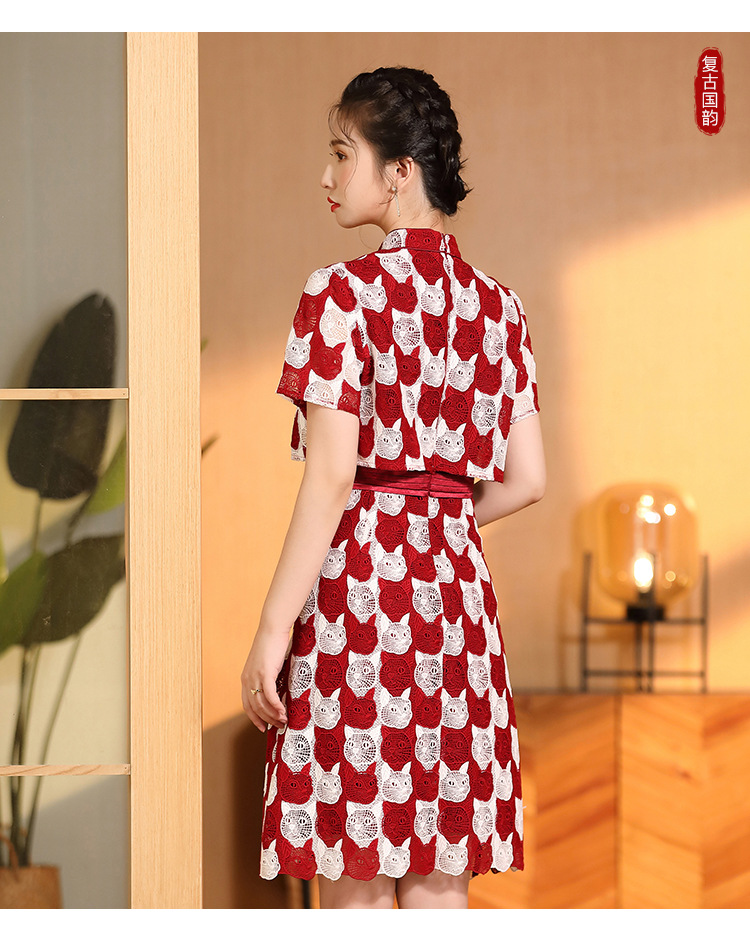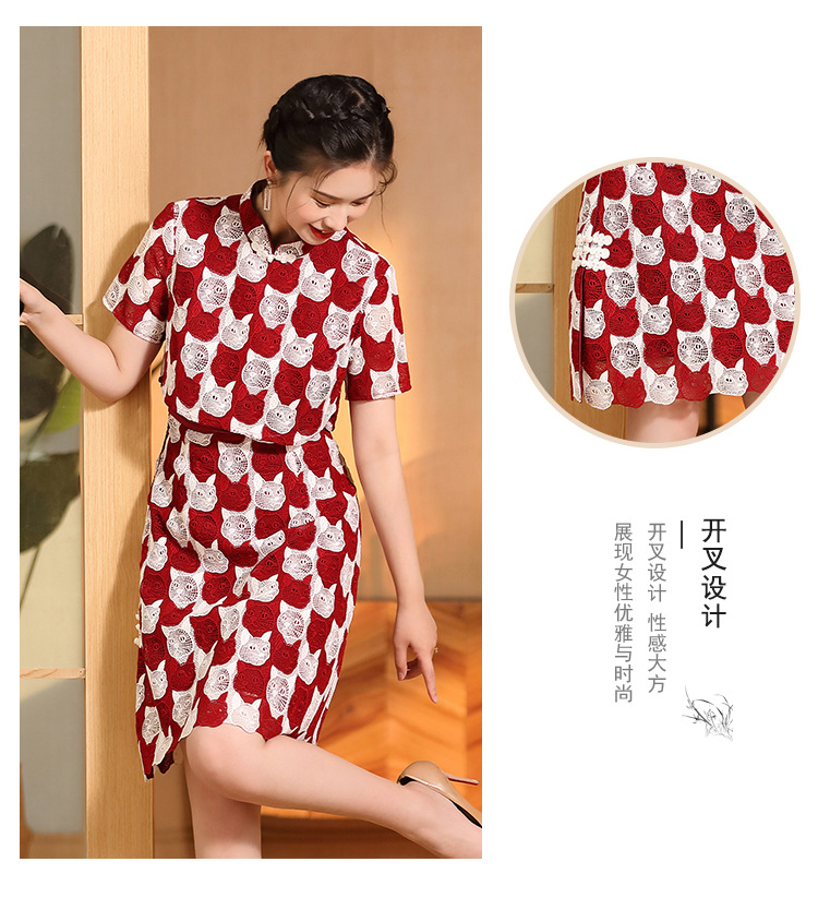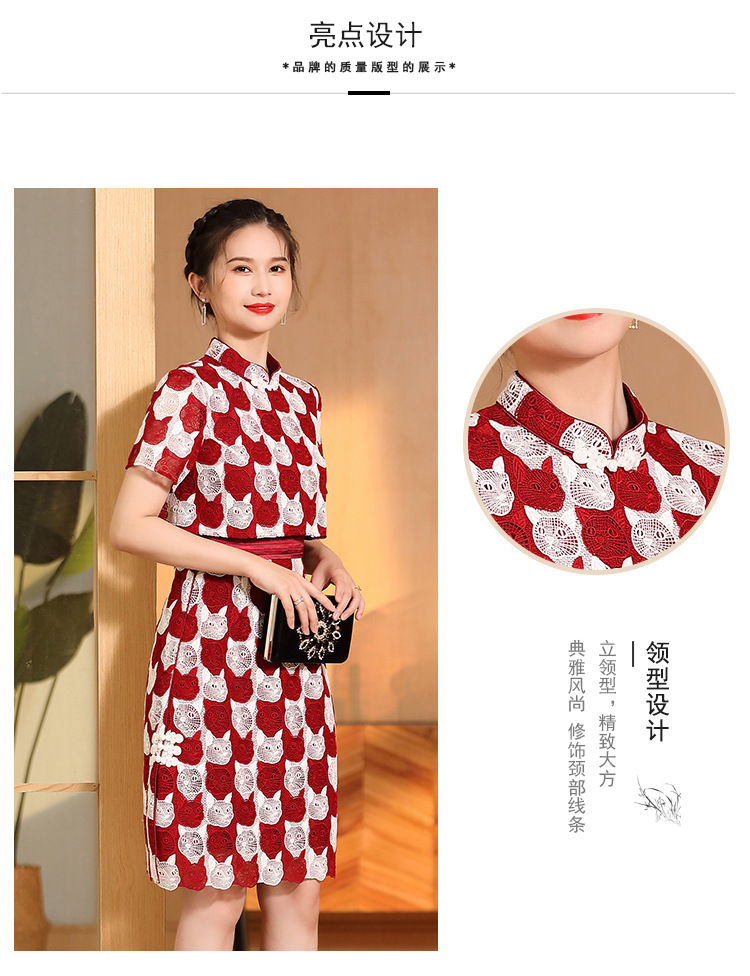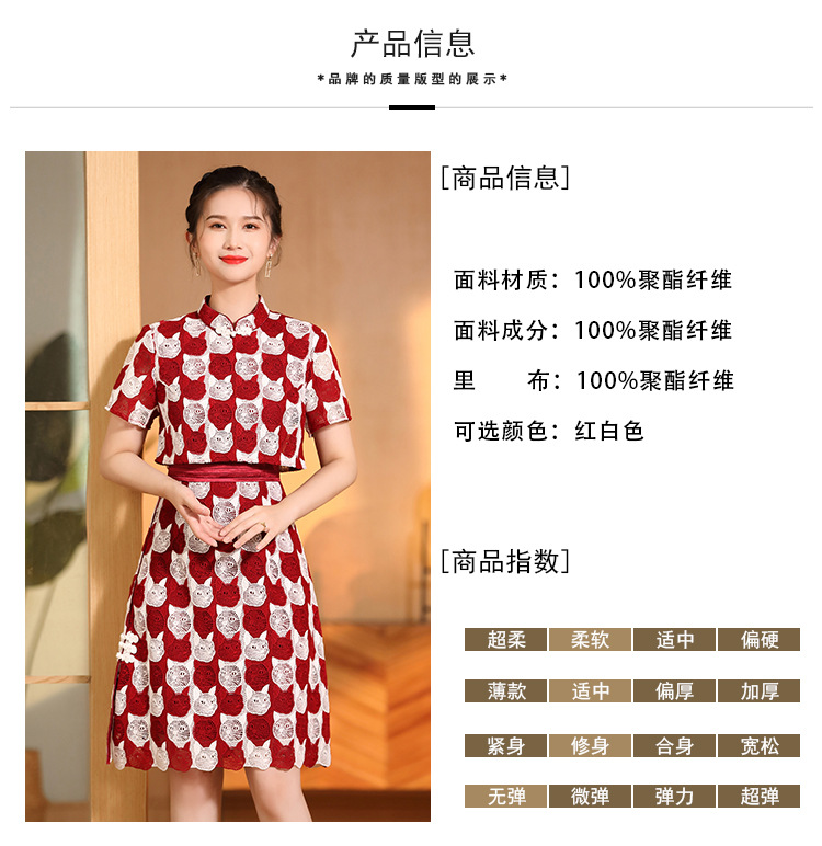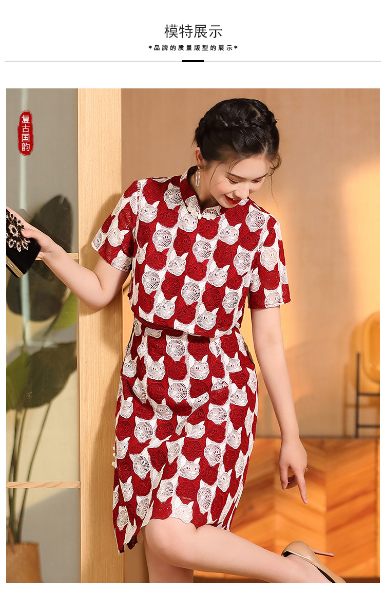 AYK-QF-220331鸿运喵针织拼接立领a字改良旗袍连衣裙夏季时尚精品短袖国风女装