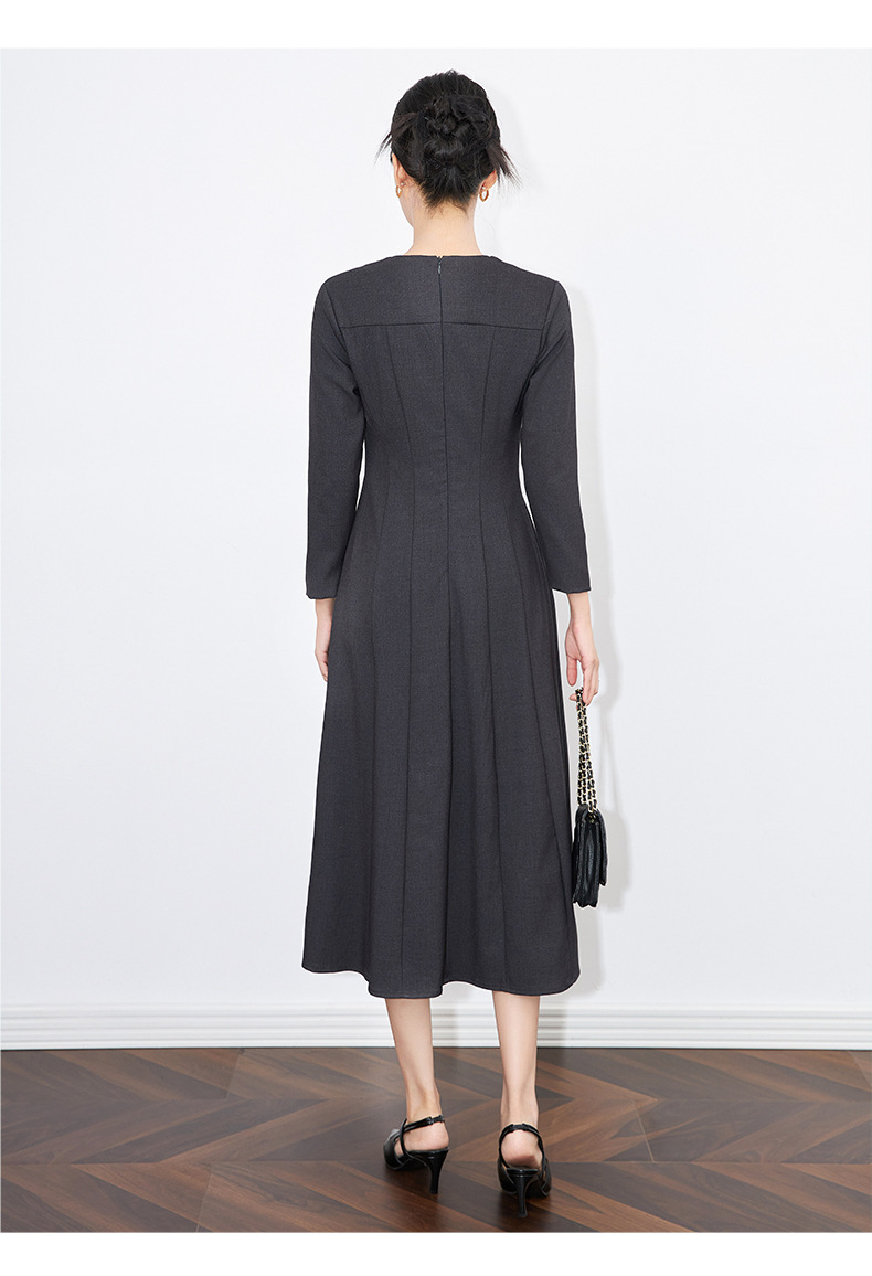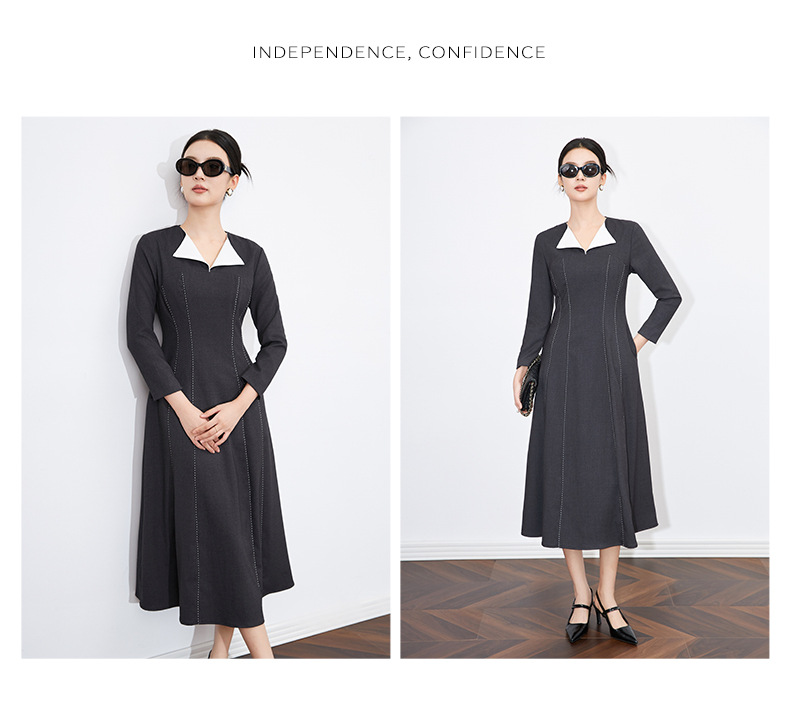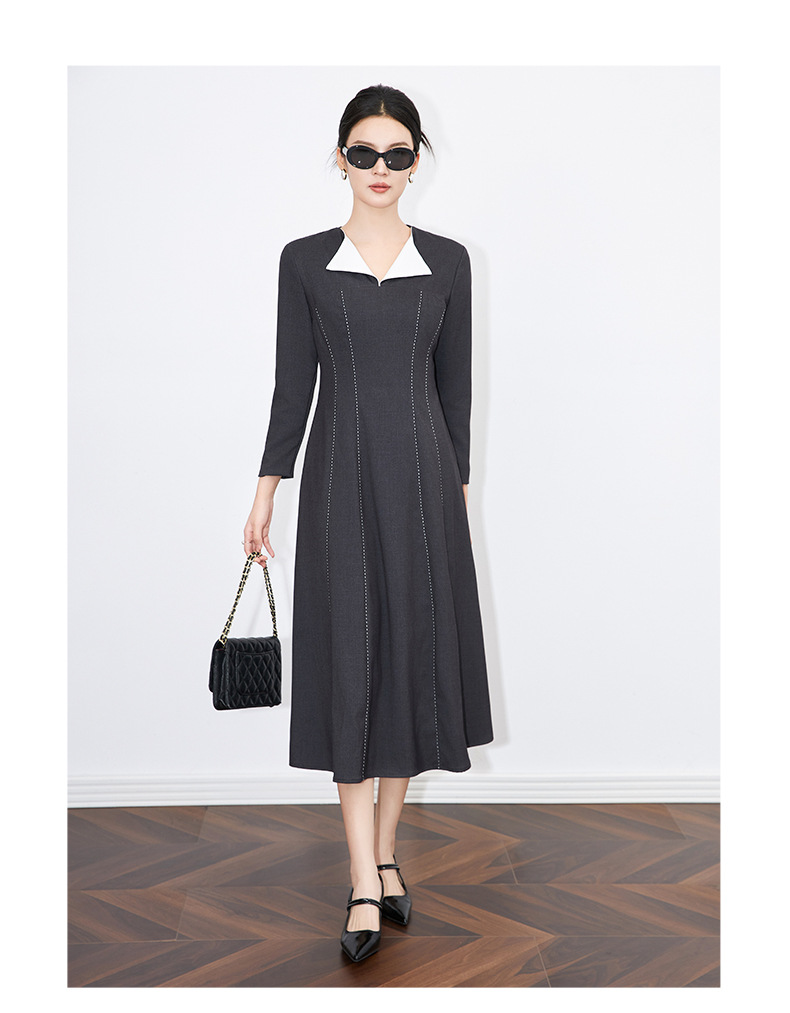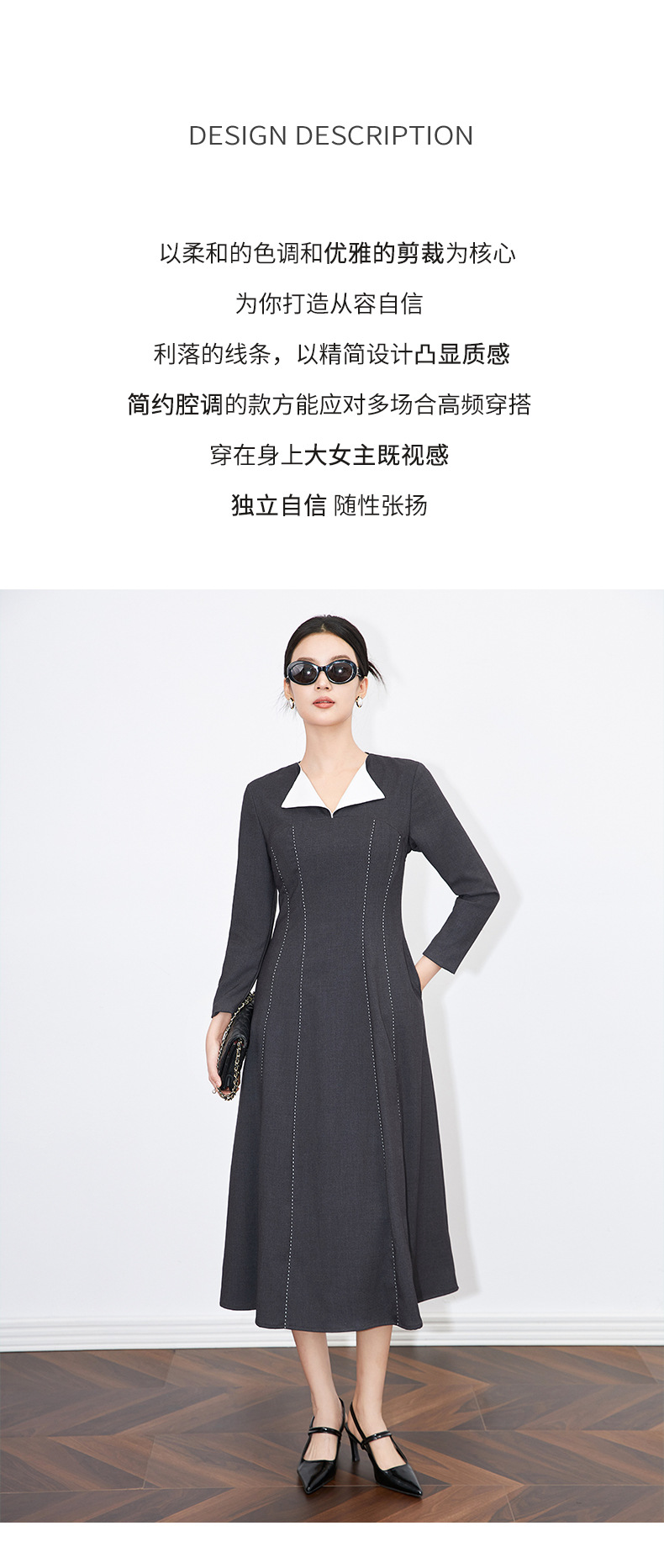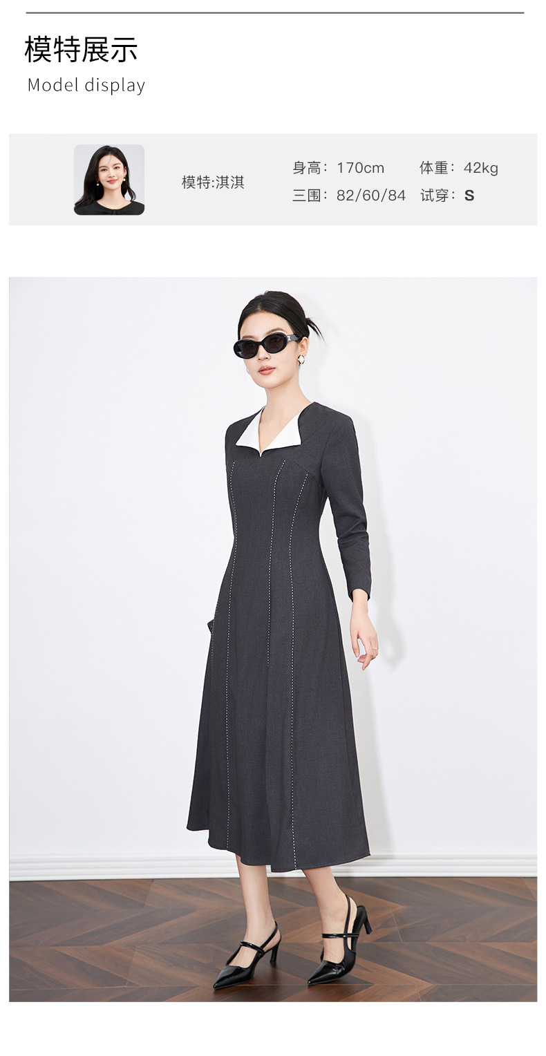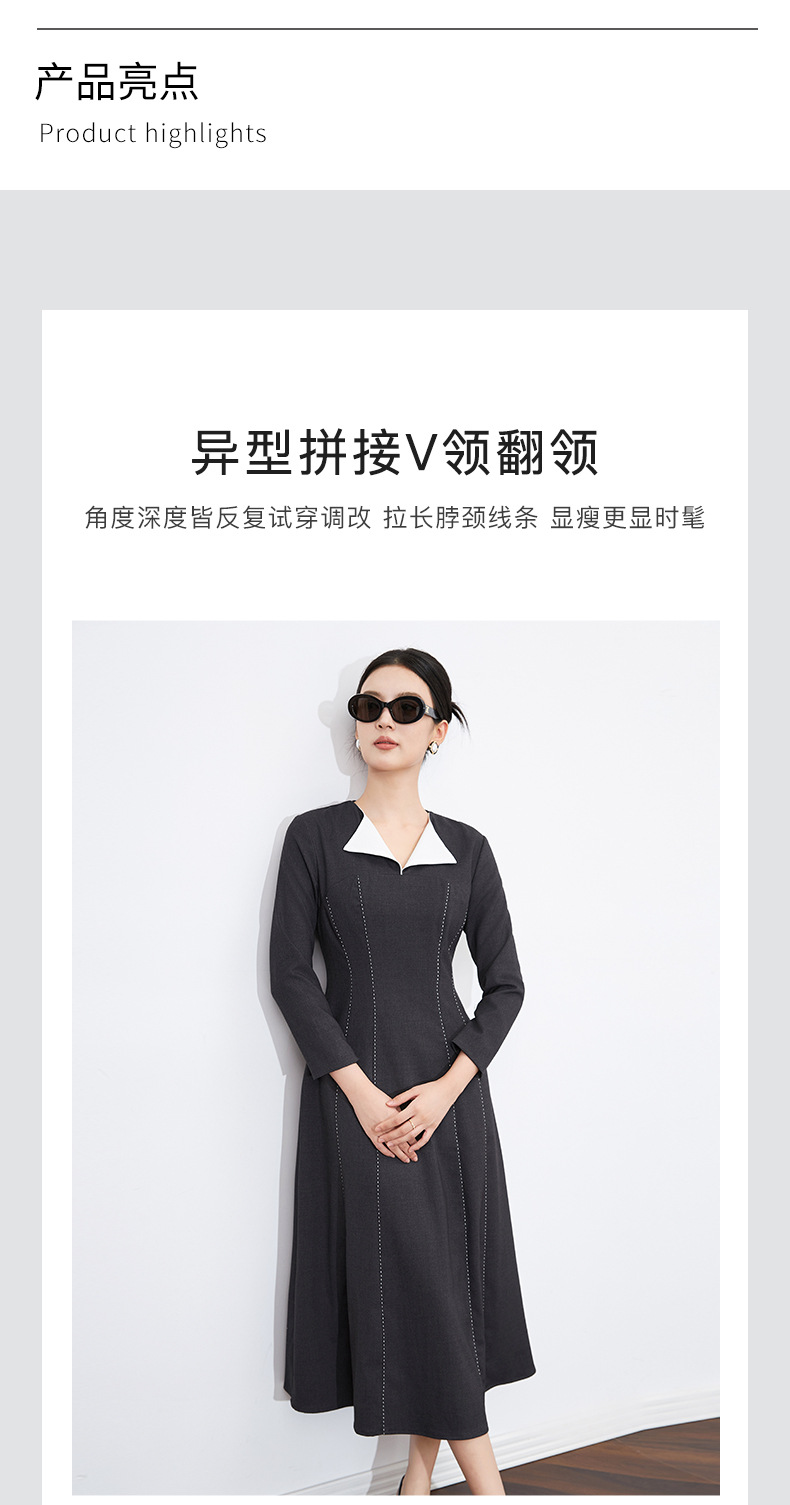 【高货wl】全新升级【铂金会员358/天猫479/差价121】(05421) 洛诗琳小众镂空线法式优雅名媛翻领大摆裙设计感连衣裙