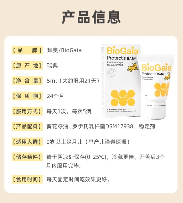 拜奥/Biogaia益生菌滴剂5毫升易滴版罗伊氏乳杆菌宝宝菌