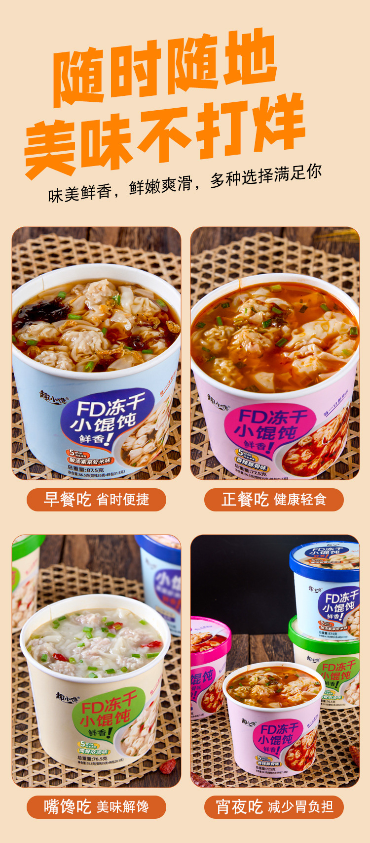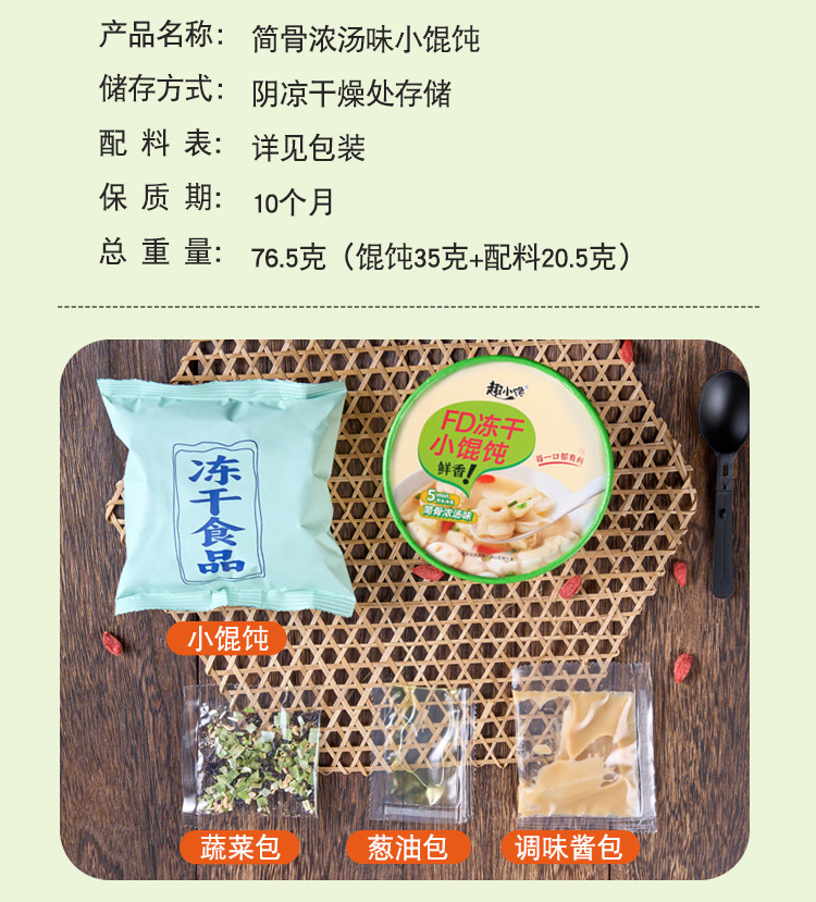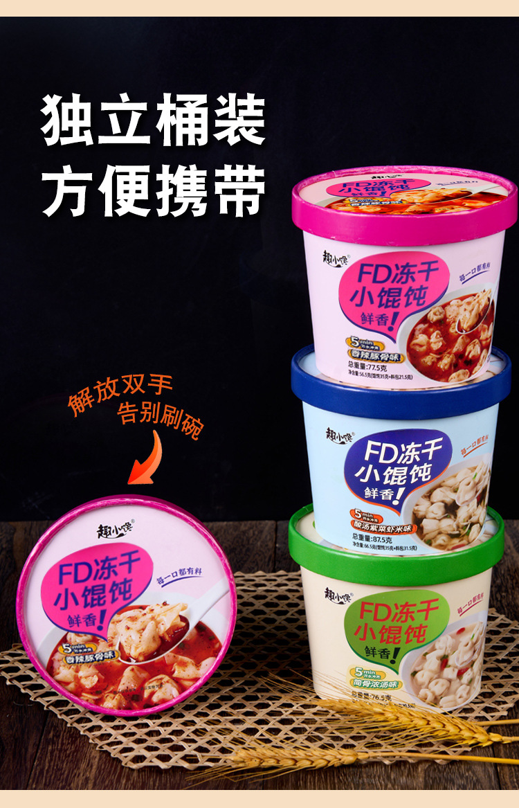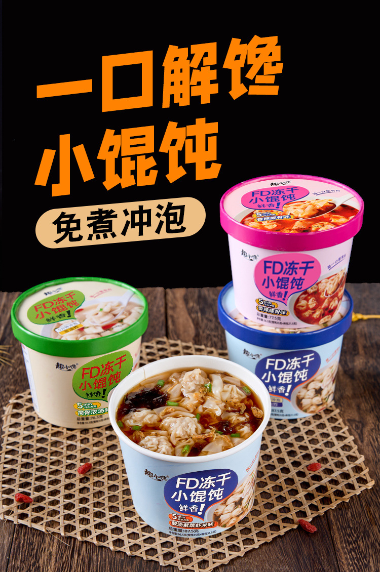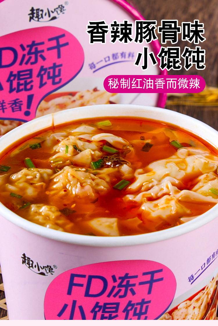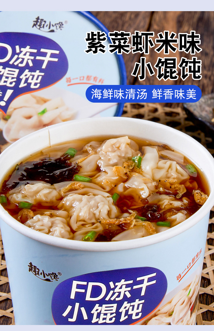 【一口解馋小馄饨,免煮冲泡~】冻干小馄饨方便速食 云吞混沌免煮冲泡桶装 整箱宿舍早晚餐夜宵-QQ