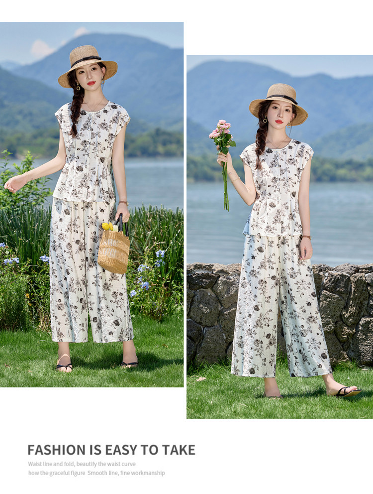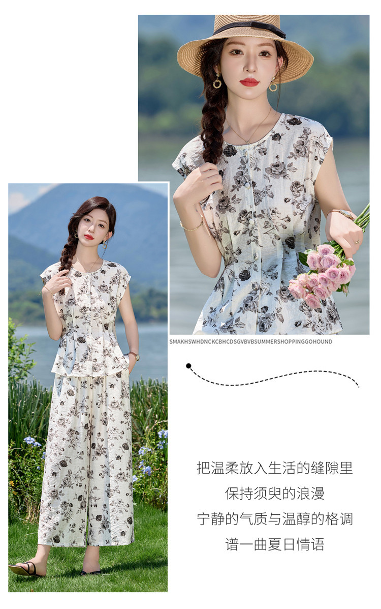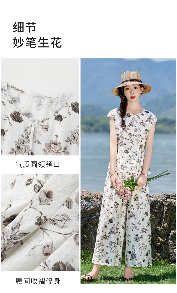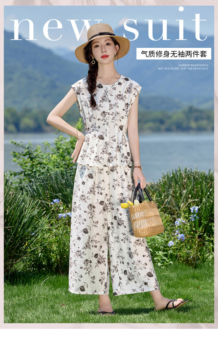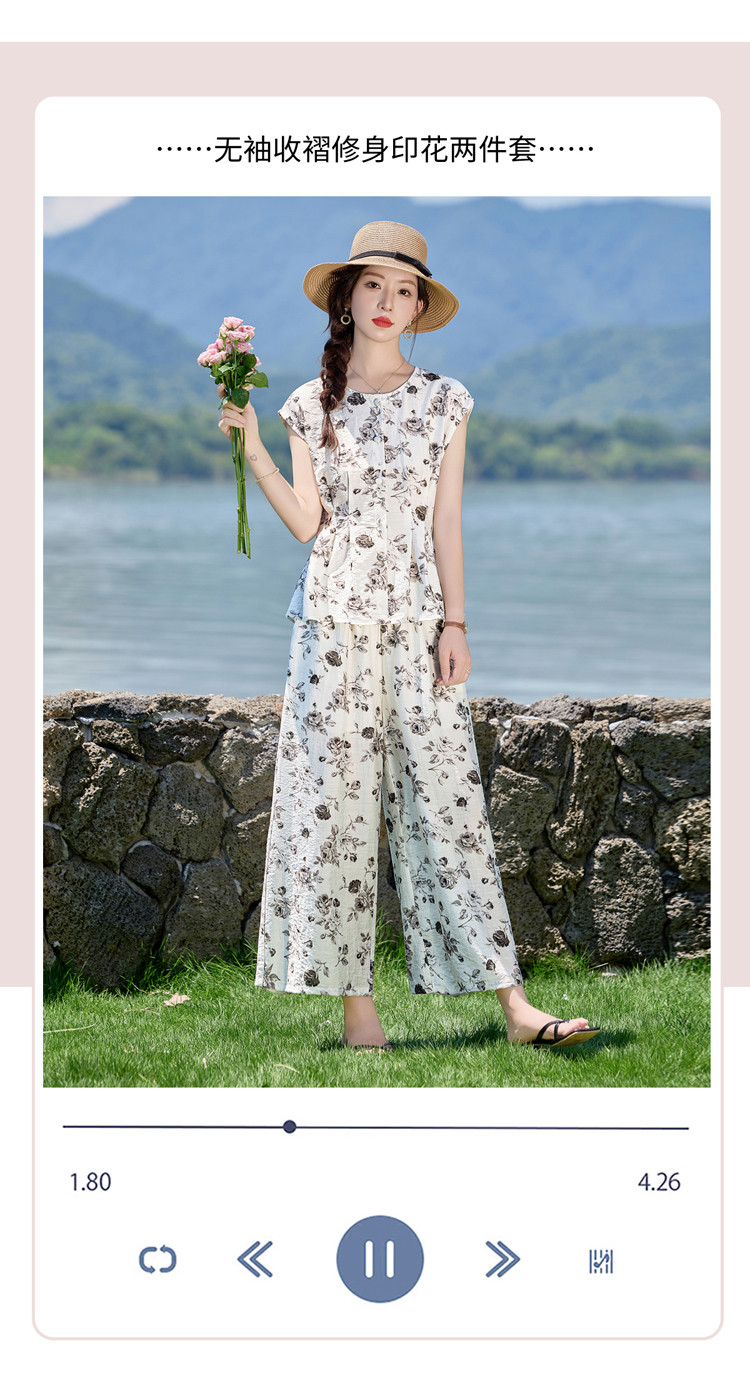 【预售3天】时尚气质印花收褶修身两件套LDB2865