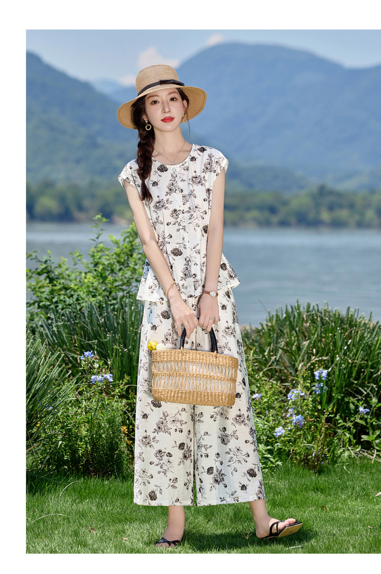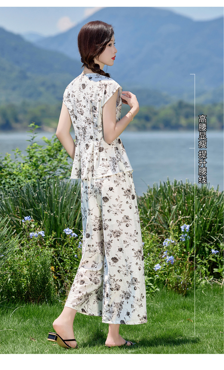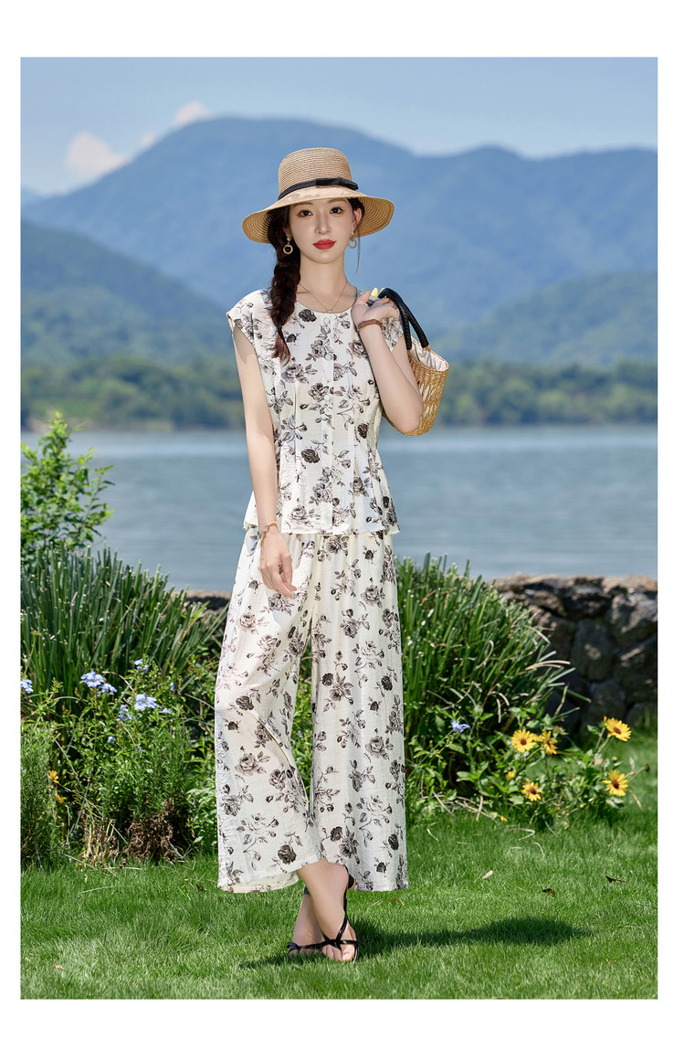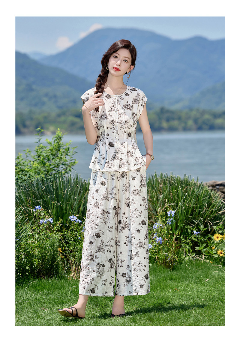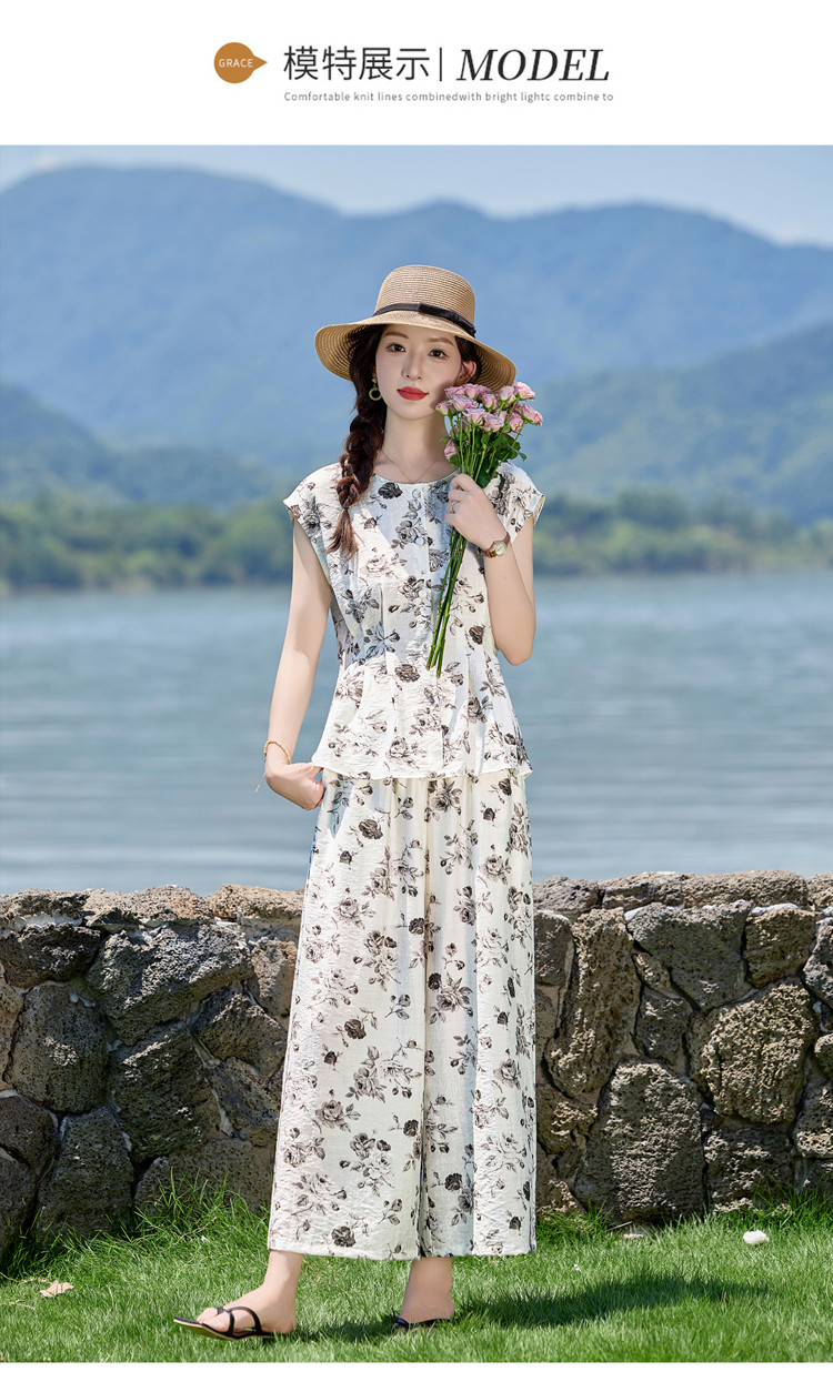 【预售3天】时尚气质印花收褶修身两件套LDB2865