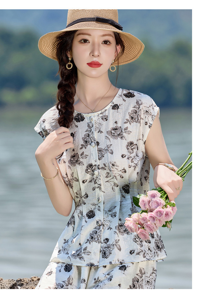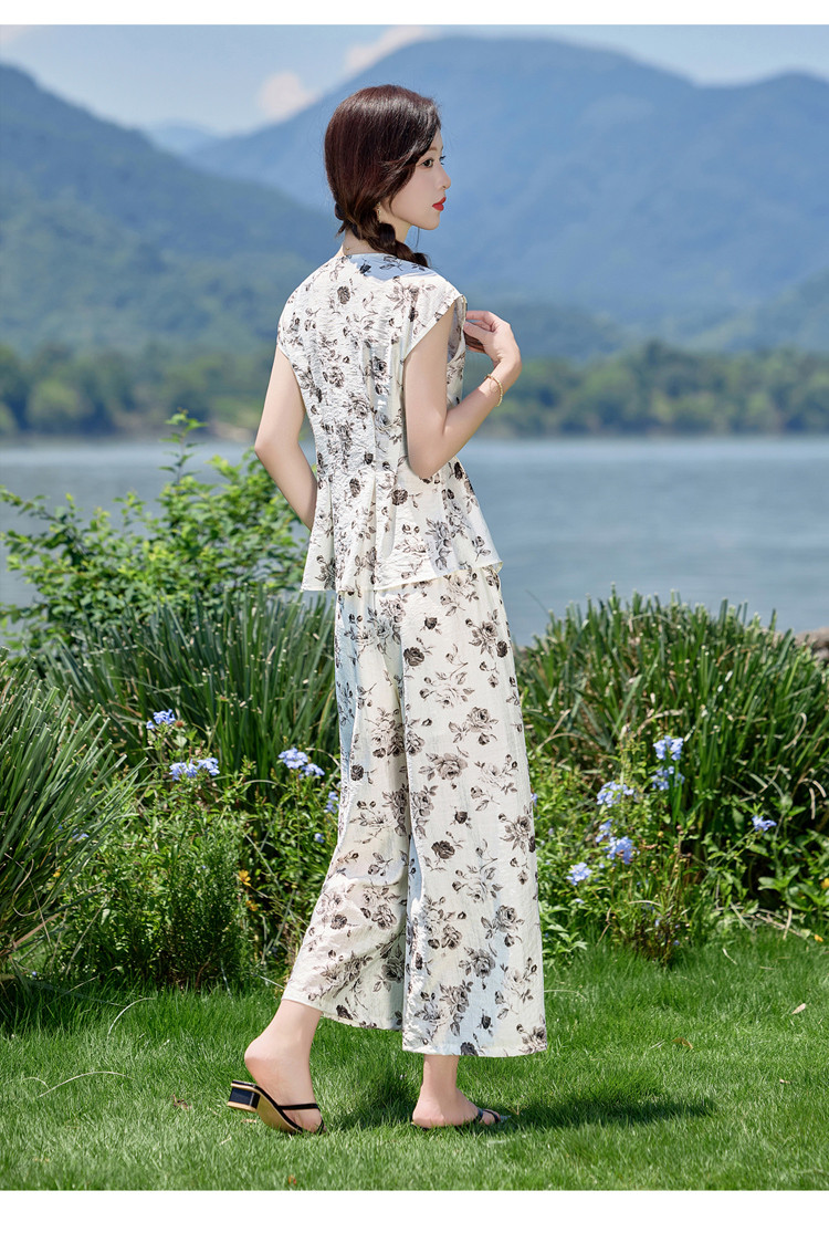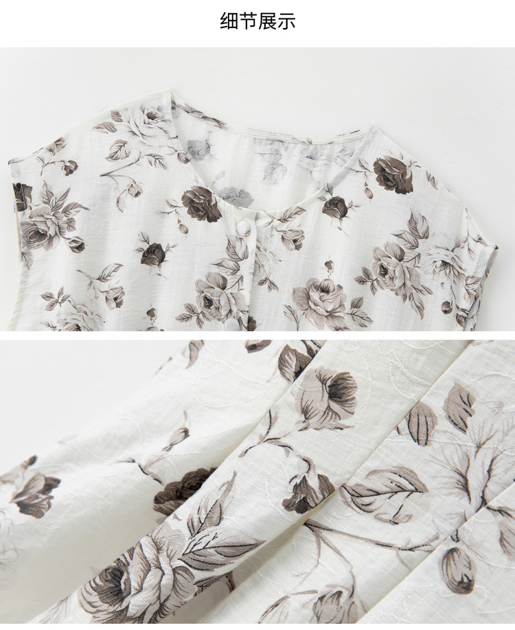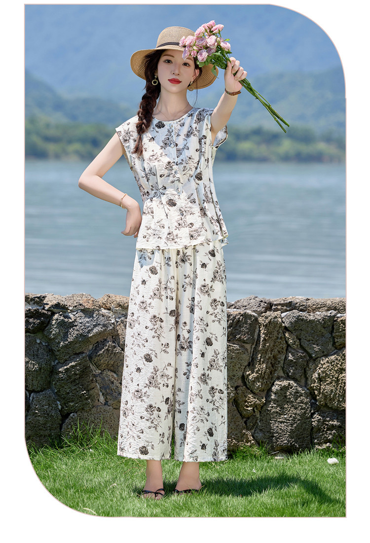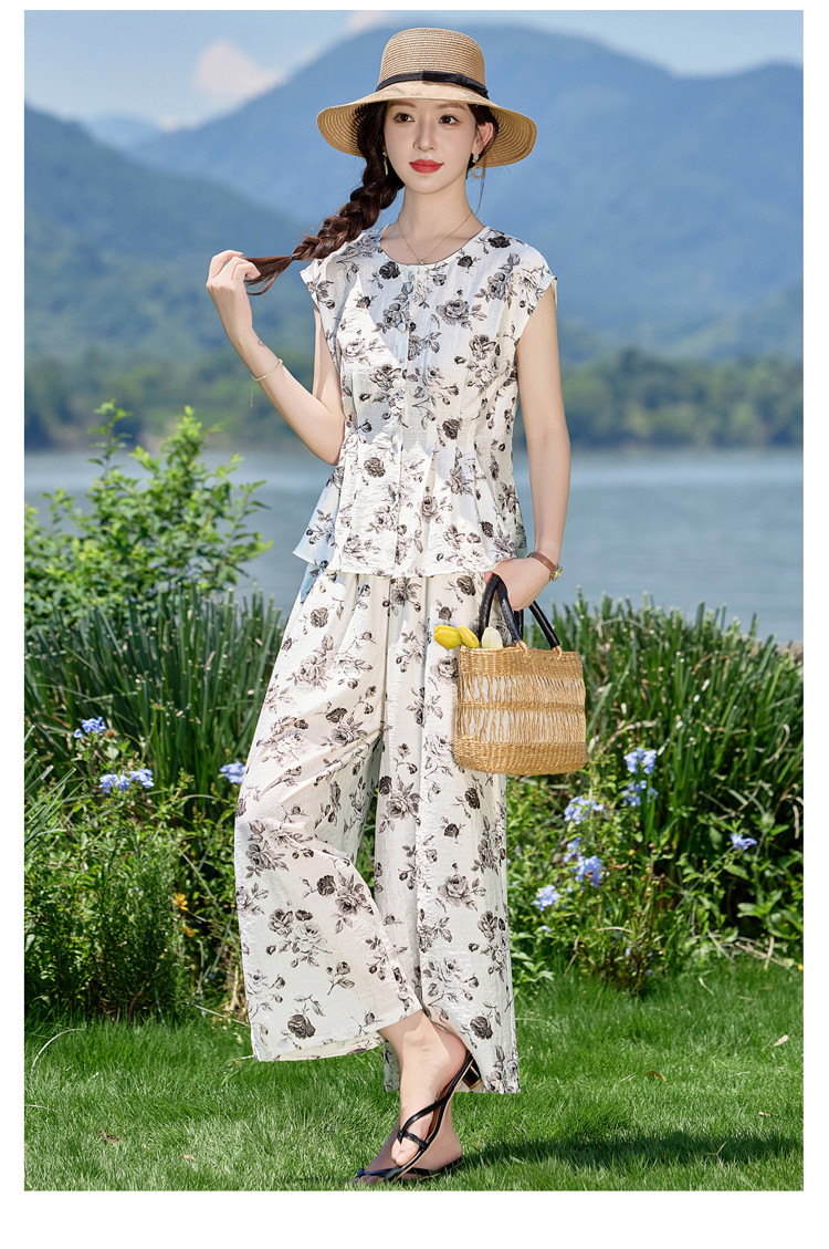 【预售3天】时尚气质印花收褶修身两件套LDB2865