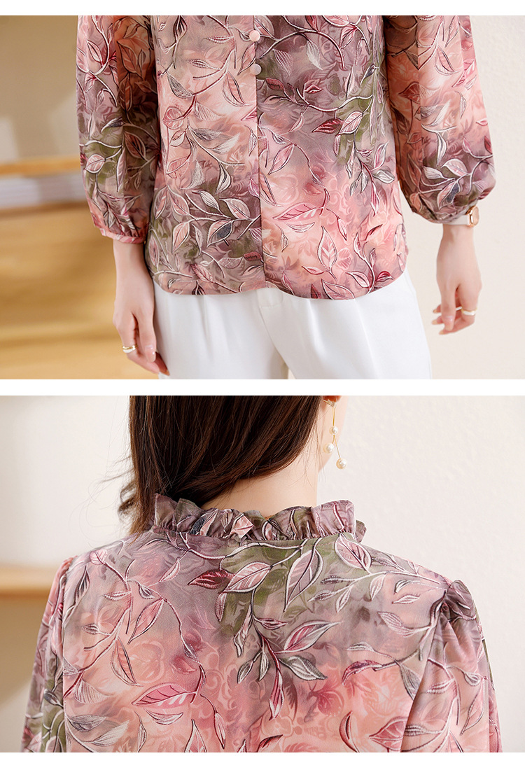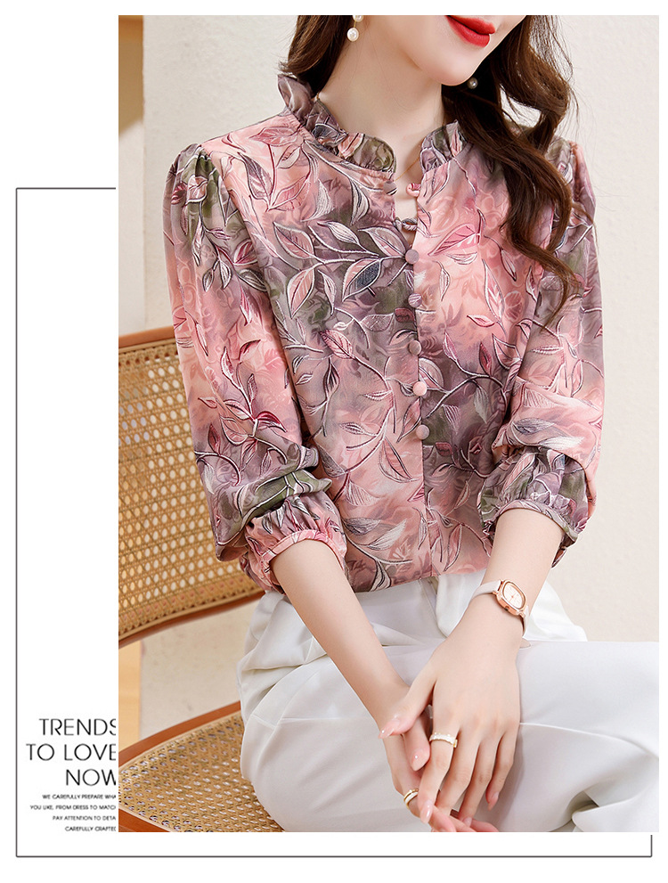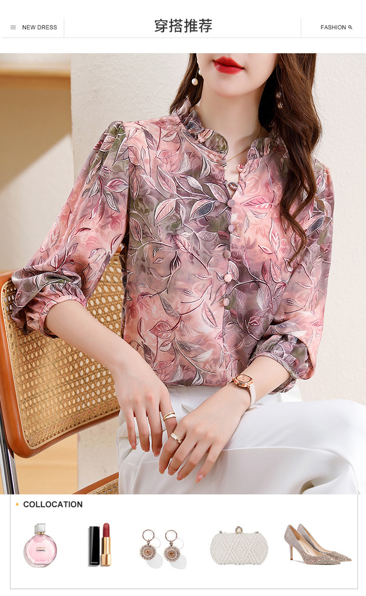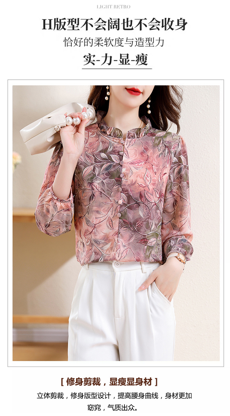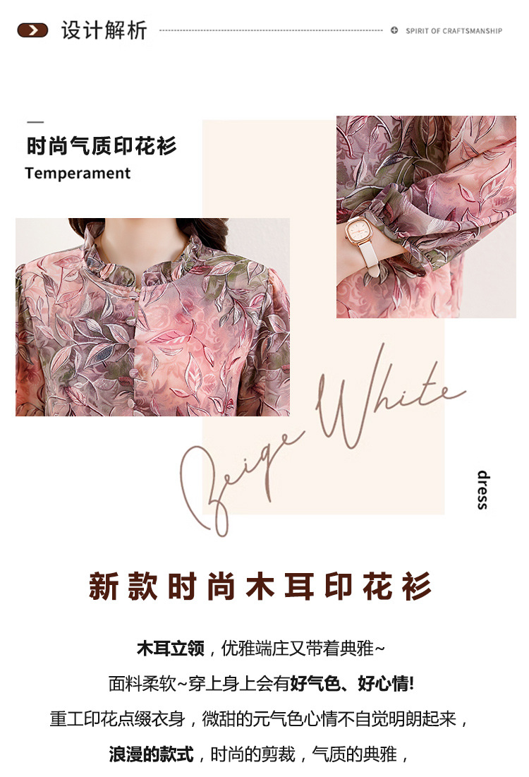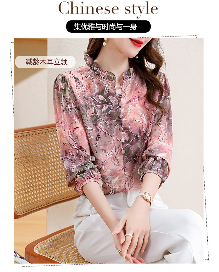 新中式国风印花木耳领衬衫时髦上衣KQL-E324N9068