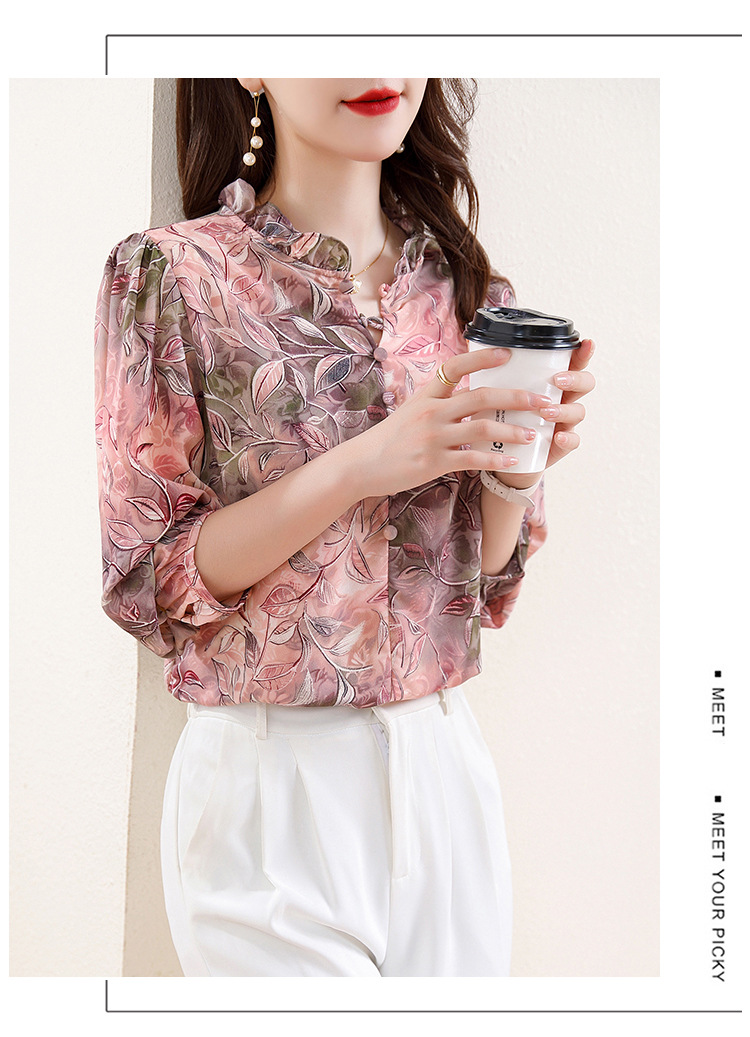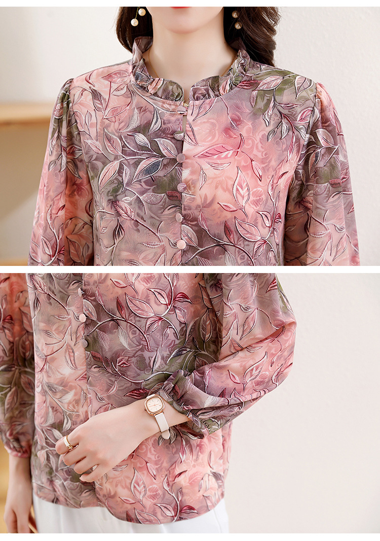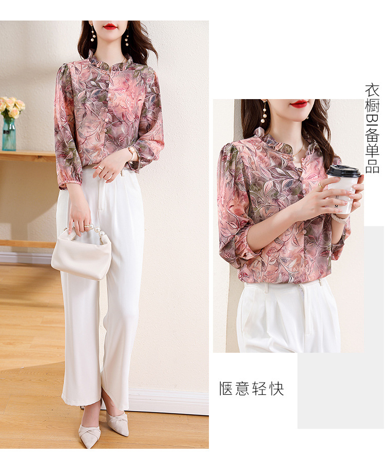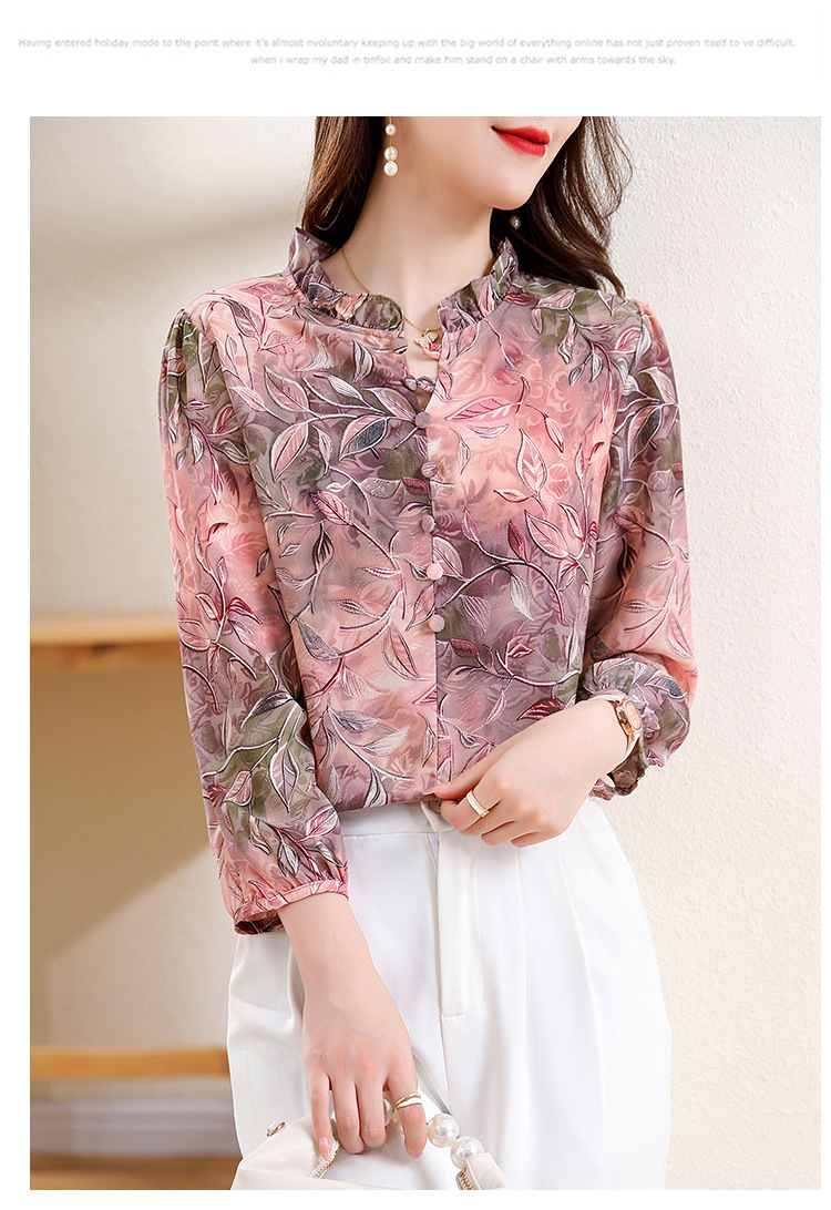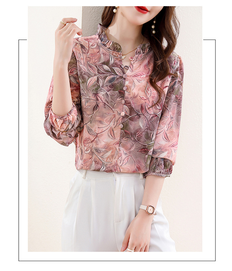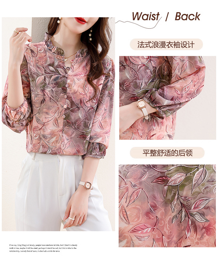 新中式国风印花木耳领衬衫时髦上衣KQL-E324N9068
