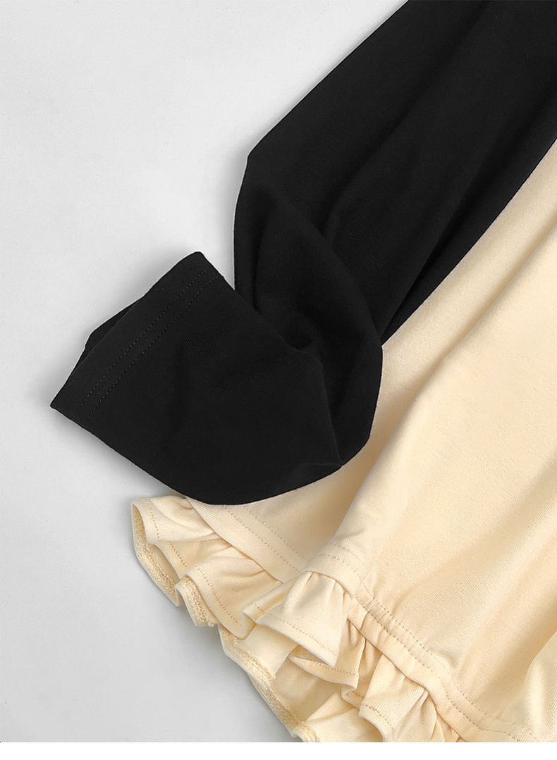 专柜实拍【减龄灵动tee恤】拉夏贝尔/La Chapelle撞色插肩袖荷叶边T恤柔软舒适长袖打底上衣