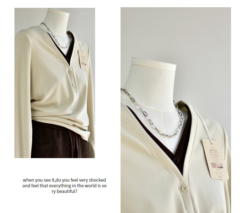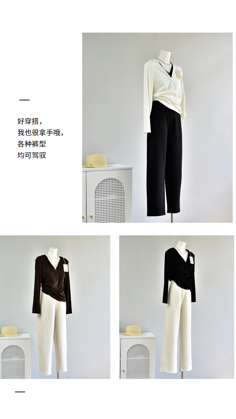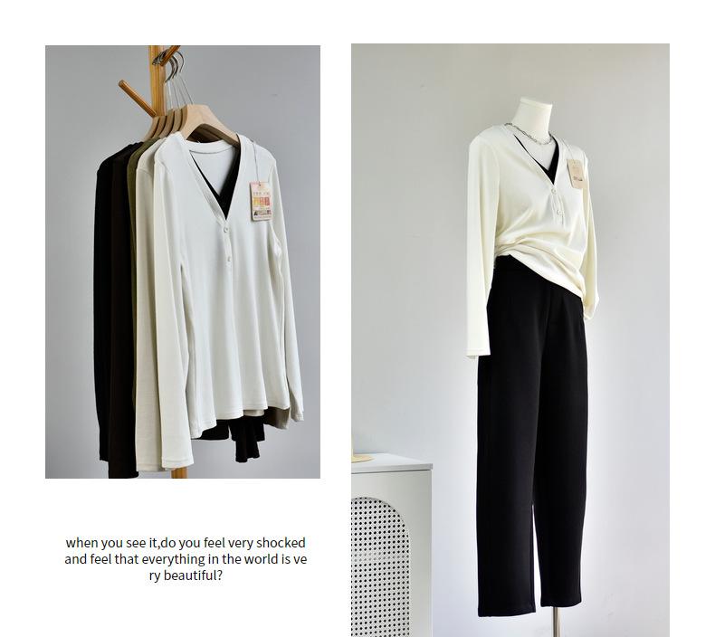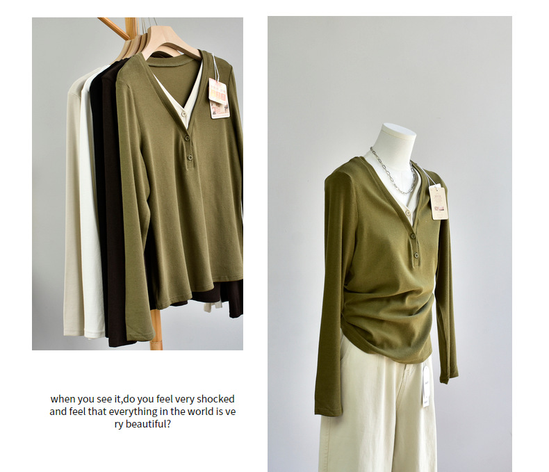 丁摩 【撞色天鹅衫】新款美雅碧棉v领假两件撞色针织开衫打底衫上4ZF-120902