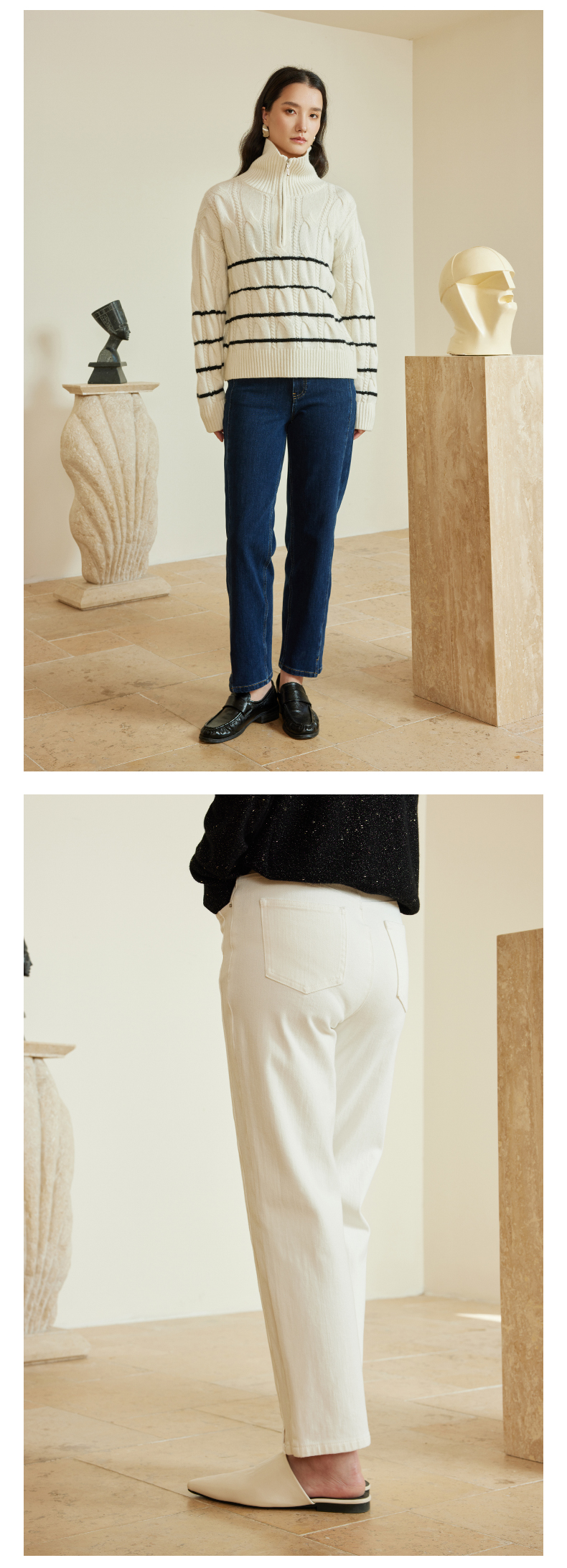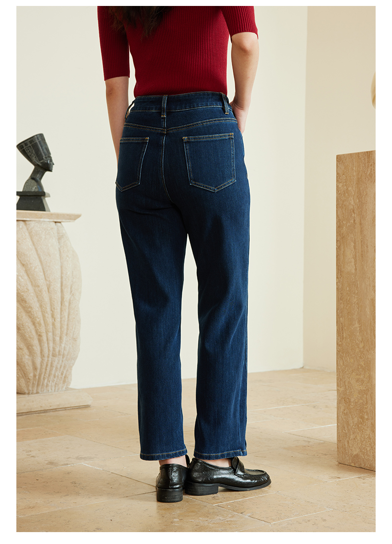 54486 IN AND ON 自由定理 脚口开衩直筒显瘦弹力牛仔裤