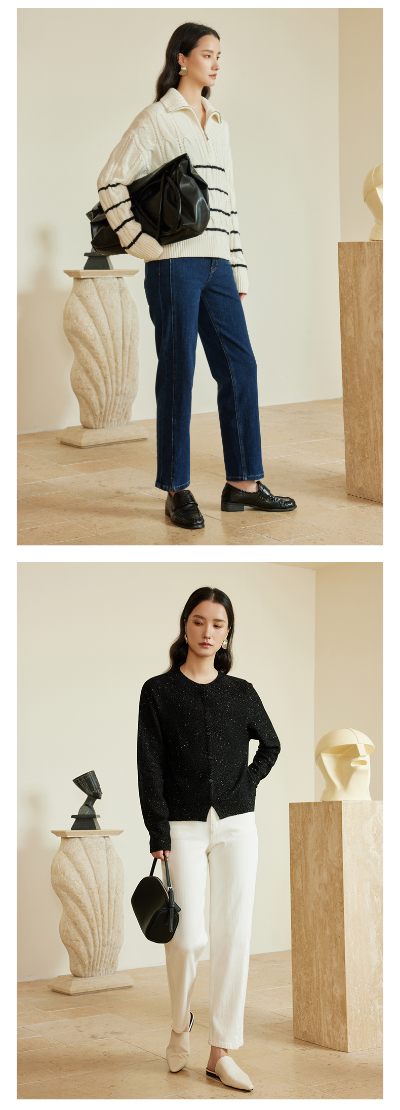 IN AND ON 针织衫开衫女春秋新款百搭显白百搭西装领针织上衣