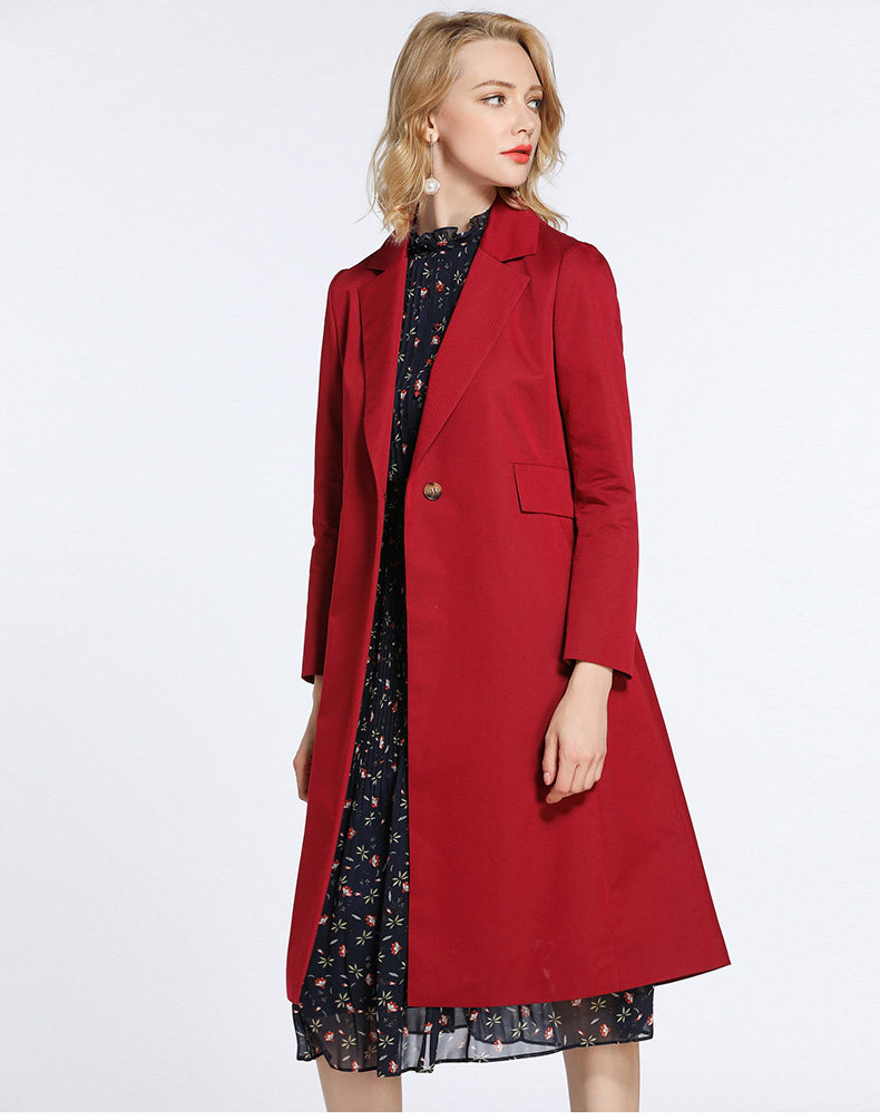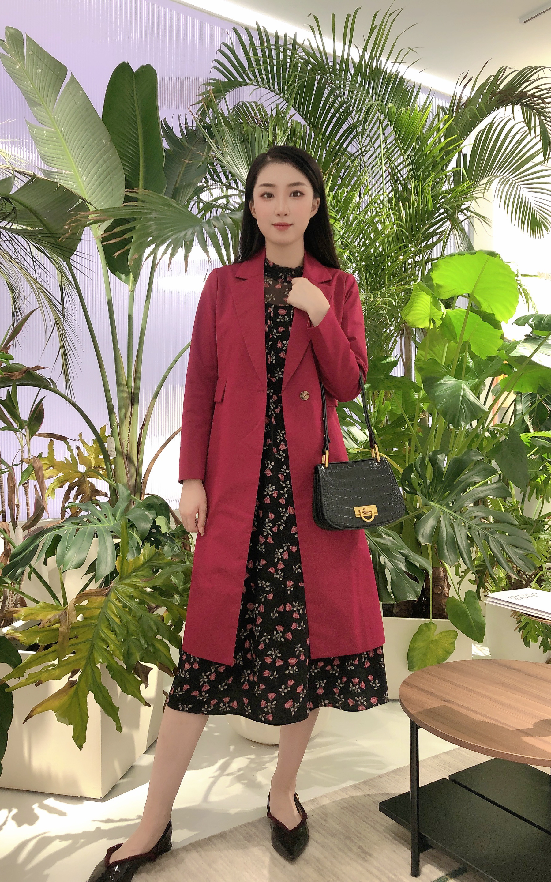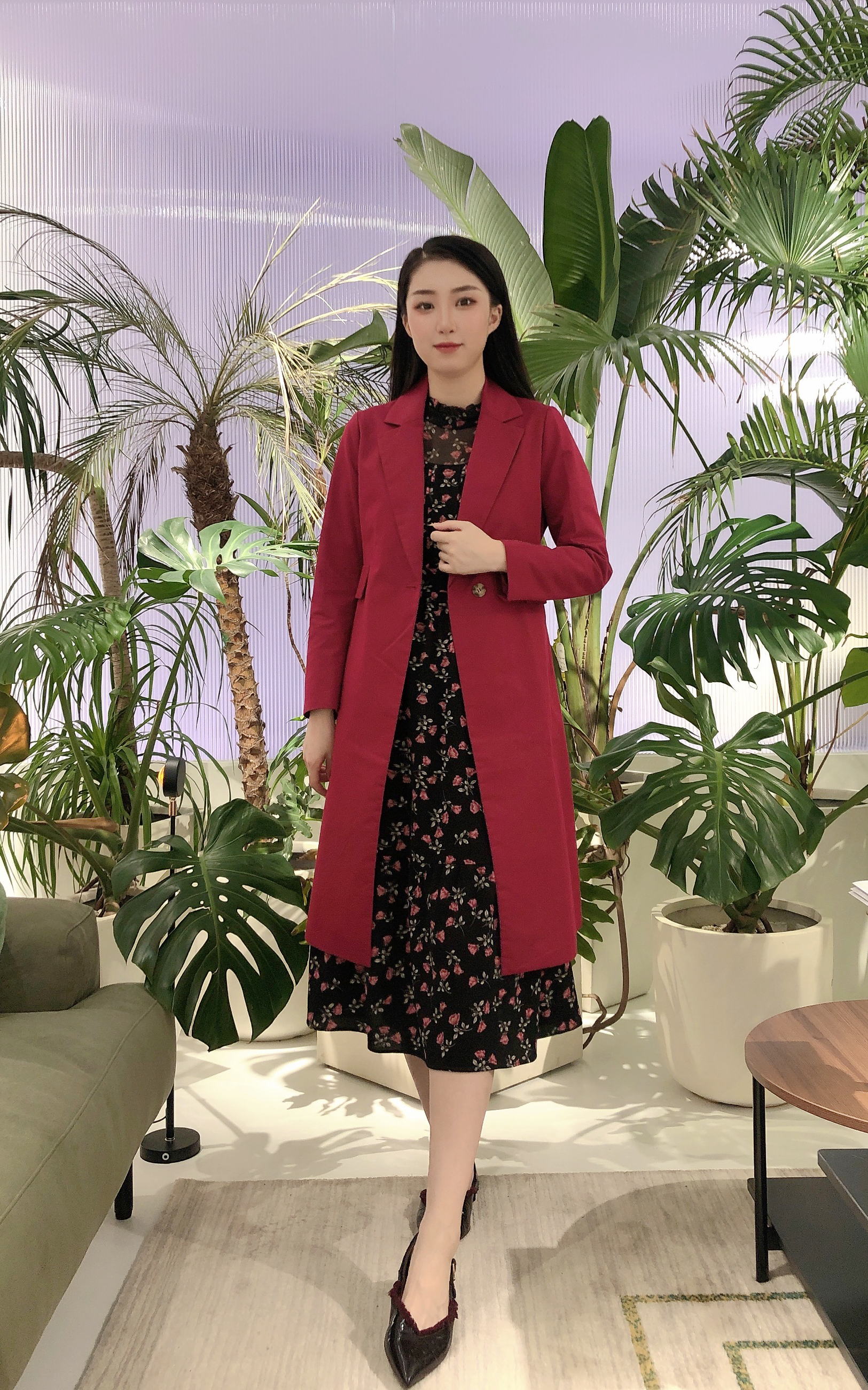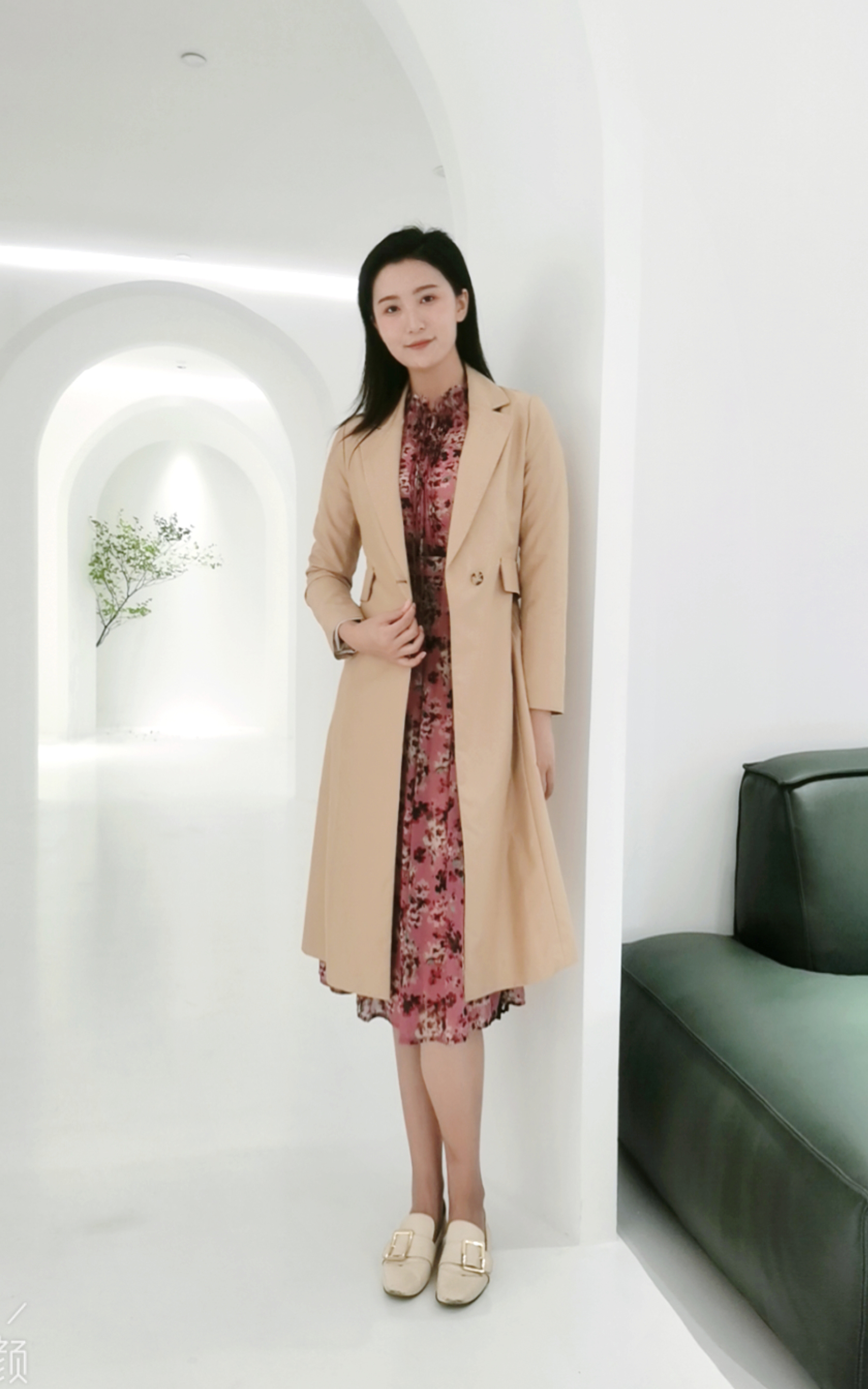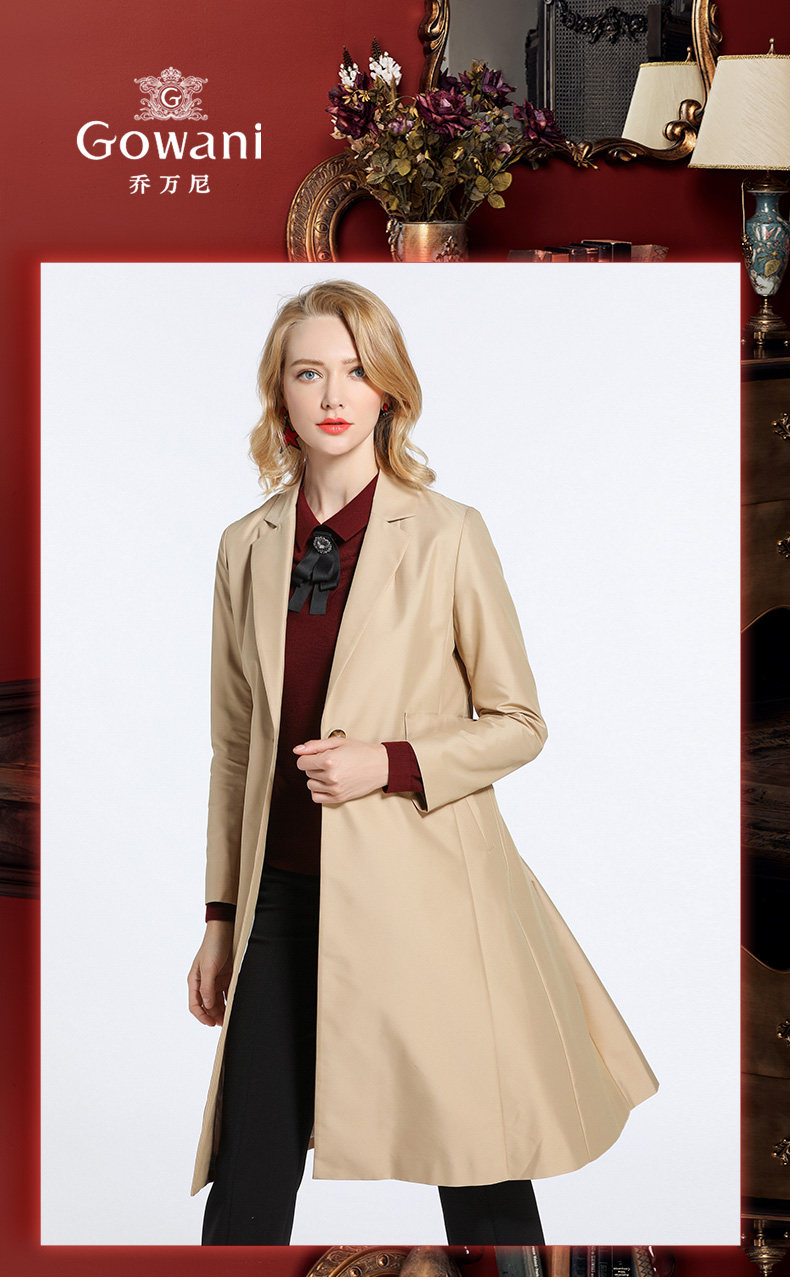 【两色可选】乔万尼外套女春季 新款通勤干练西装领修身高腰风衣女中长款厚EB3A245
