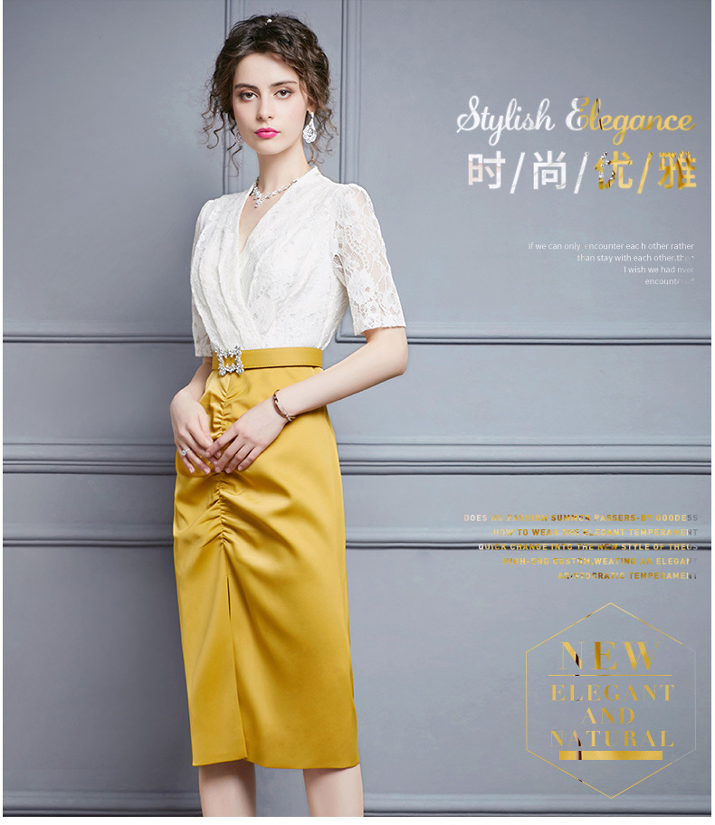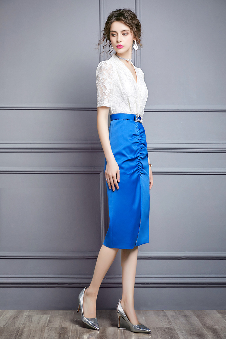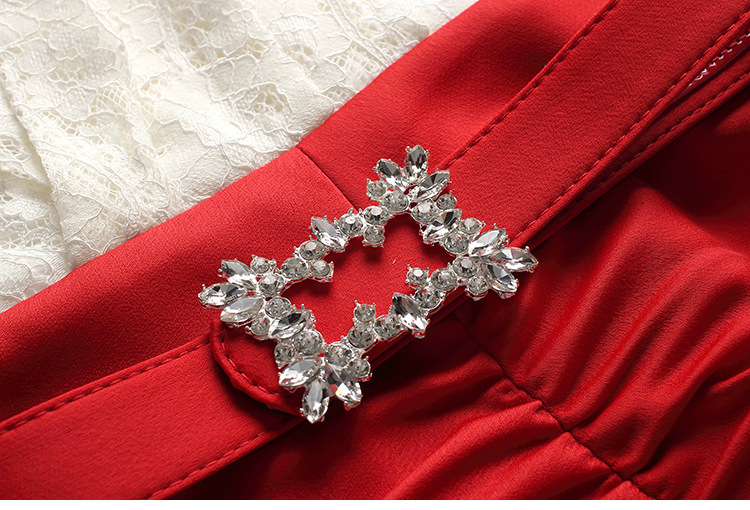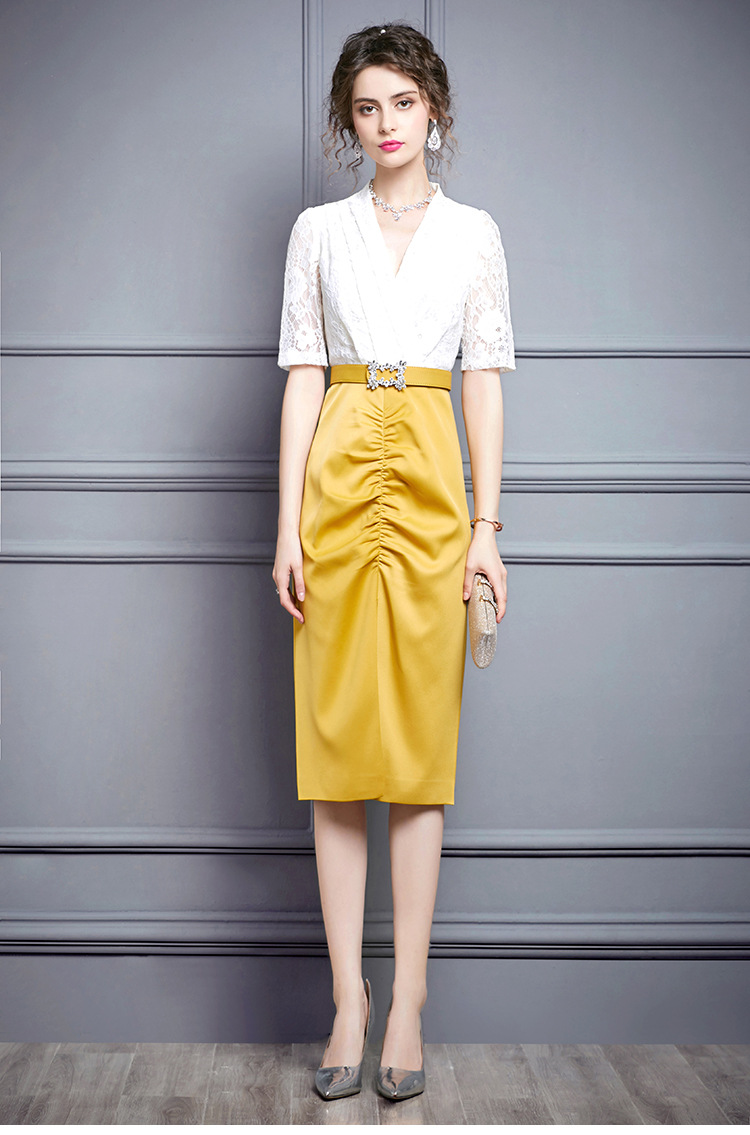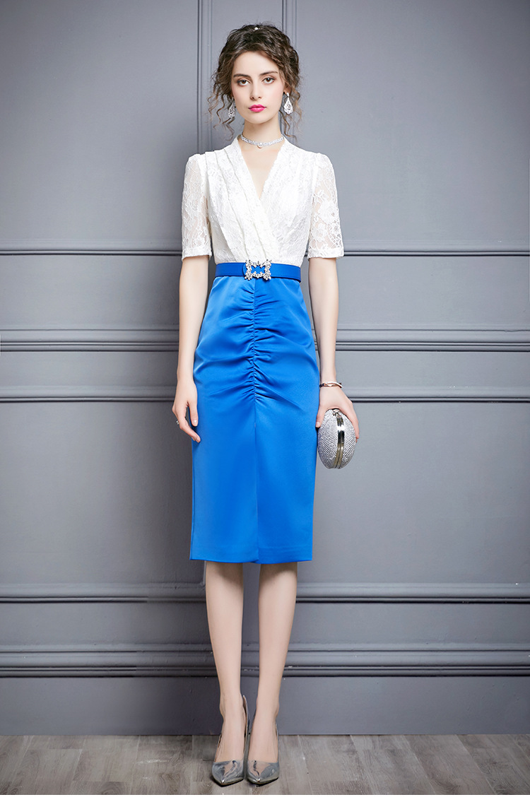 ZL-M1015名媛气质夏装新款蕾丝褶皱收腰显瘦礼服
