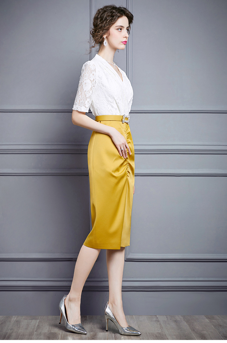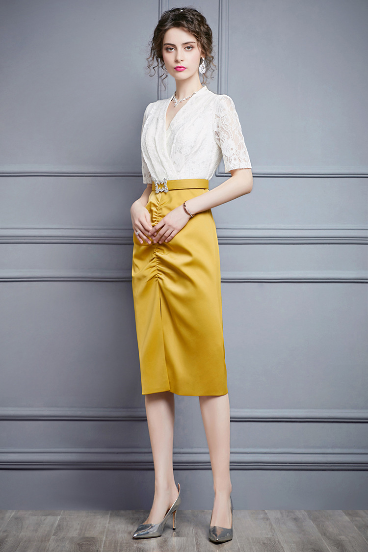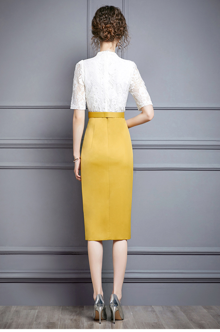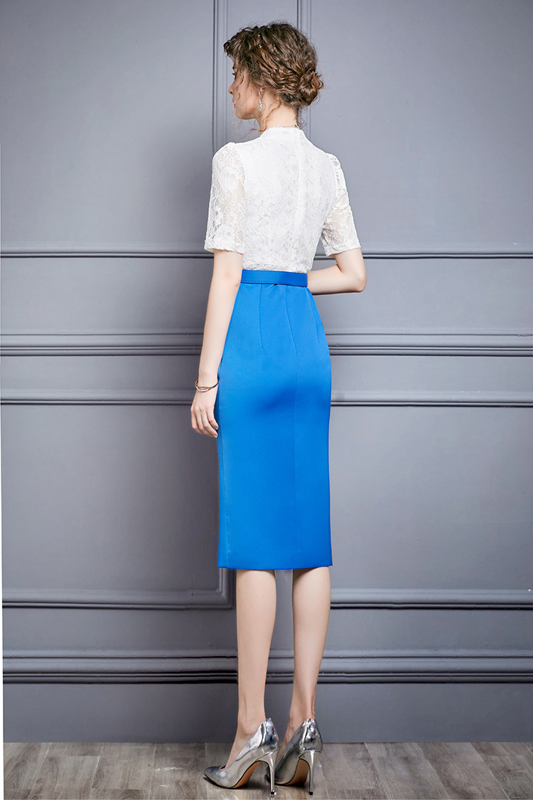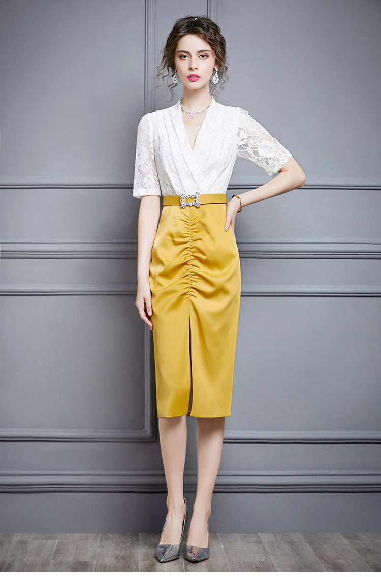 ZL-M1015名媛气质夏装新款蕾丝褶皱收腰显瘦礼服