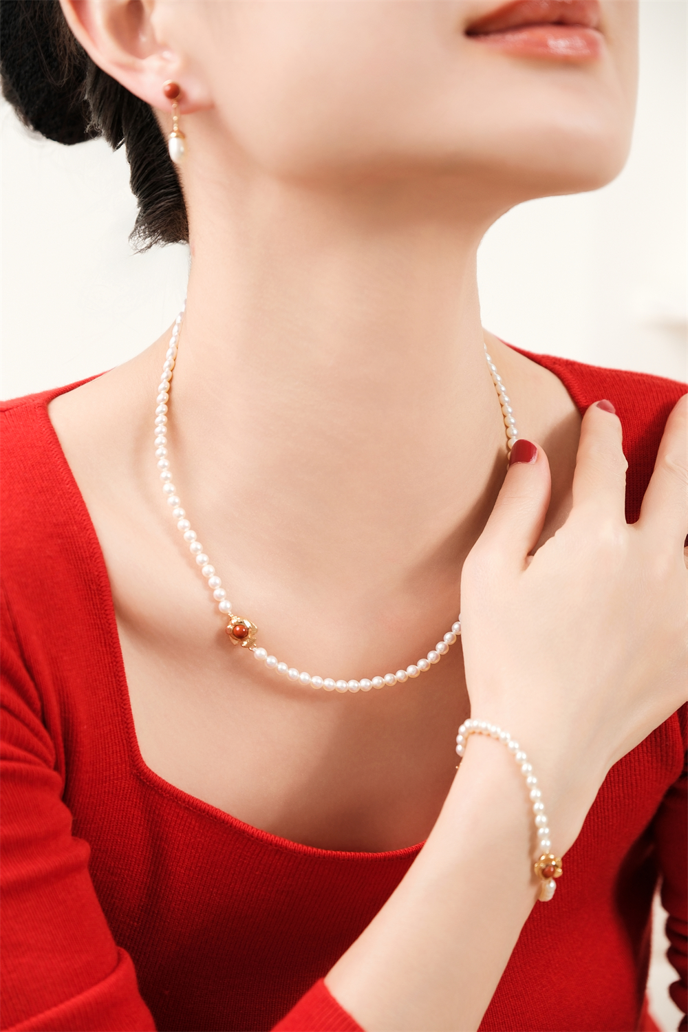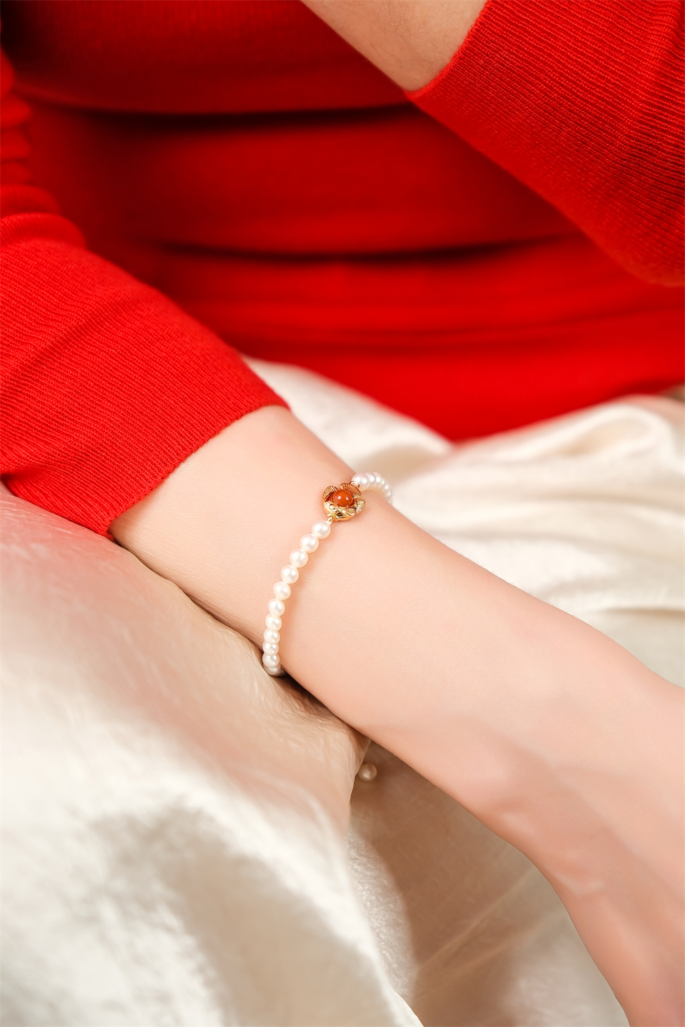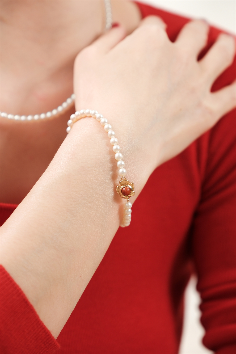 pearl moments珍刻 年年有鱼(南红小鱼) 小鱼儿4号baby珍珠手链