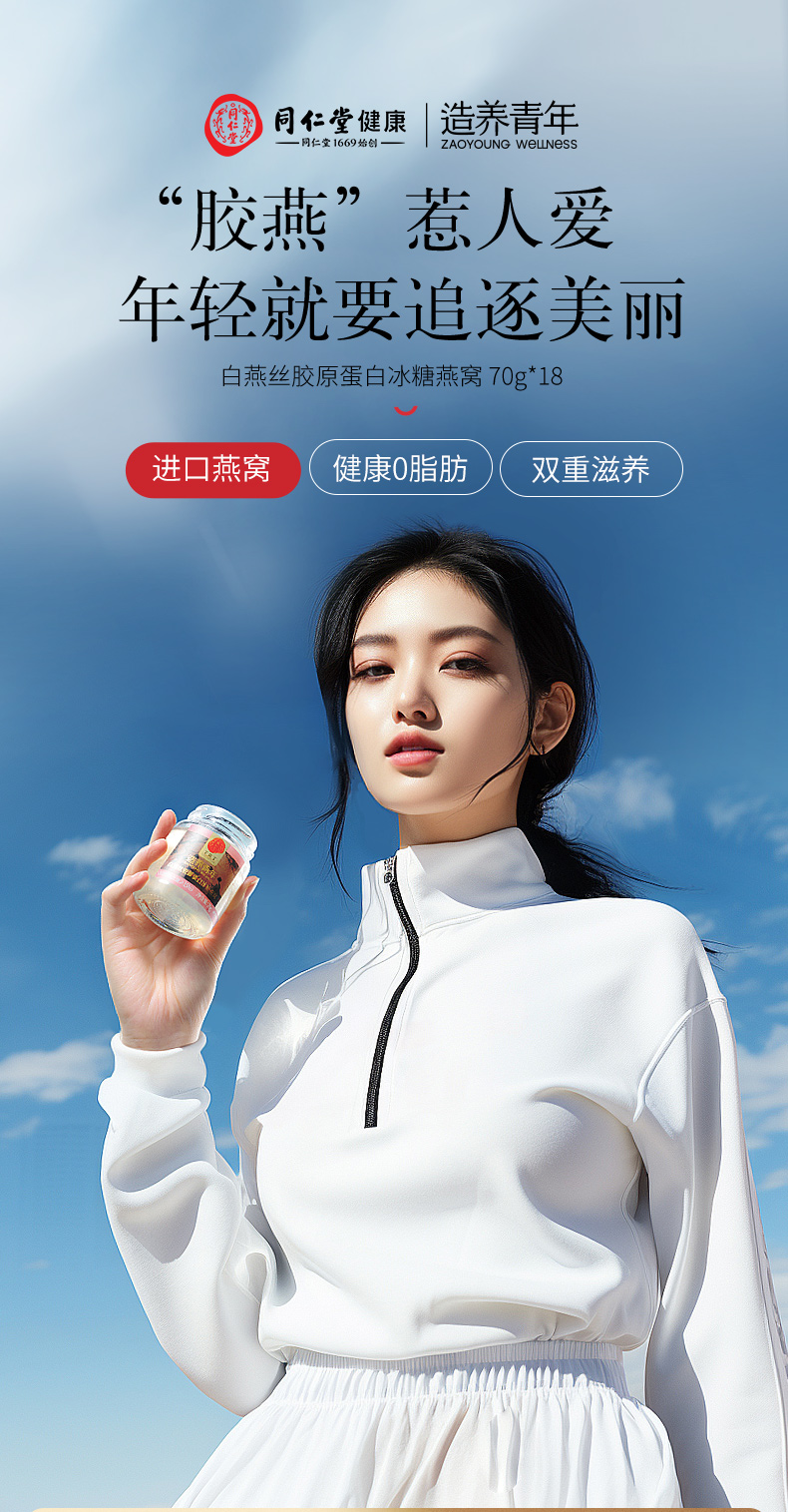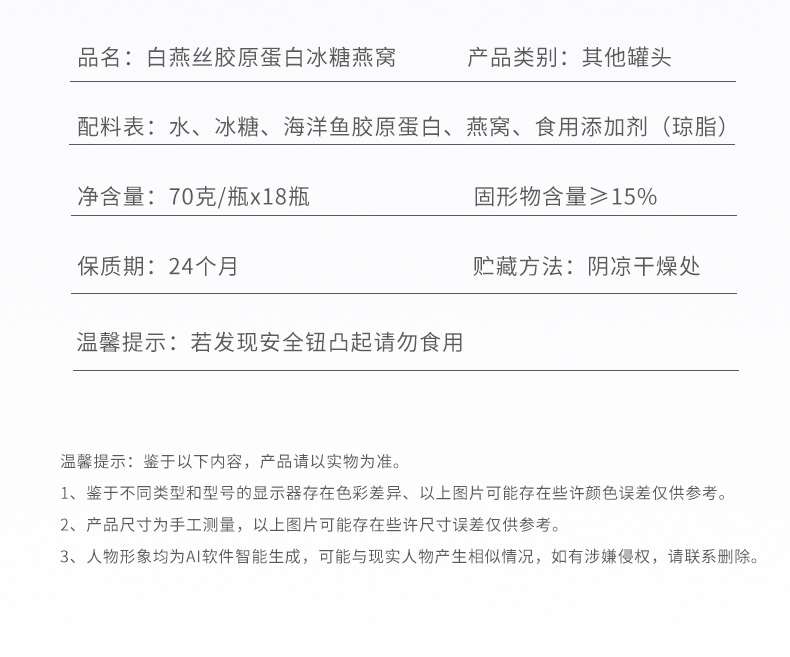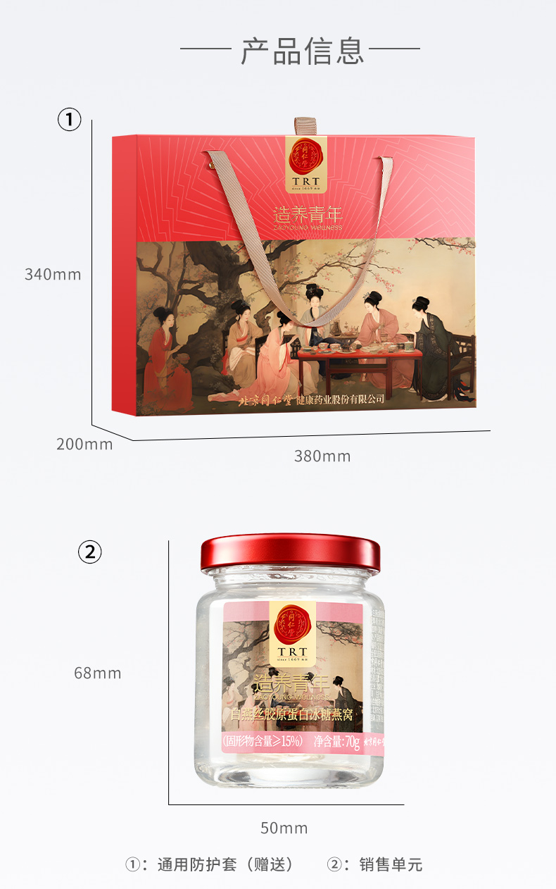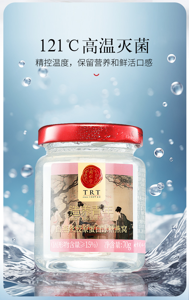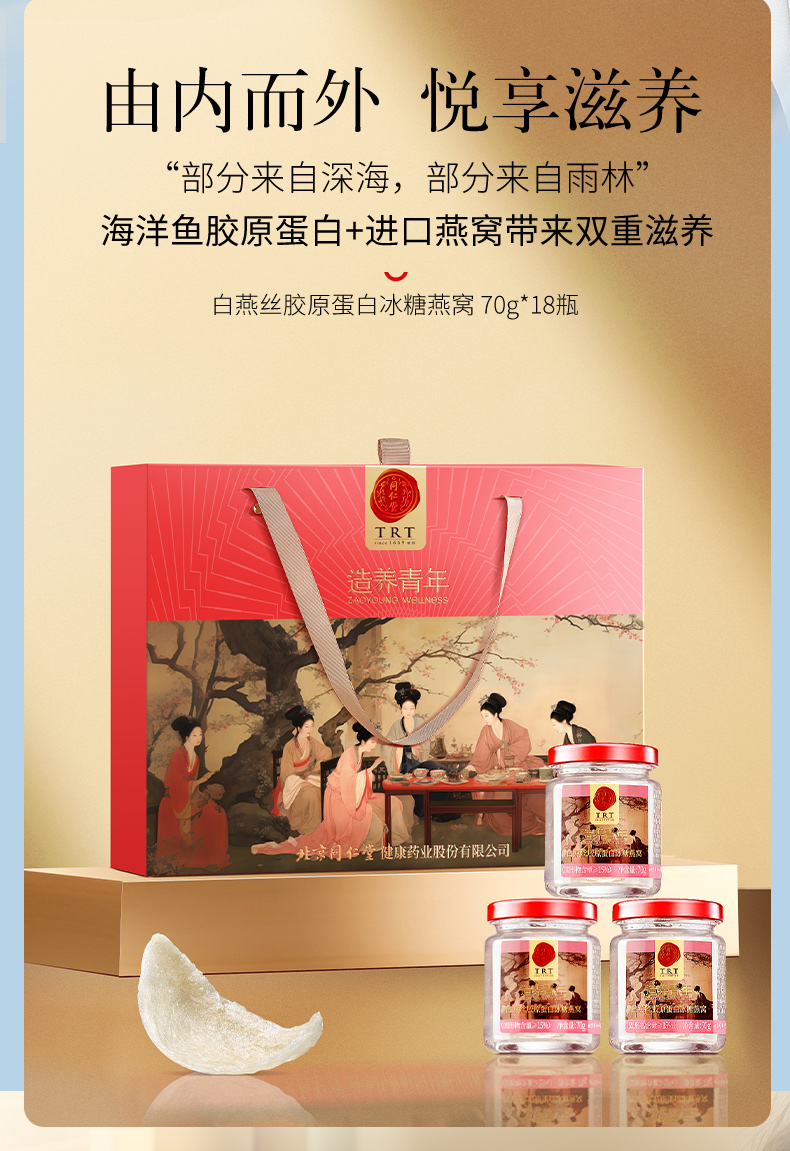 【正宗同仁堂品牌】北京同仁堂 白燕丝胶原蛋白冰糖燕窝礼盒1260克(70g*18瓶) 即食燕窝固体物含量≥15%手工精挑SY