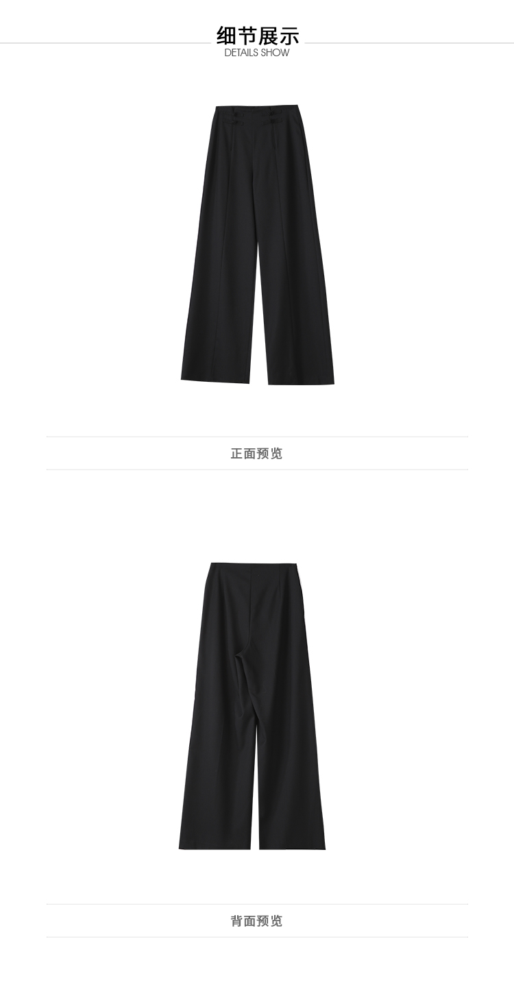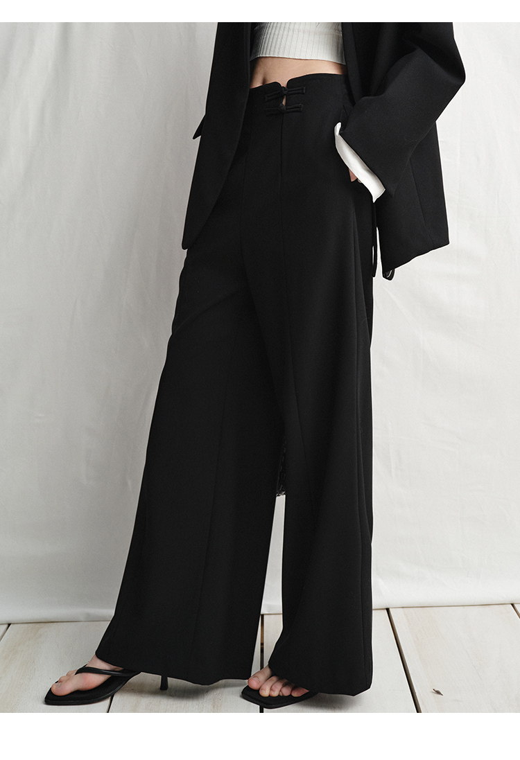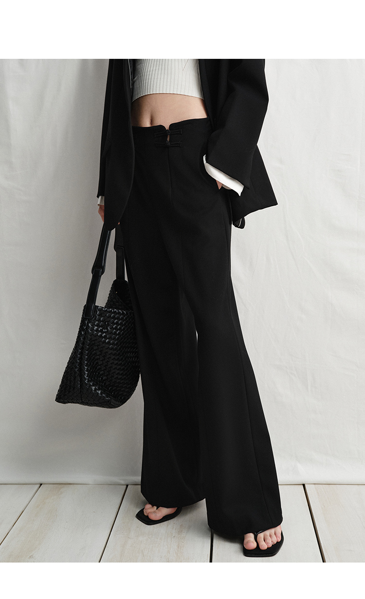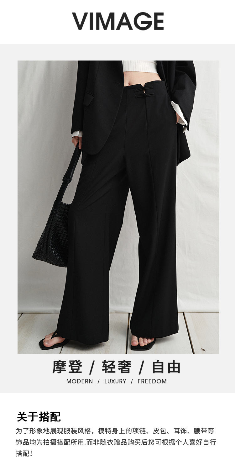 VIMAGE纬漫纪中式盘扣装饰设计感黑色微喇长裤休闲裤2025春季新款V2305901