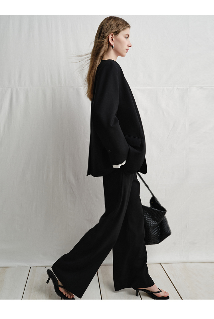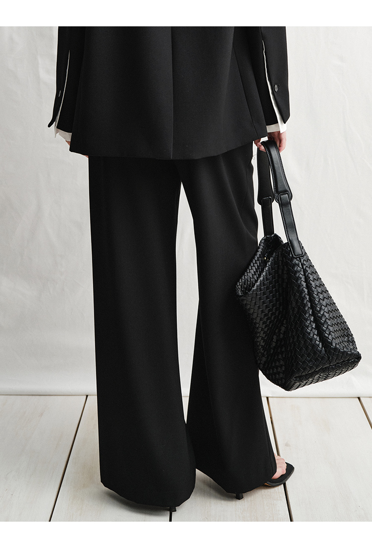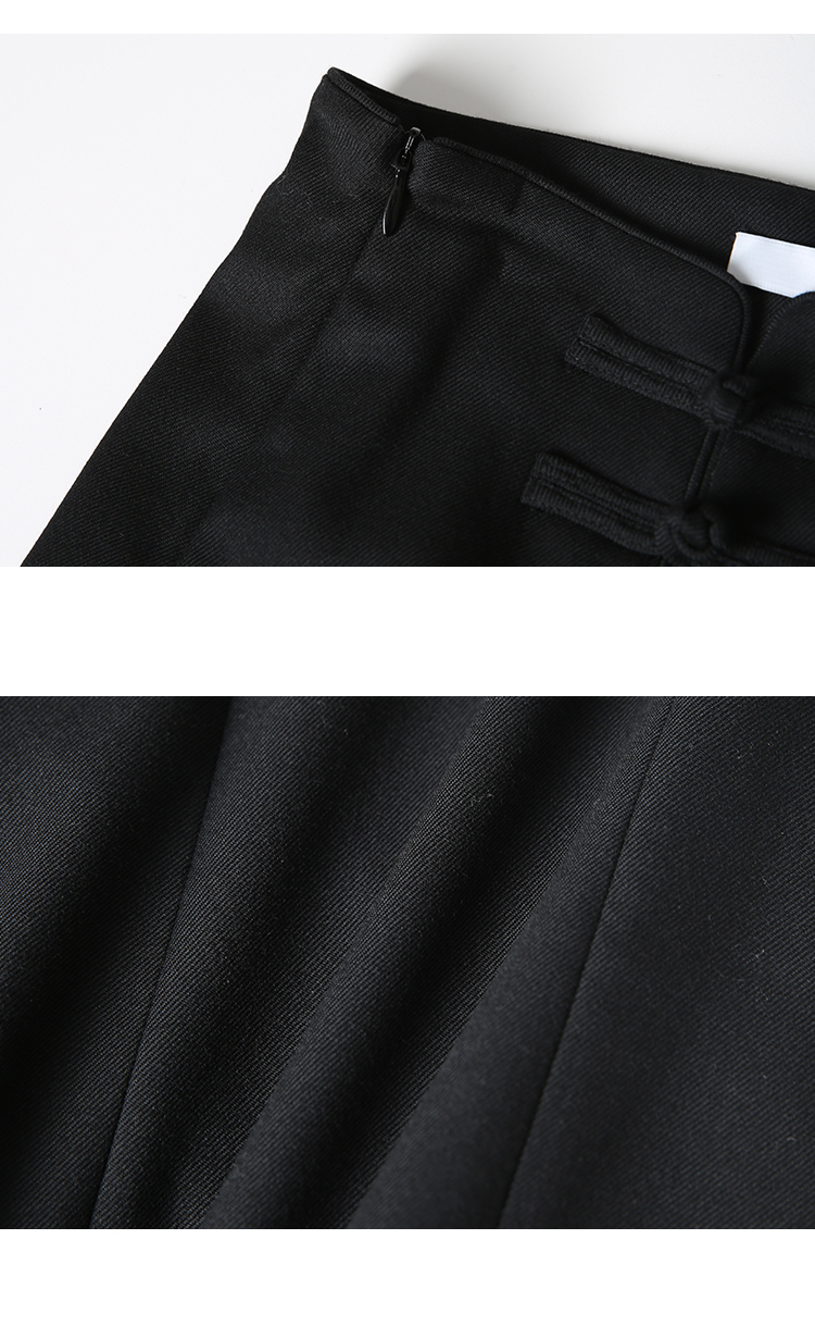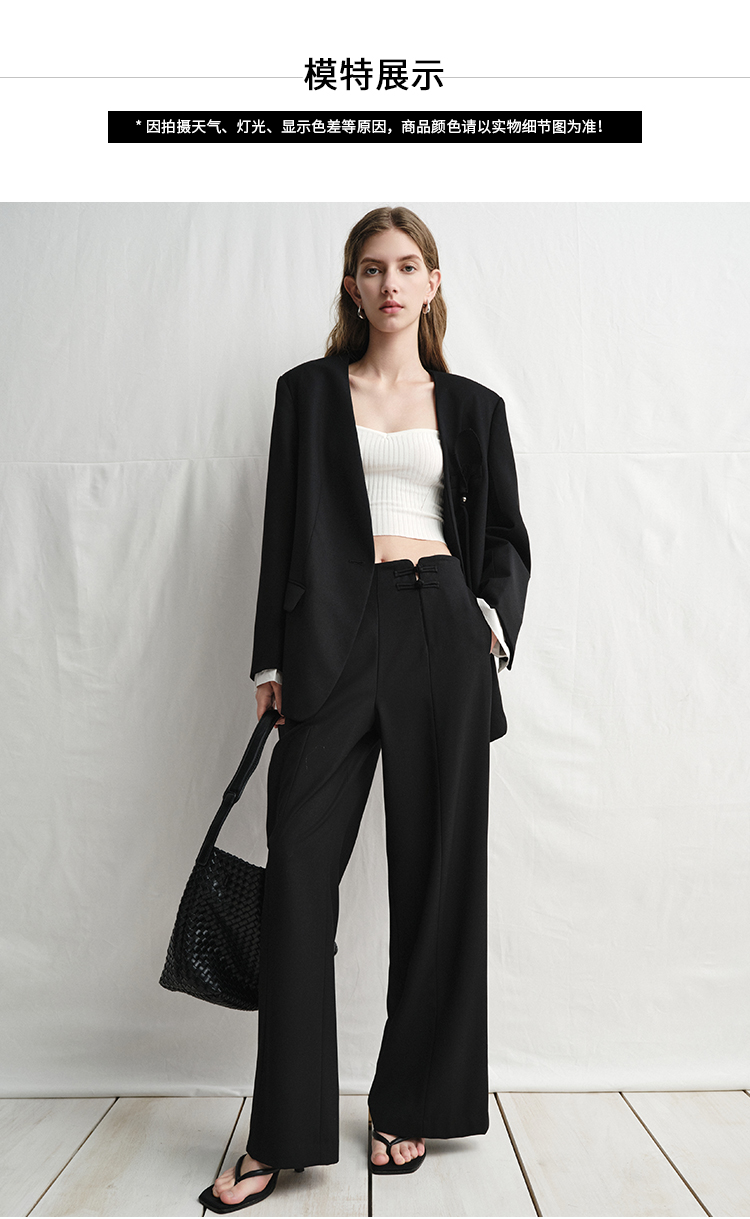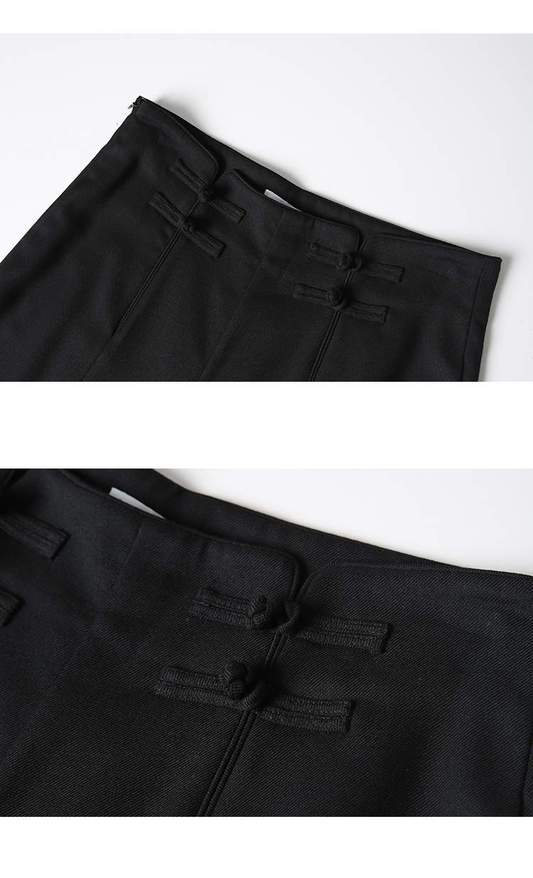VIMAGE纬漫纪中式盘扣装饰设计感黑色微喇长裤休闲裤2025春季新款V2305901