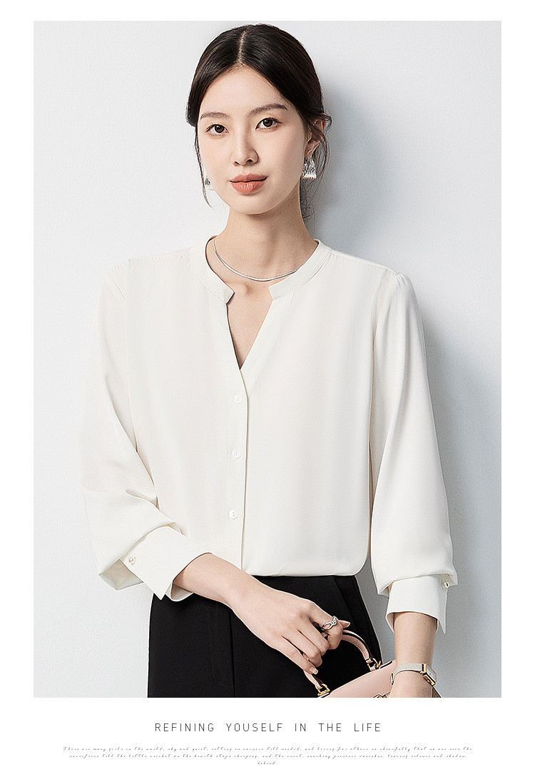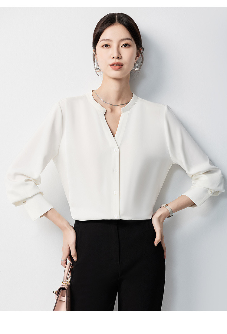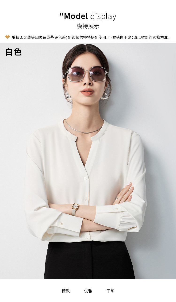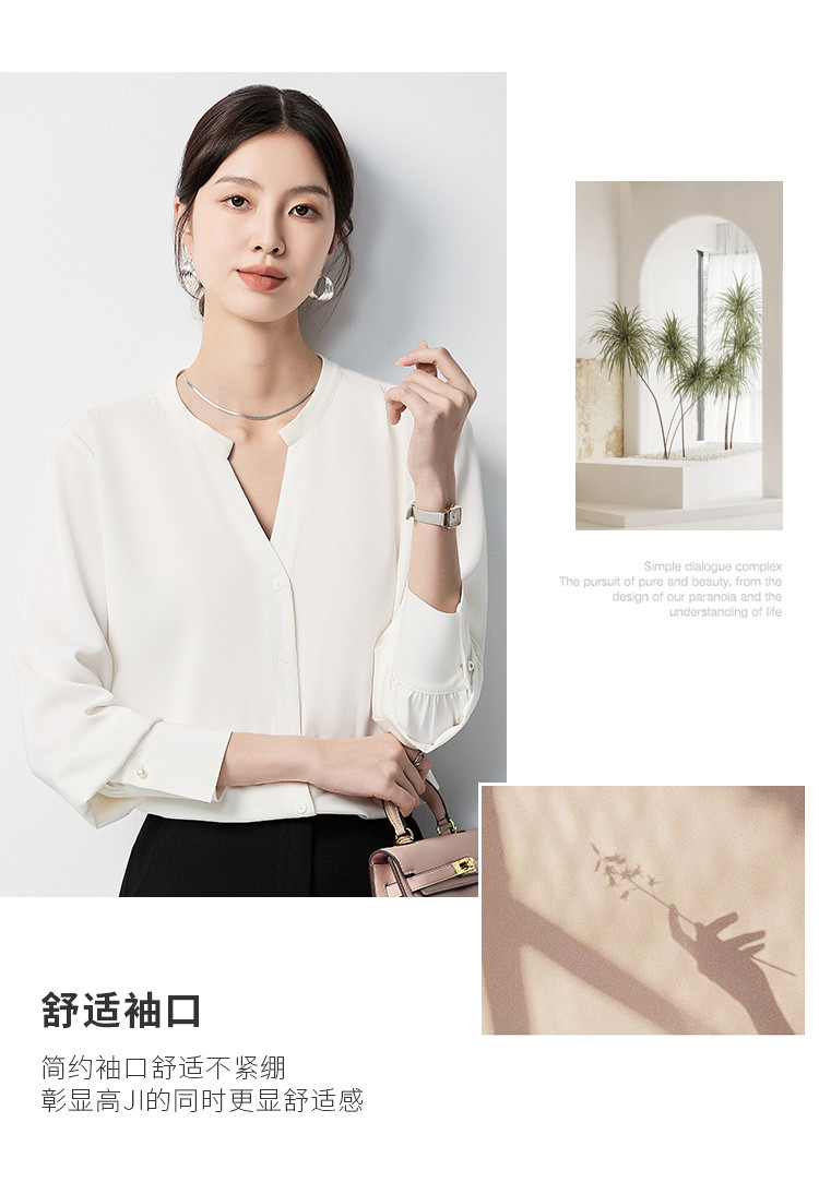 【气质V领&舒适透气】罗蒙女士长袖衬衫百搭商务简约大气优雅衬衣女