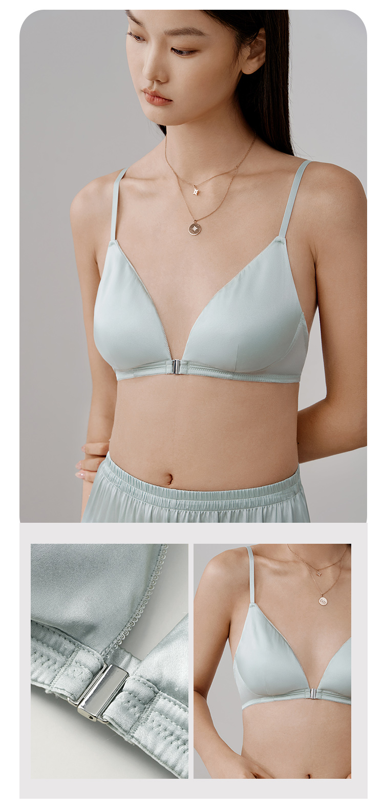 女真丝前扣无钢圈文胸