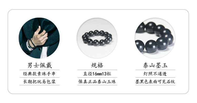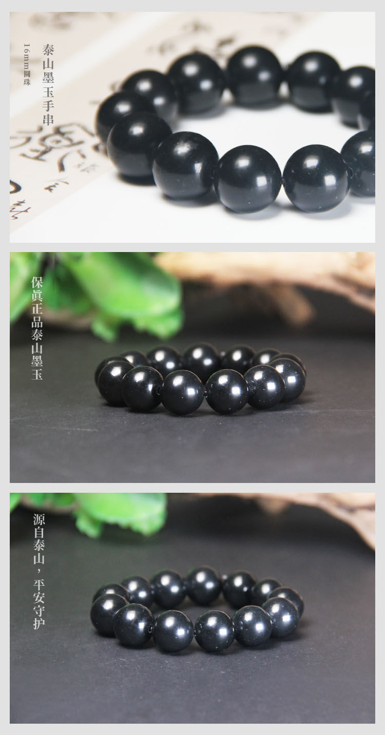 遇石记天然泰山墨玉圆珠手串16mm男款